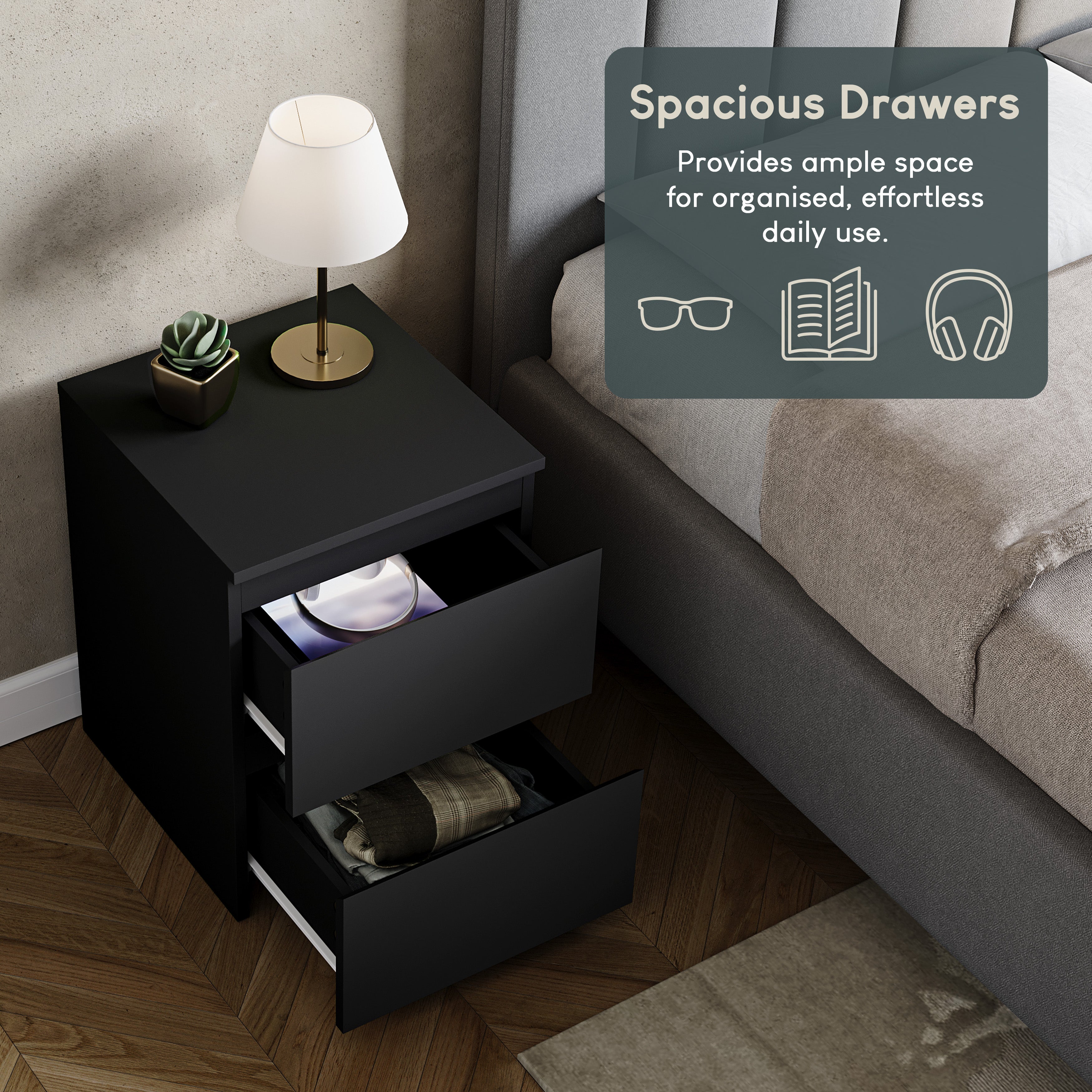 - Ample Storage: Equipped with two spacious drawers, this bedside cabinet provides ample storage space for your bedside essentials, such as books, devices, accessories, and more, keeping your belongings within easy reach.