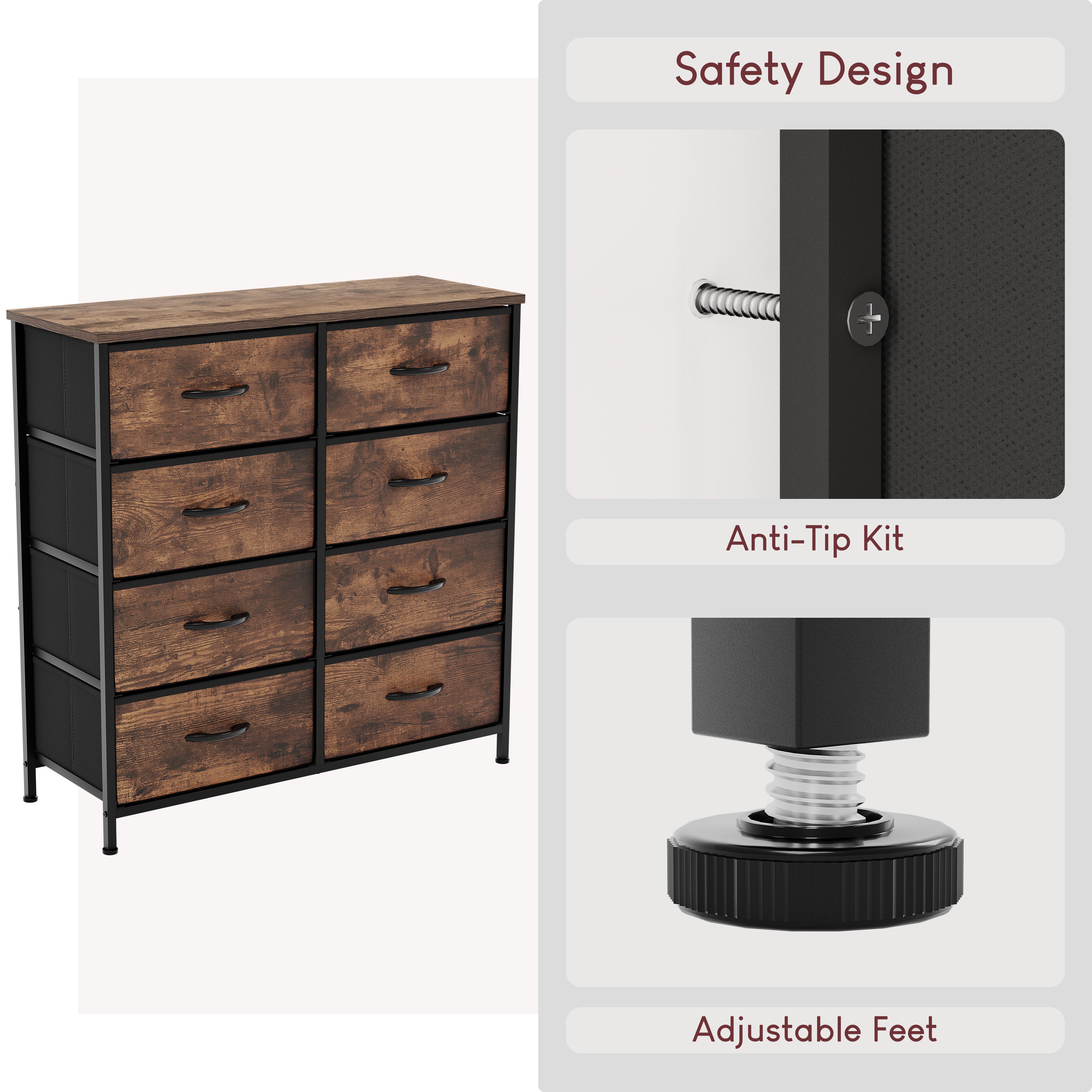 Equipped with adjustable feet, this chest of drawers stays level on uneven floors, enhancing its practicality and ensuring stability in any space. Whether in a bedroom, living room, closet, or entryway, its versatile design fits seamlessly into a variety of decor styles and room layouts. Lightweight and portable, this fabric chest of drawers is easy to move and reposition, making it an adaptable storage solution for changing needs.