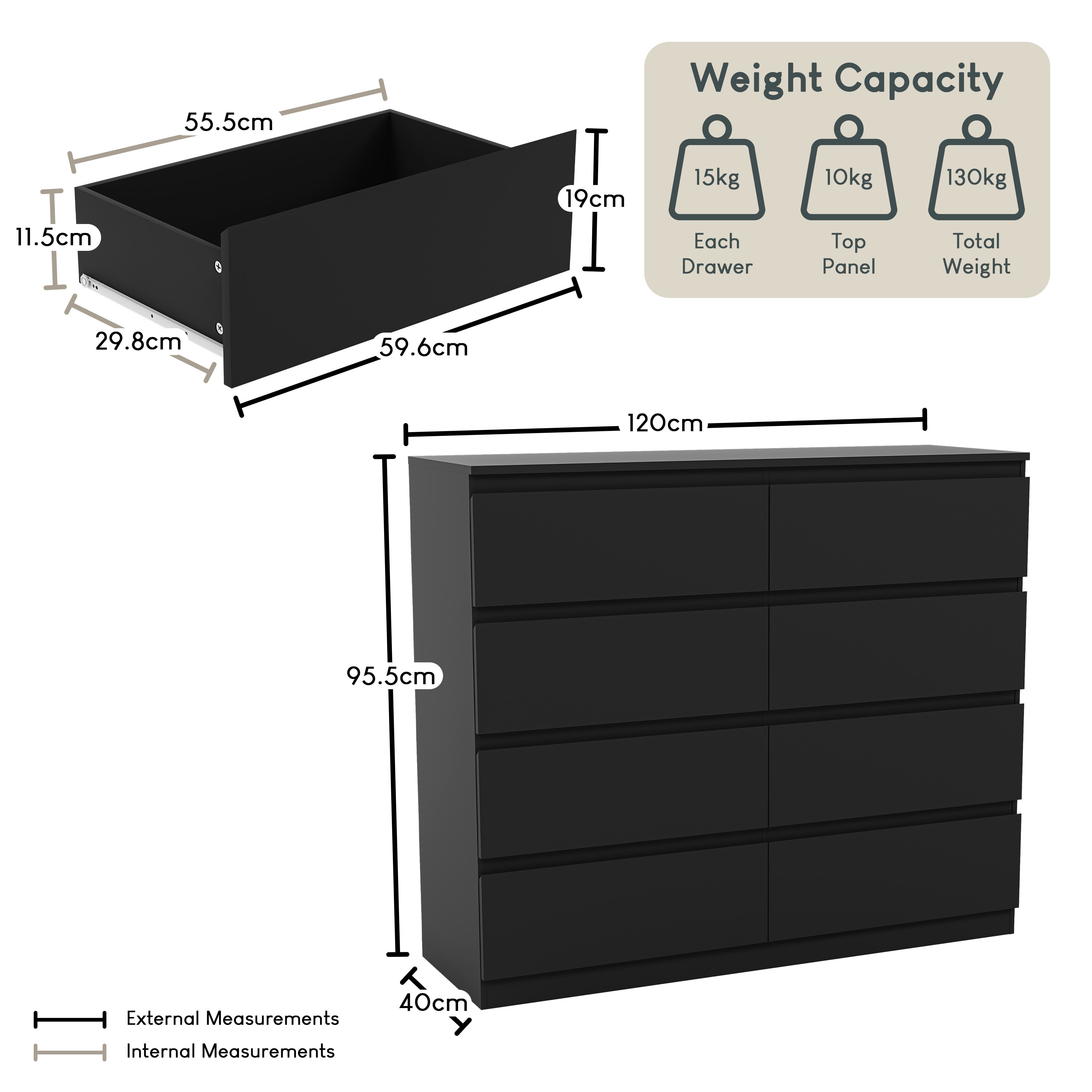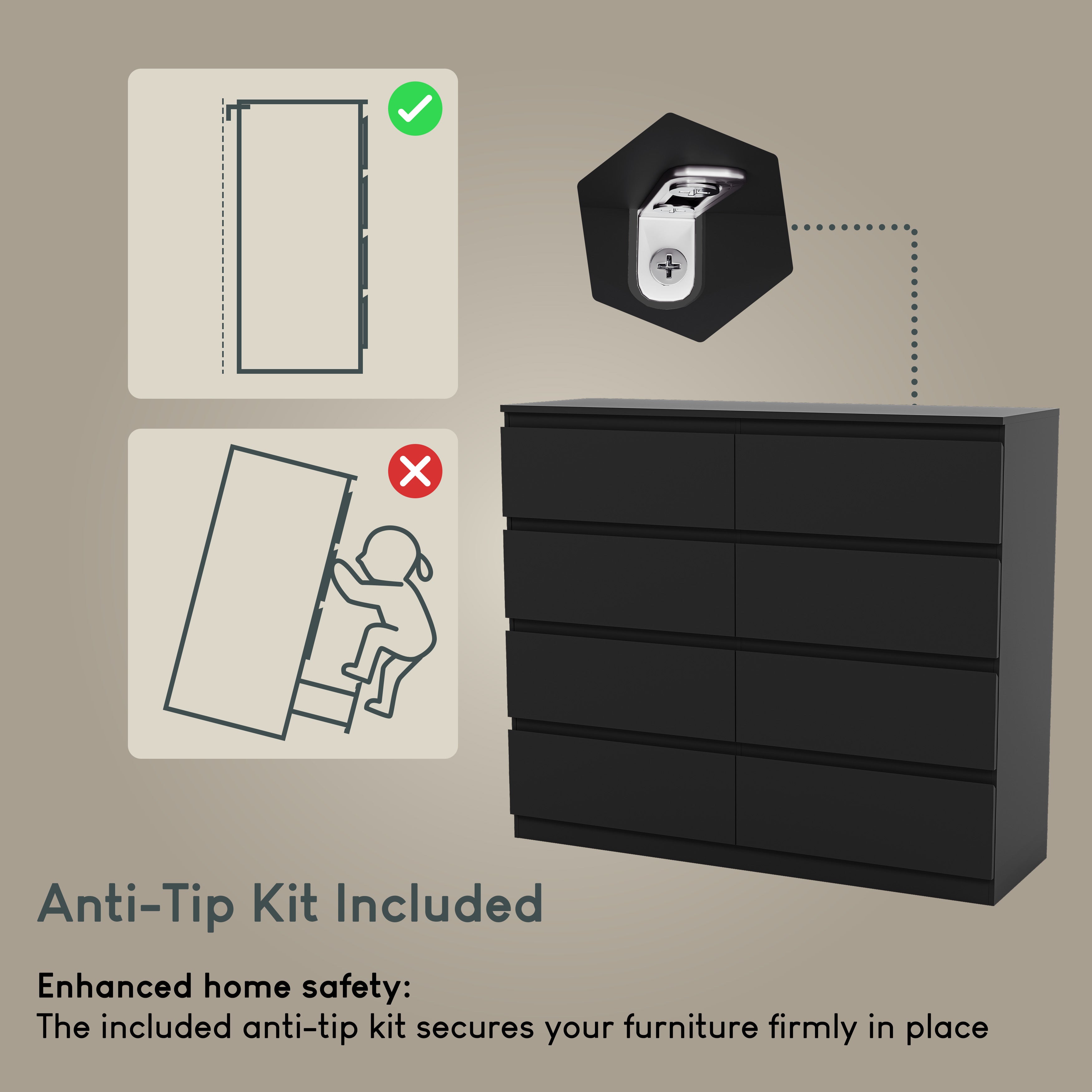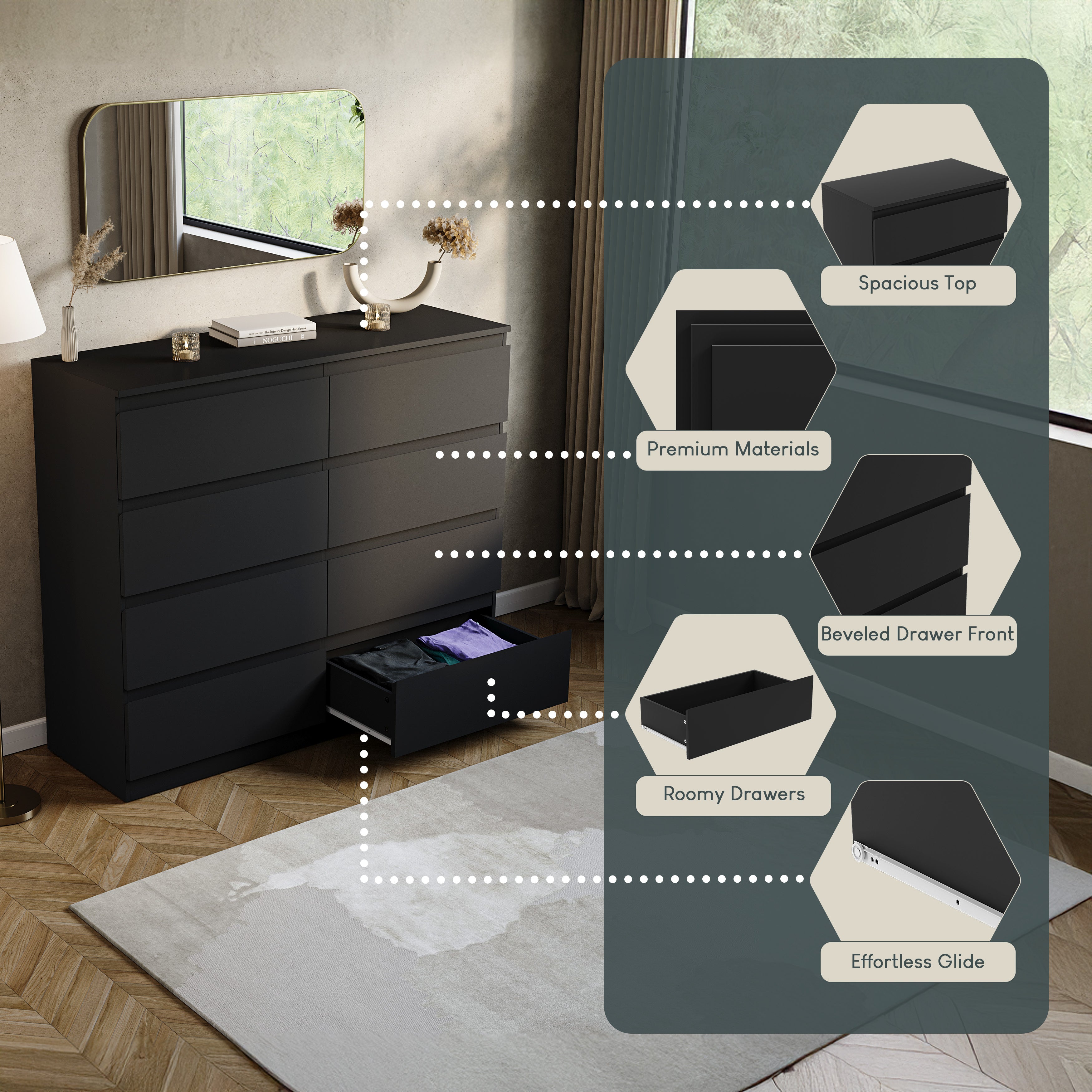 Spacious Storage: With eight spacious drawers, this chest of drawers provides ample storage space for all your essentials, keeping your bedroom or living space tidy and organized.