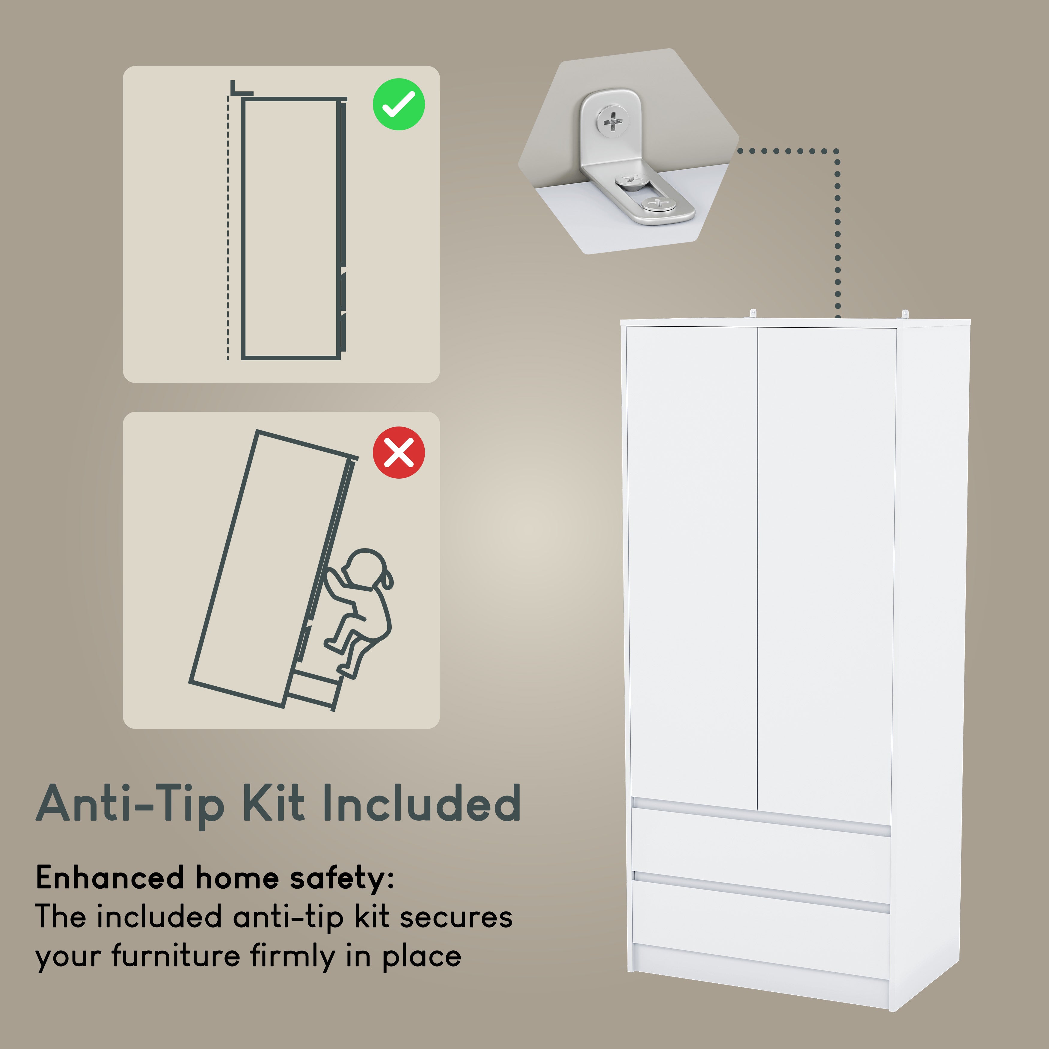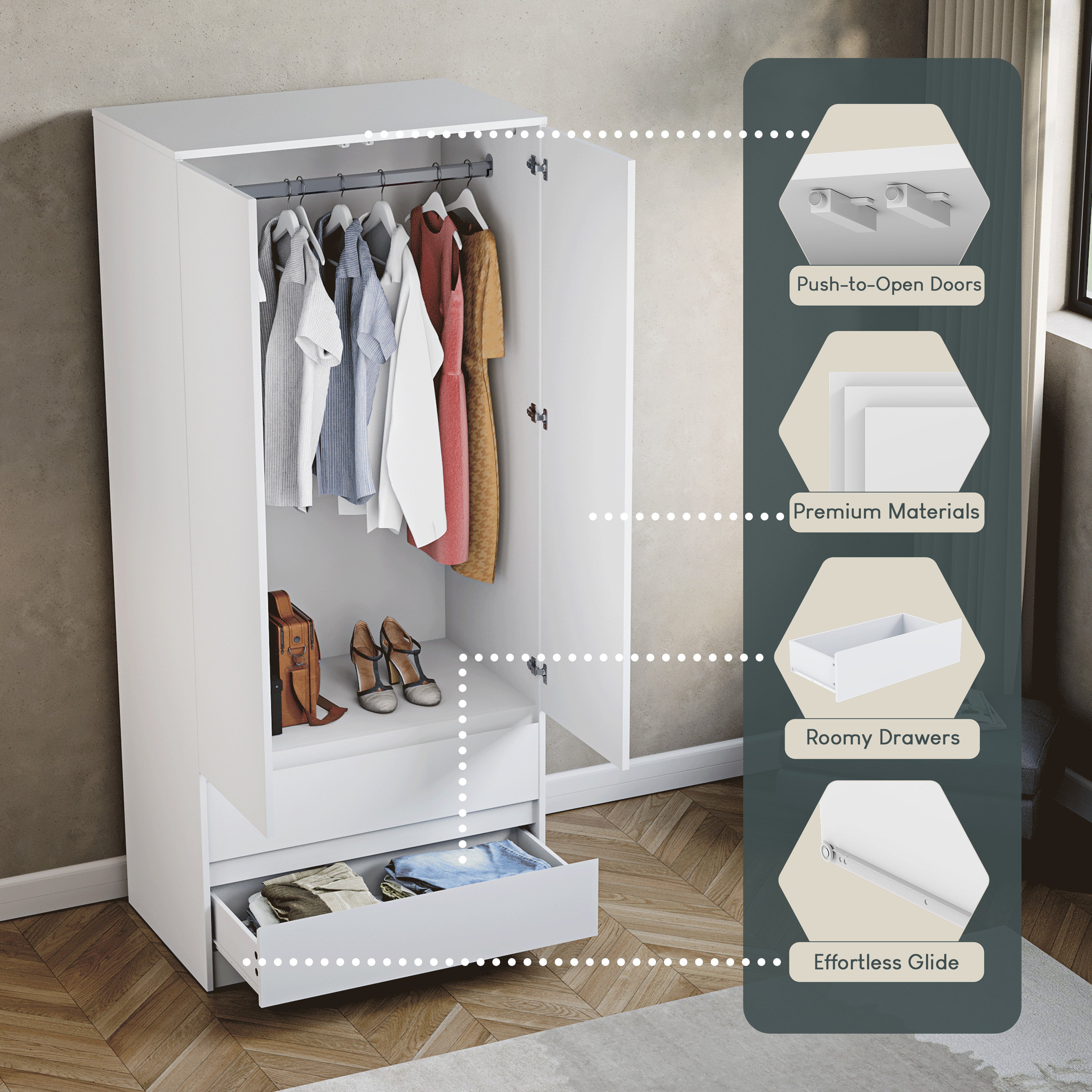 - Ample Storage: Equipped with two spacious drawers and hanging rail, this wardrobe provides ample storage space.