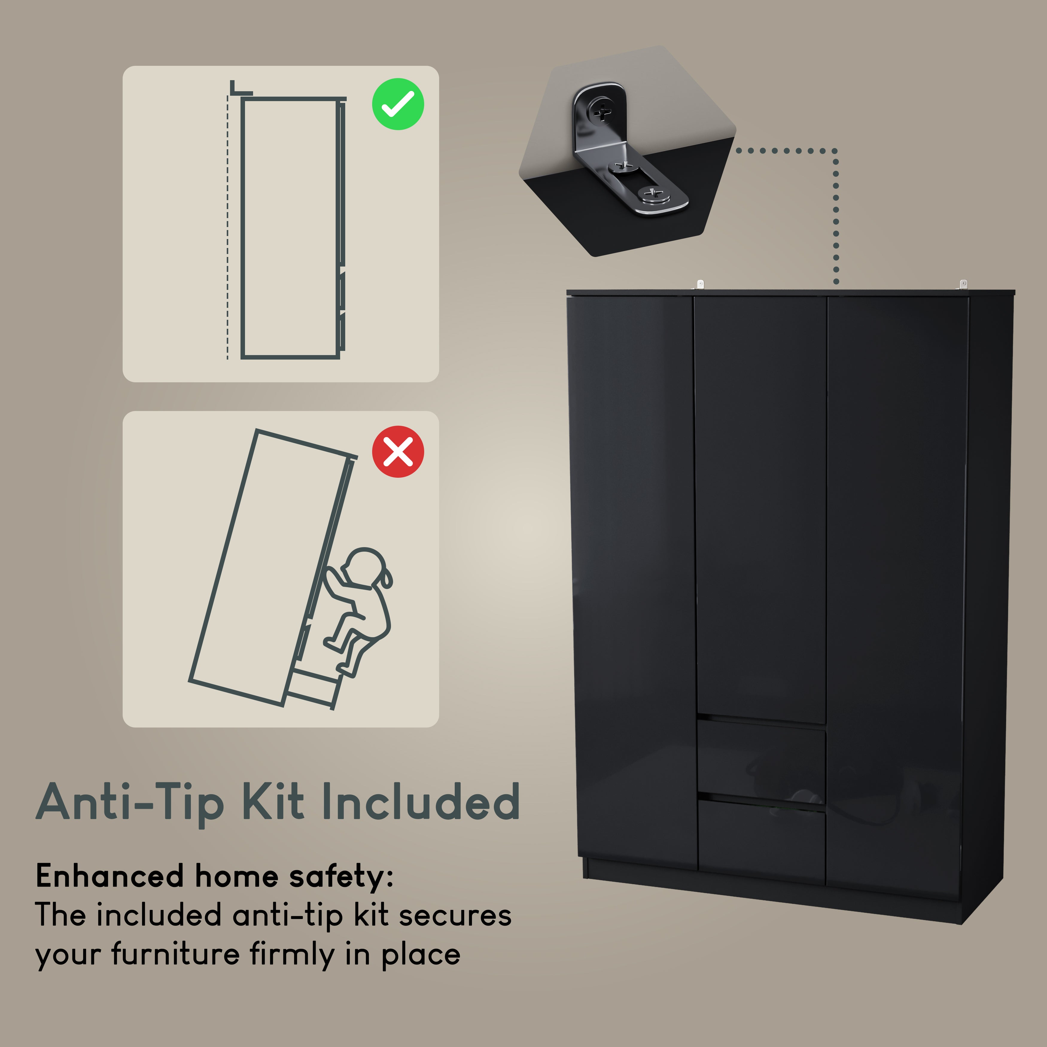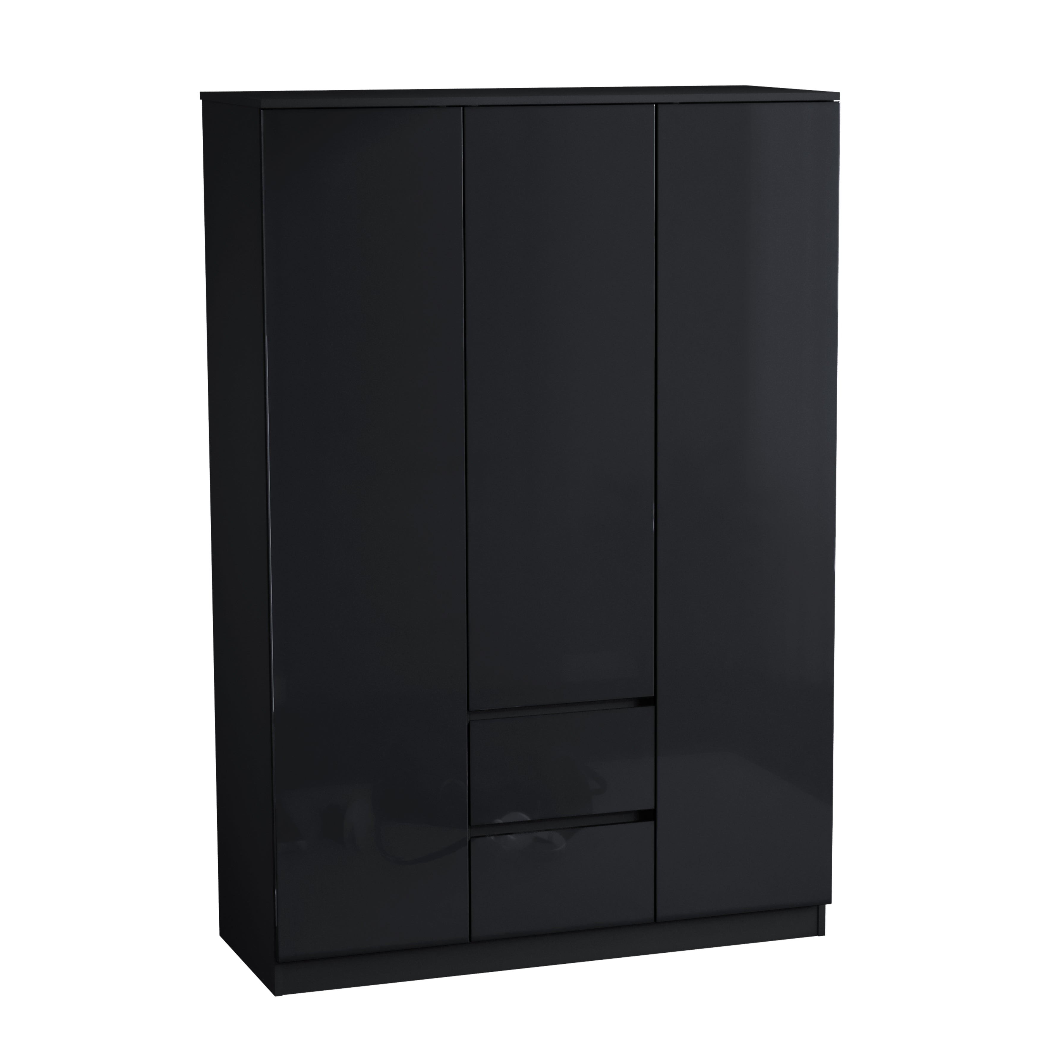 Introducing our sleek and modern Glinton 3-Door Wardrobe with 2 Drawers—a perfect fusion of functionality and minimalist design. Crafted with meticulous attention to detail, this wardrobe features high gloss doors and a matte carcass, creating a striking contrast that elevates the look of any bedroom.