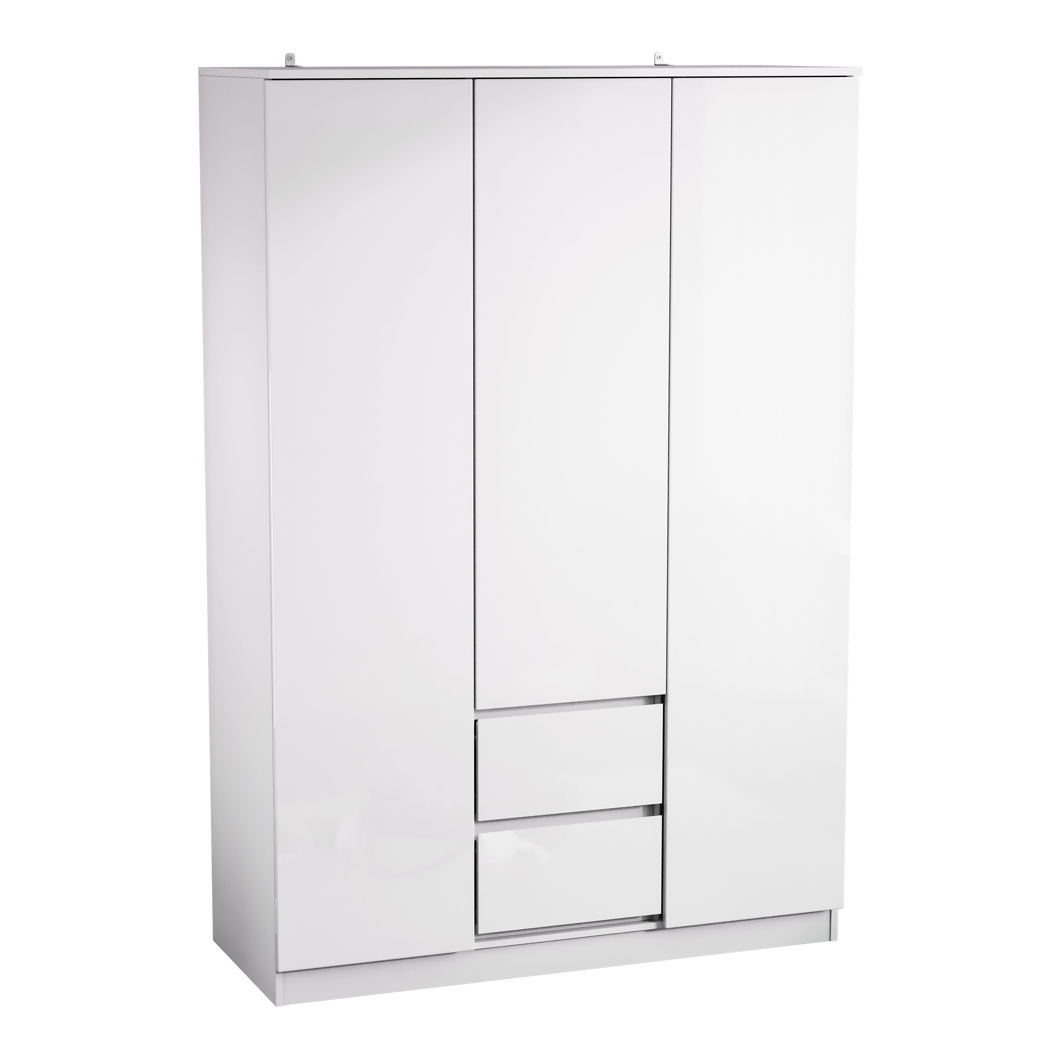Introducing our sleek and modern Glinton 3-Door Wardrobe with 2 Drawers—a perfect fusion of functionality and minimalist design. Crafted with meticulous attention to detail, this wardrobe features high gloss doors and a matte carcass, creating a striking contrast that elevates the look of any bedroom.
