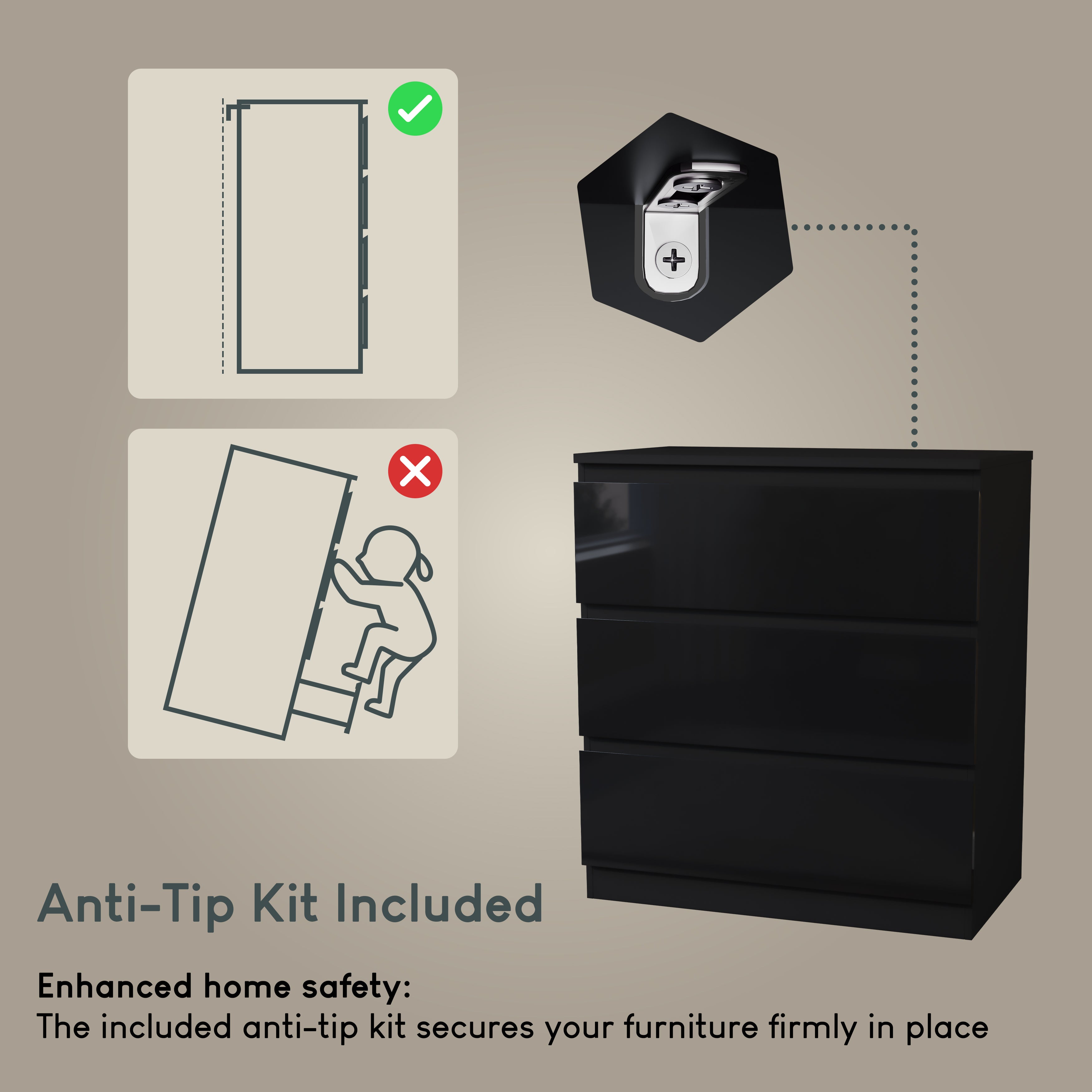 Glinton 3-Drawer Chest, Black (FSC 100%)