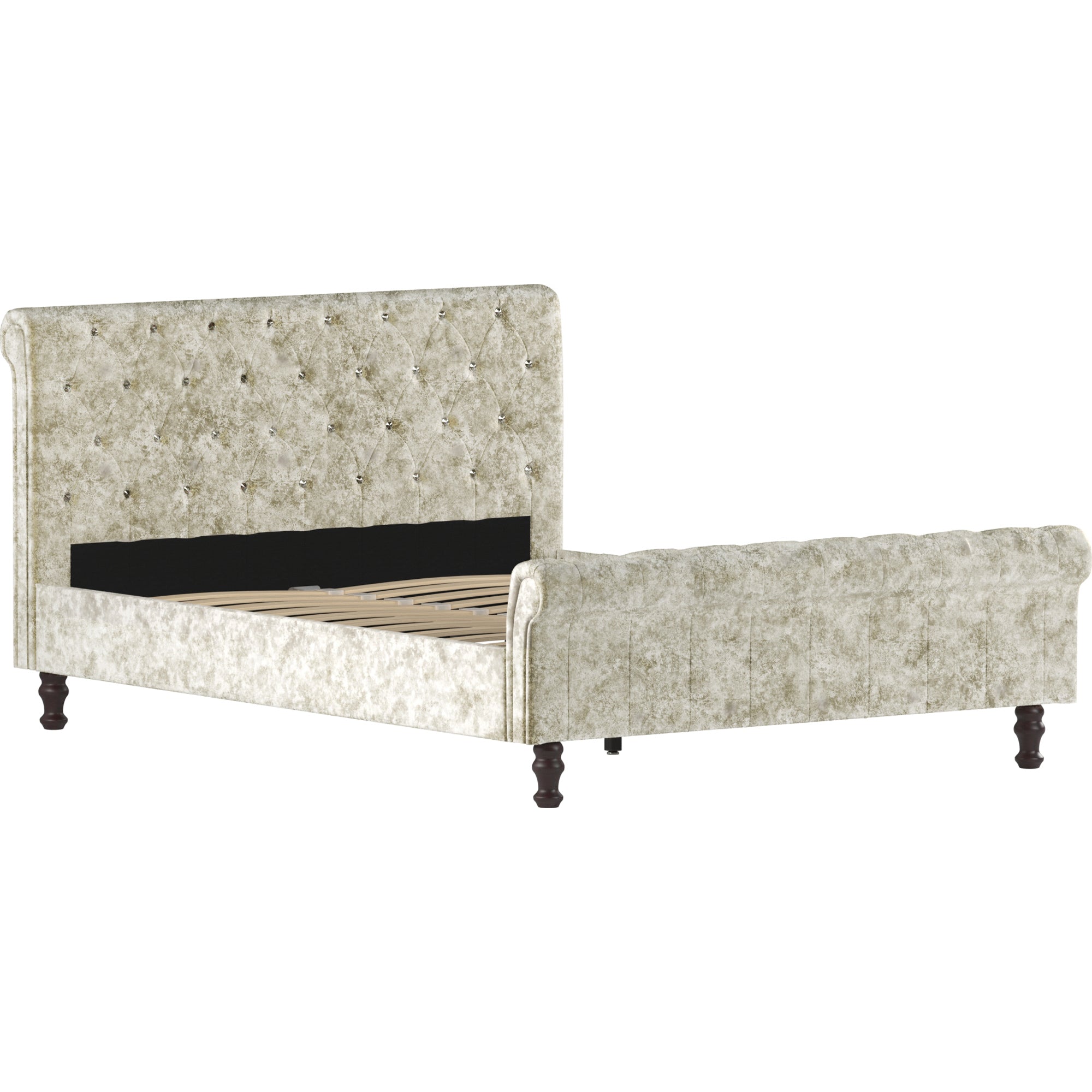 Home Discount offers this stunning new product with a modern, stylish design, the Violetta King Size Bed, Crushed Velvet Champagne. This bed is expertly upholstered in quality velvet fabric, with the bed frame and slatted base made from sturdy wood.