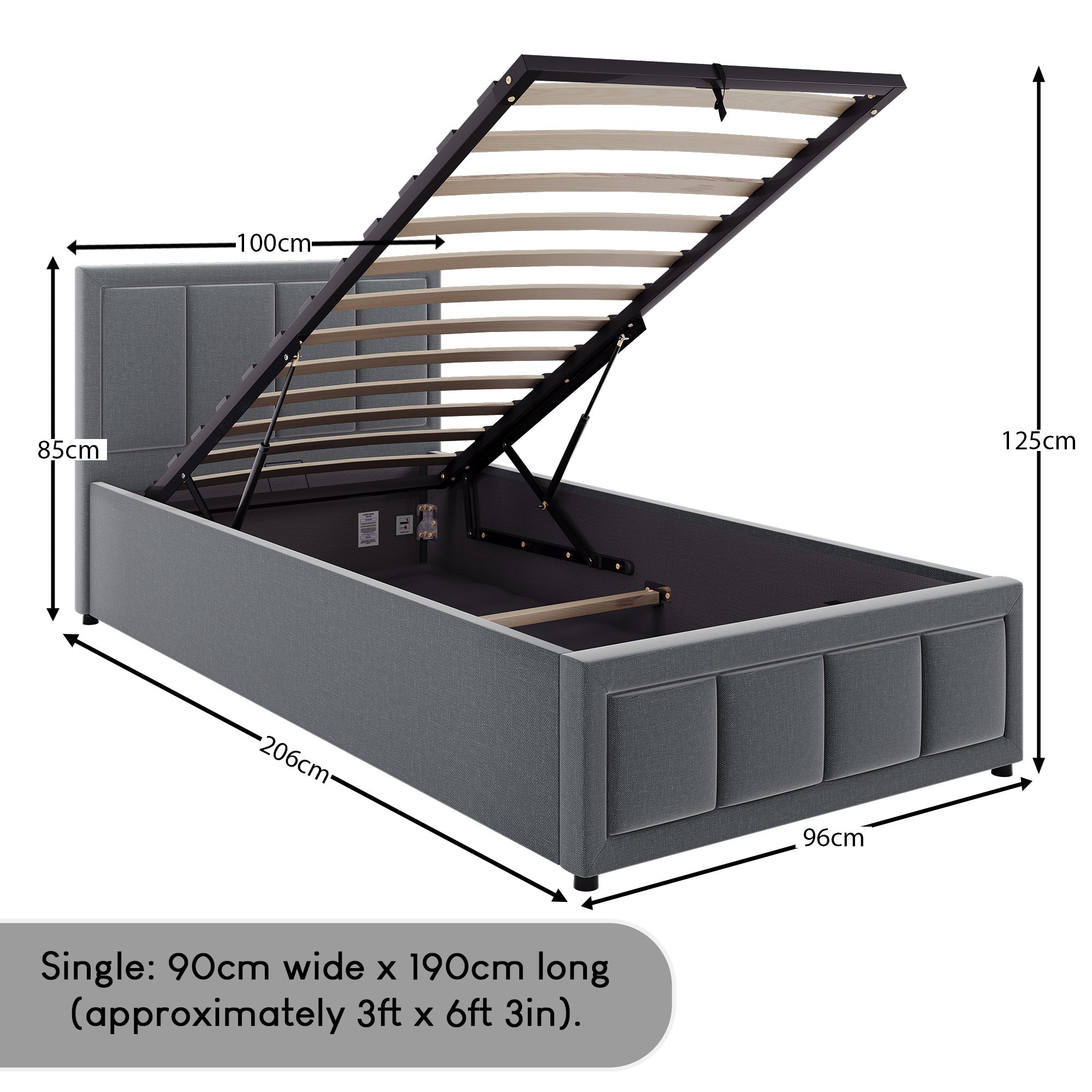 The lift-up ottoman storage base reveals a generous hidden compartment beneath the mattress, ideal for storing bedding, blankets, clothing, or seasonal items. The smooth lift mechanism allows effortless access to the storage area, helping you keep your room organised and clutter-free. This makes it a practical space-saving storage bed for smaller bedrooms or apartments.
