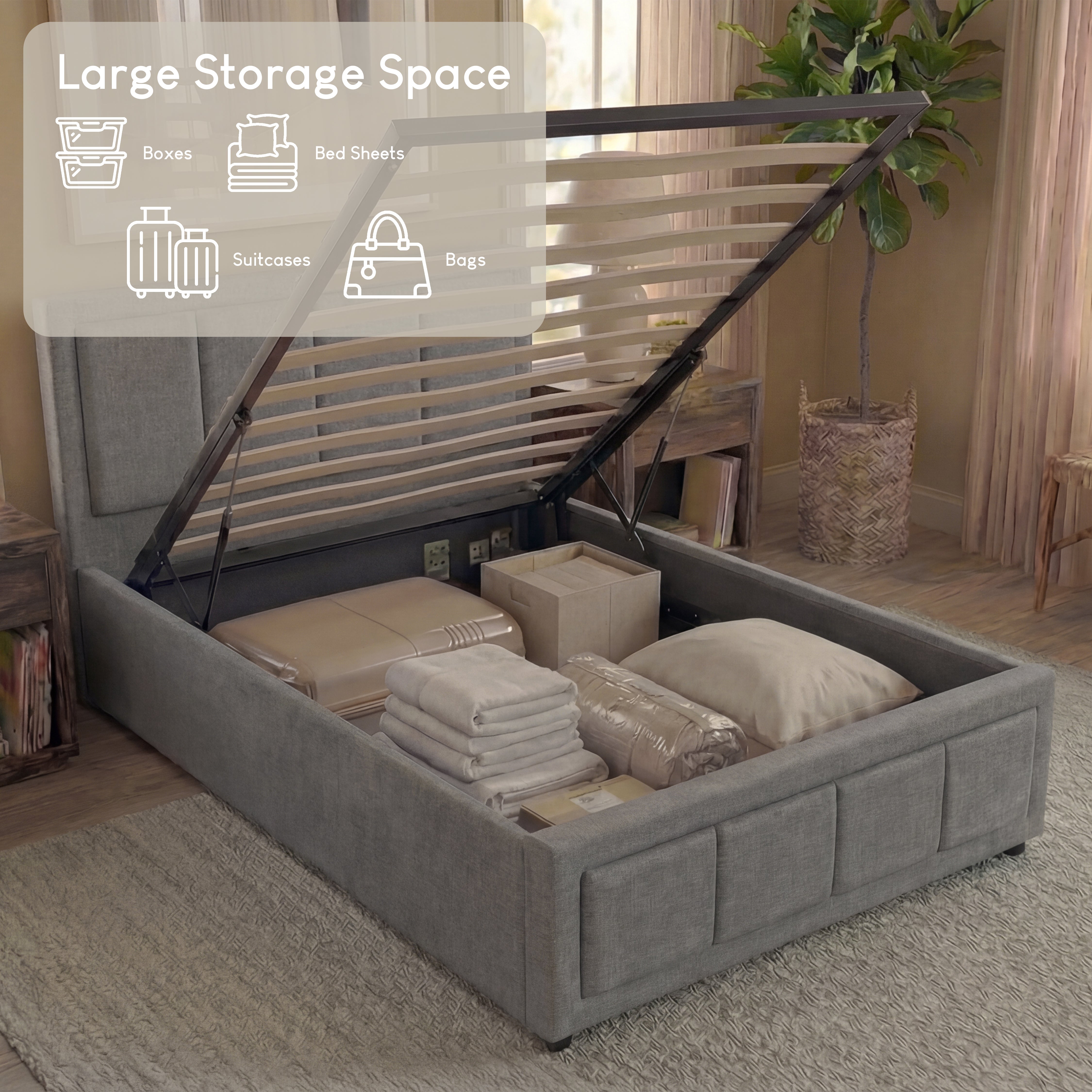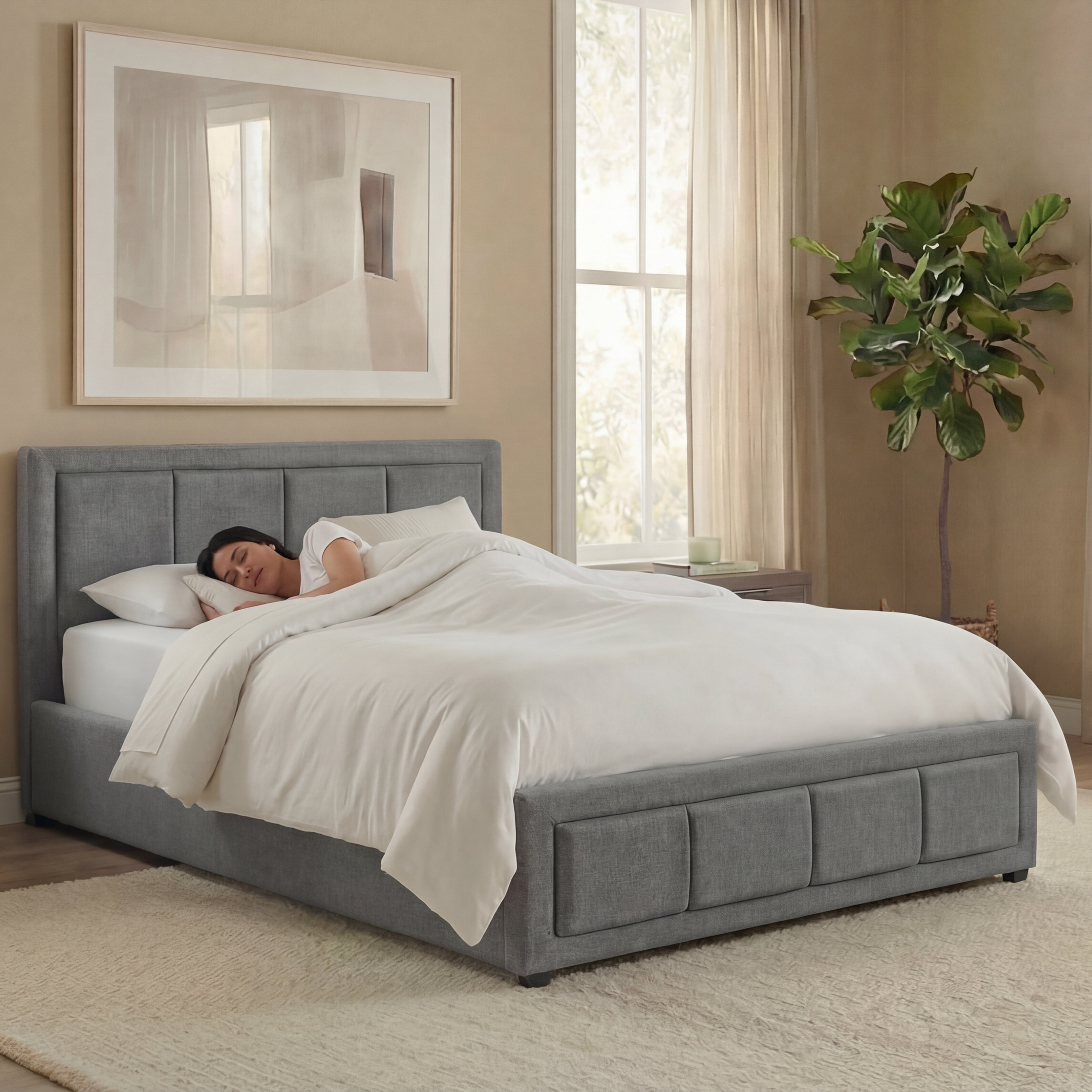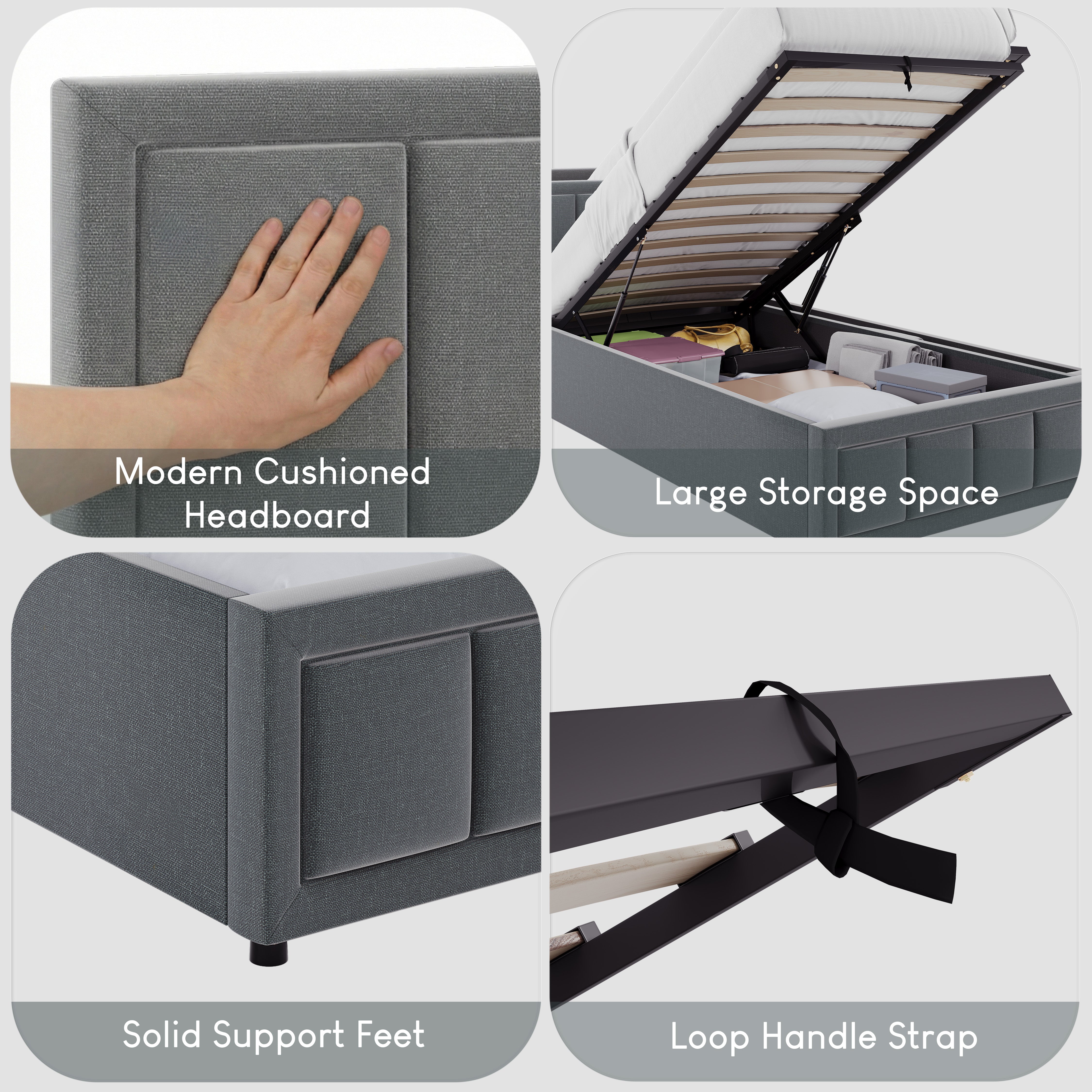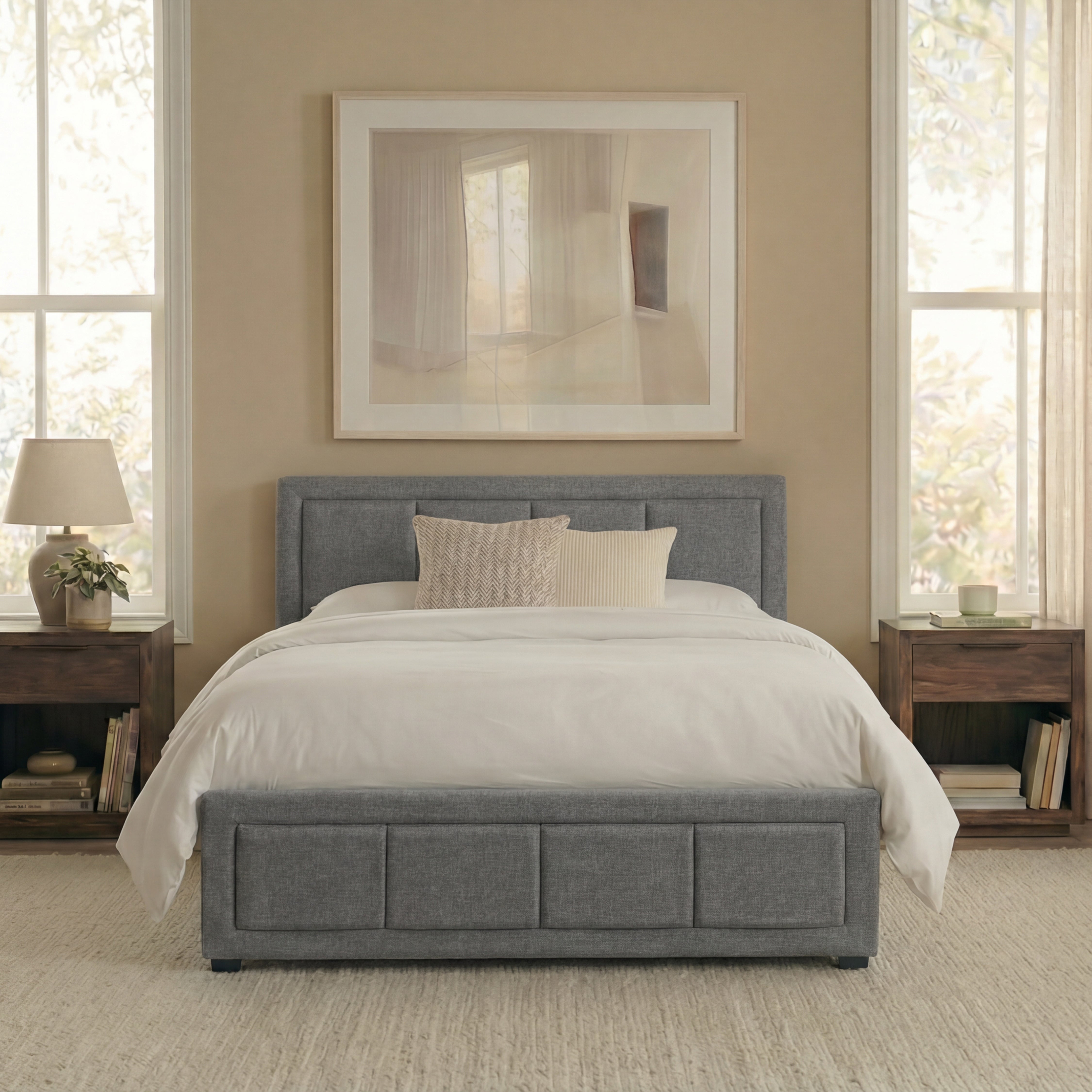 • Modern Linen Upholstery: Soft, durable fabric adds a contemporary look to any bedroom