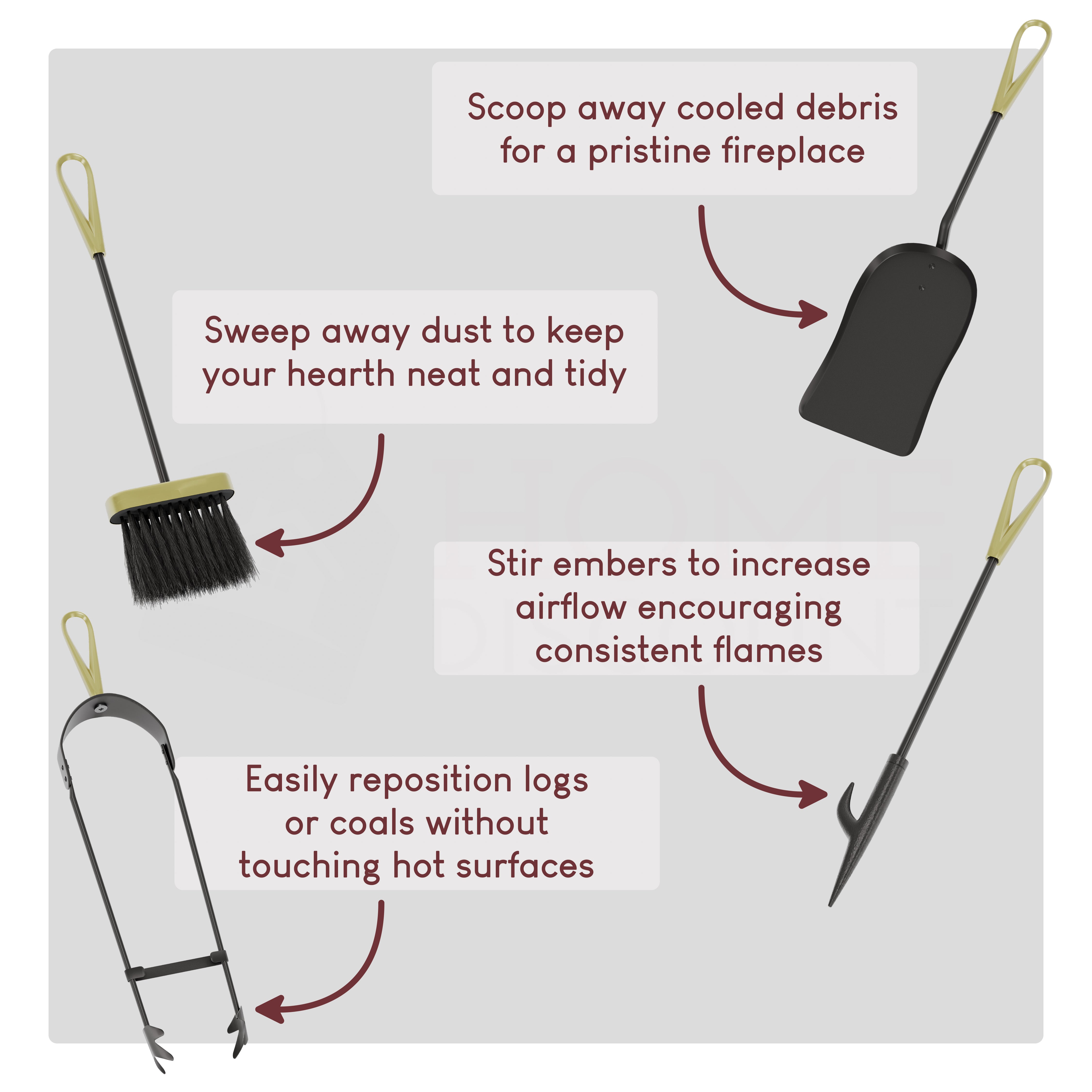 Crafted from high-quality materials, each tool in this set is designed for durability and long-lasting use. The sturdy construction ensures reliability, while the sleek and cohesive design adds a touch of sophistication to your fireplace decor.