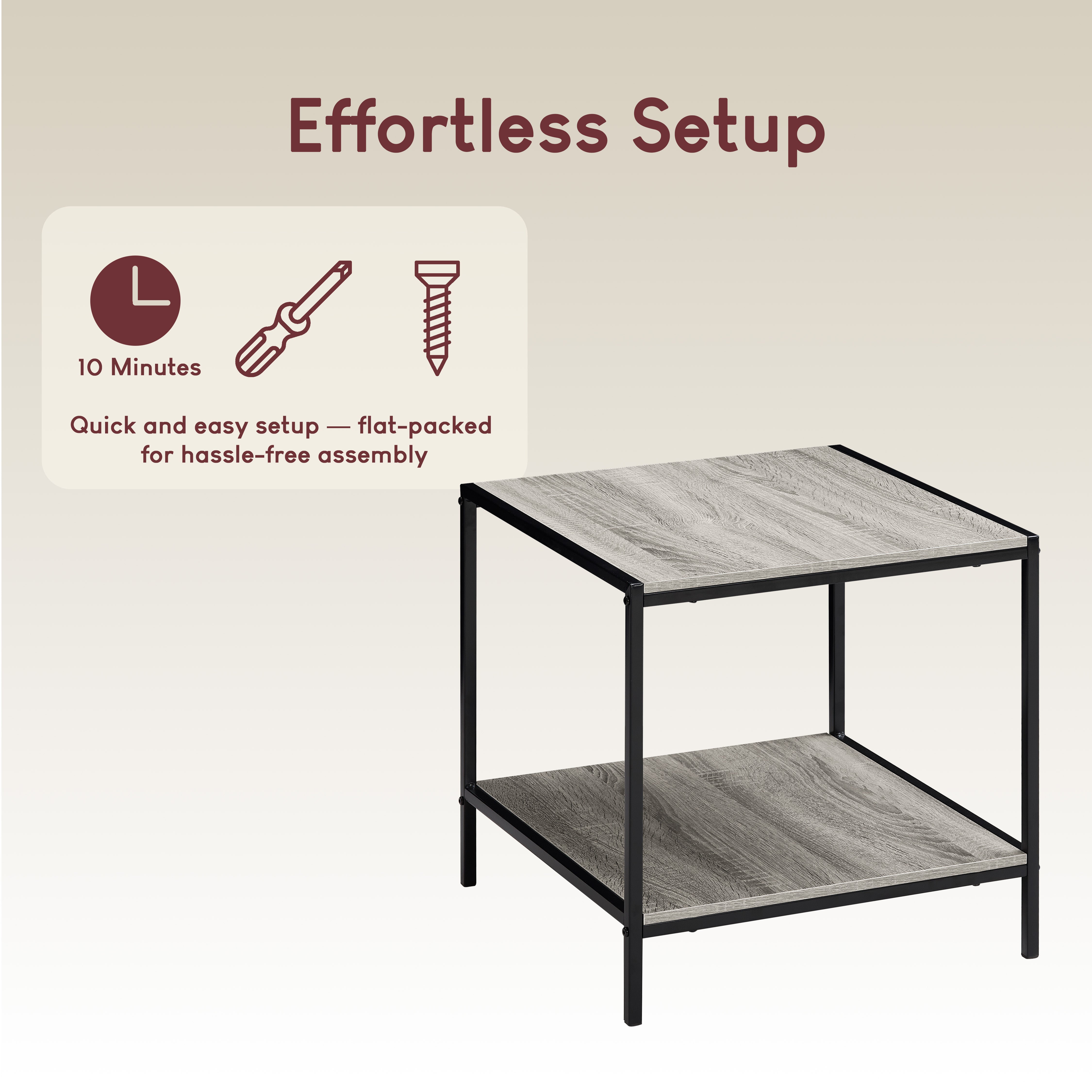 - Space-Saving Storage: The industrial end table combines form and function, offering two shelves for storage without compromising on its compact design, making it perfect for smaller spaces.