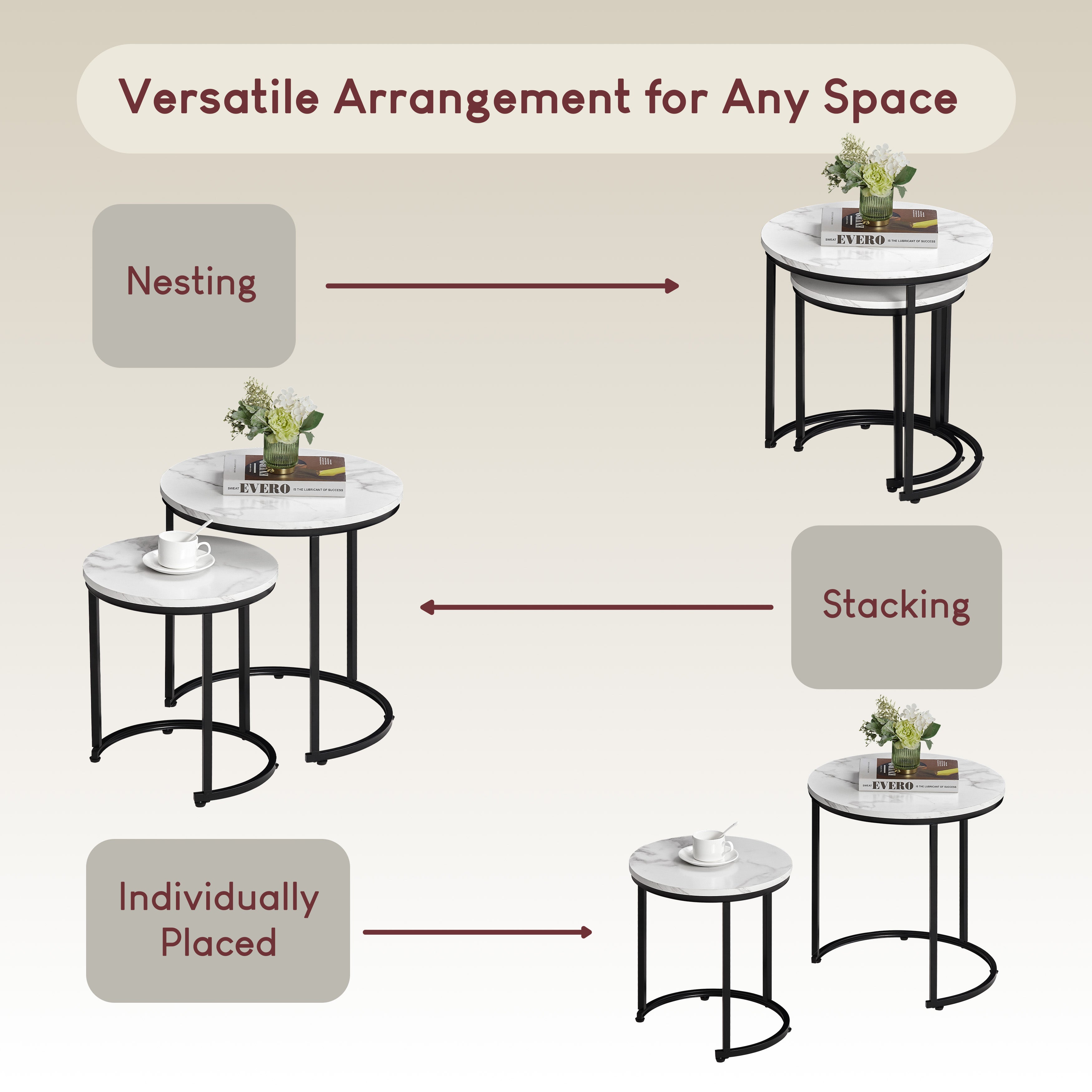 - Versatile 2-Piece Set: The nesting design allows for a space-saving solution, with three individual tables that can be arranged in various configurations, offering flexibility to adapt to your changing needs.