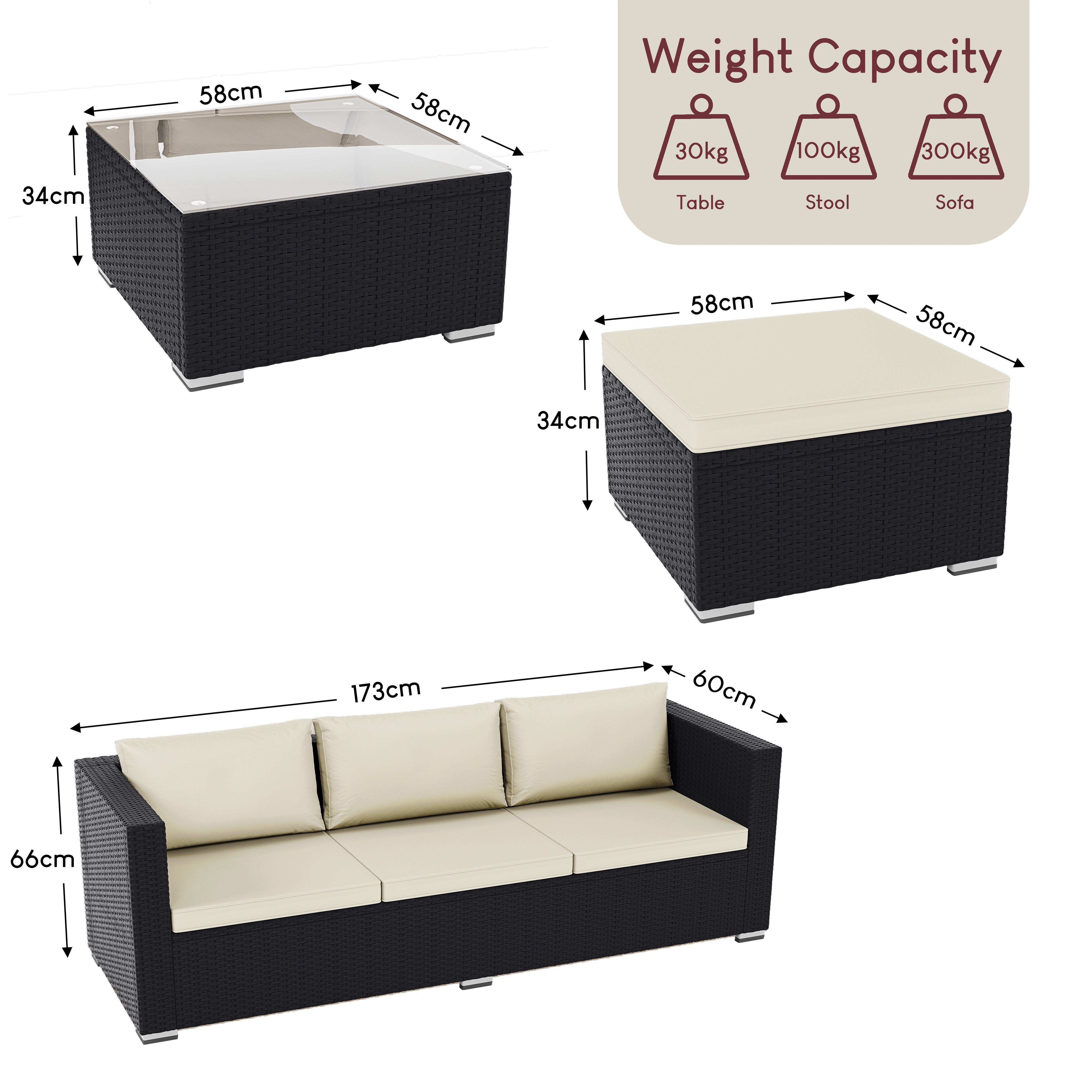• Product Material: Polyrattan, Galvanised Steel & Waterproof Polyester Fabric
