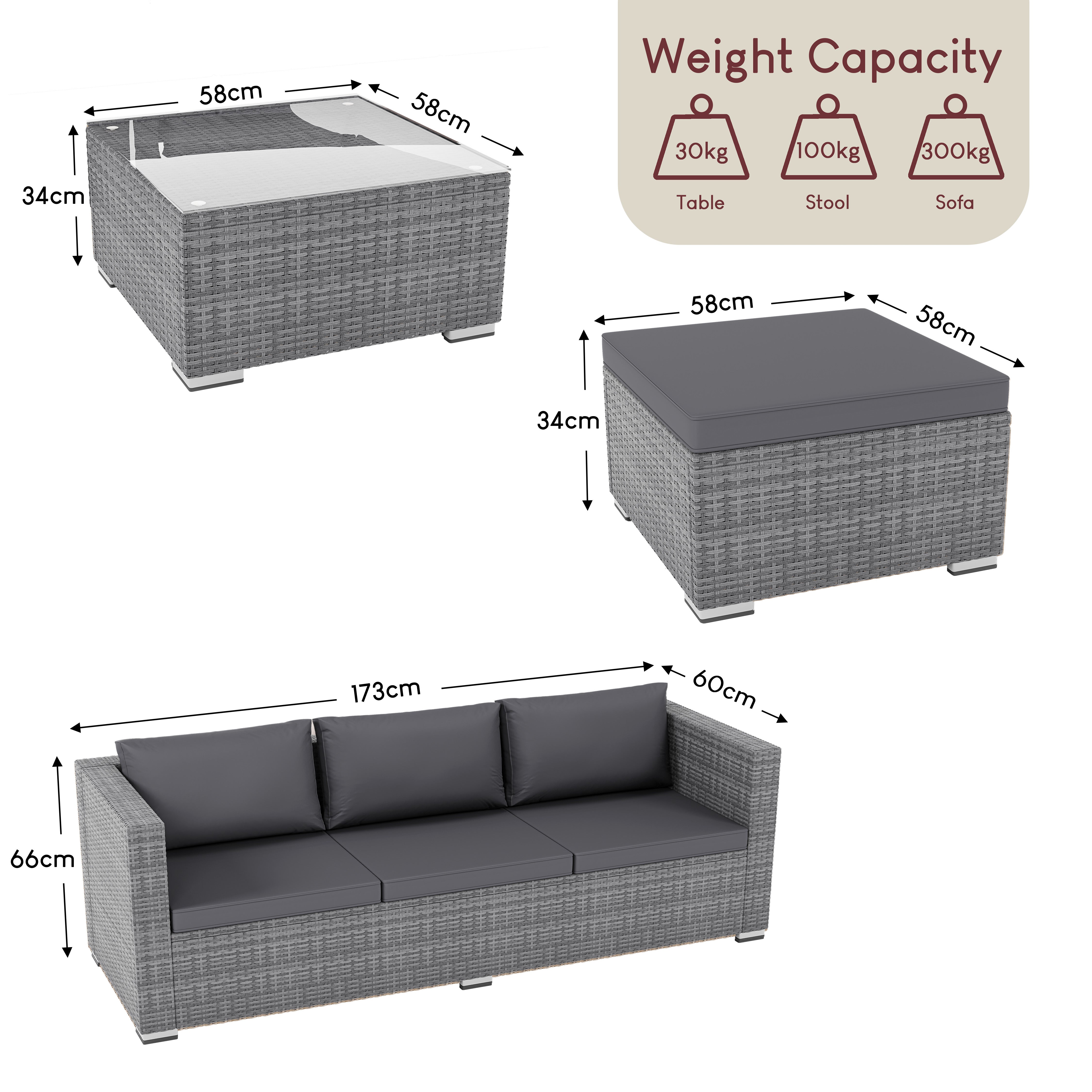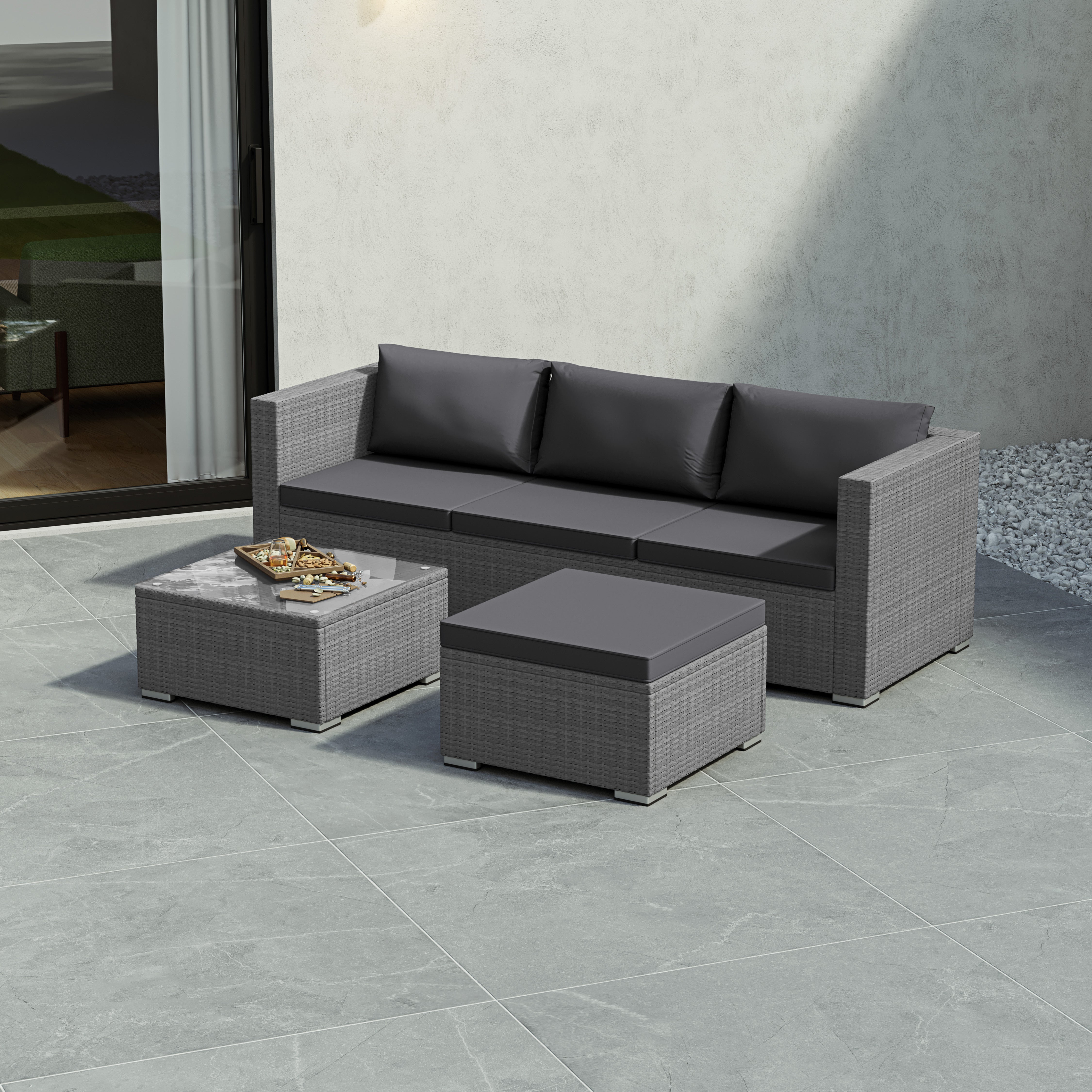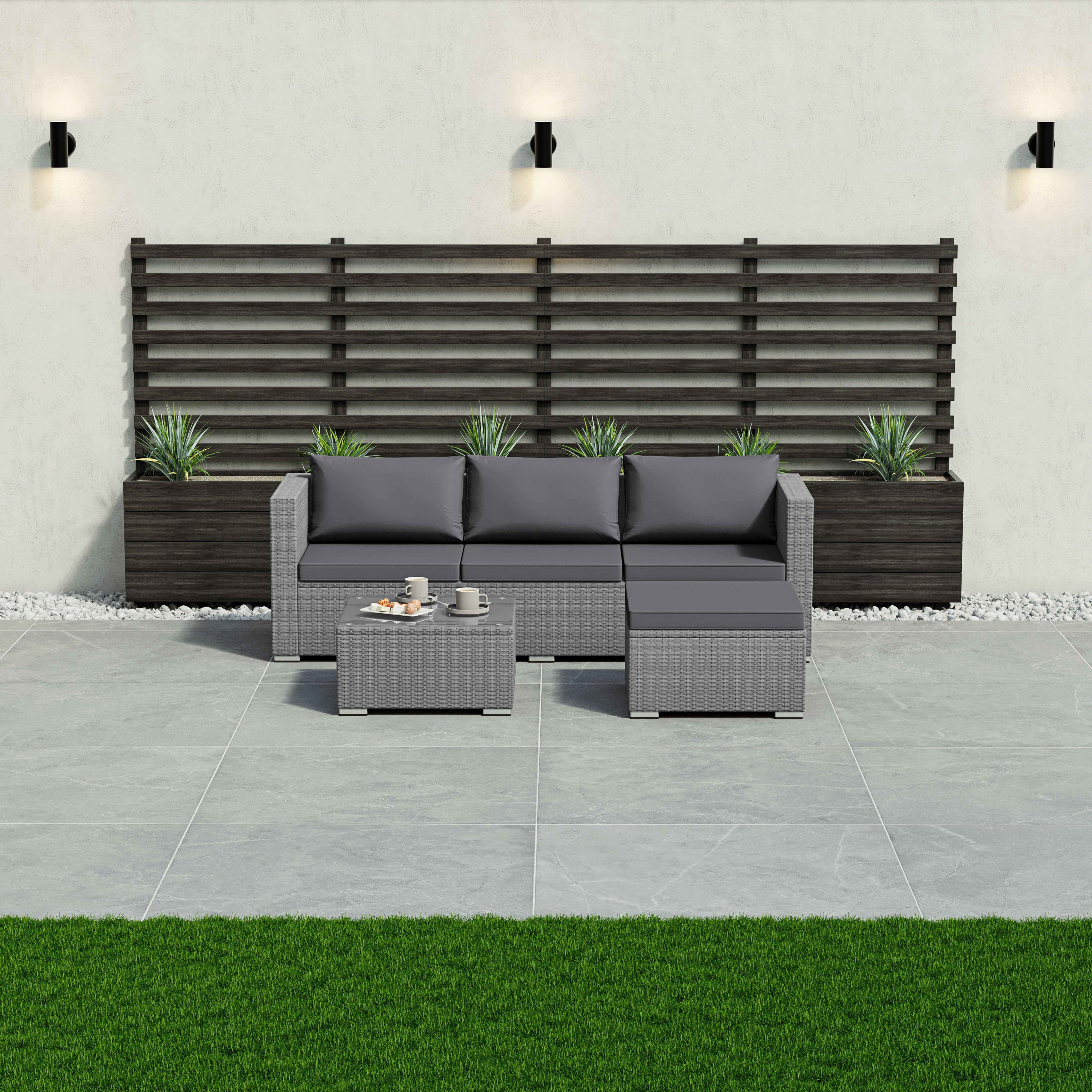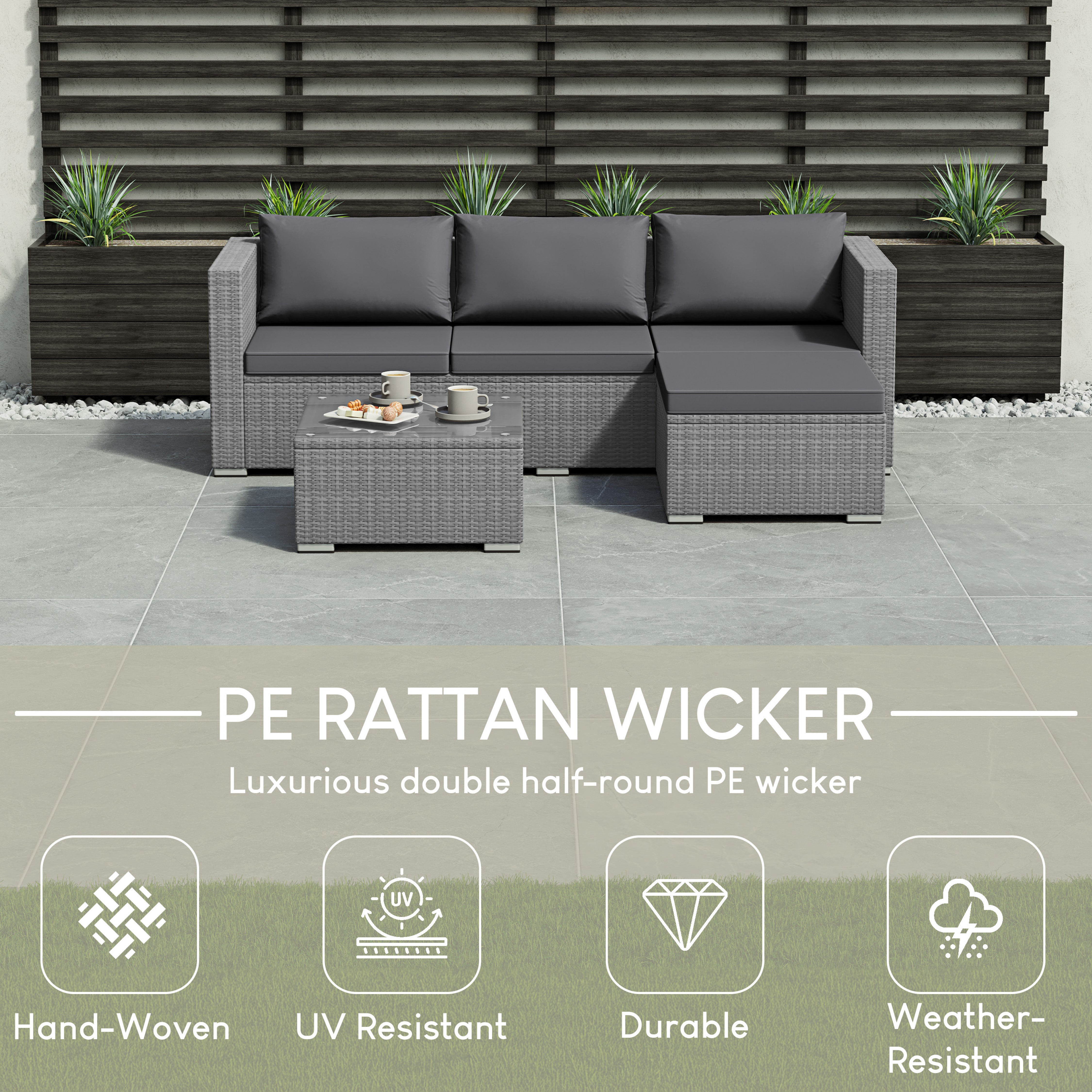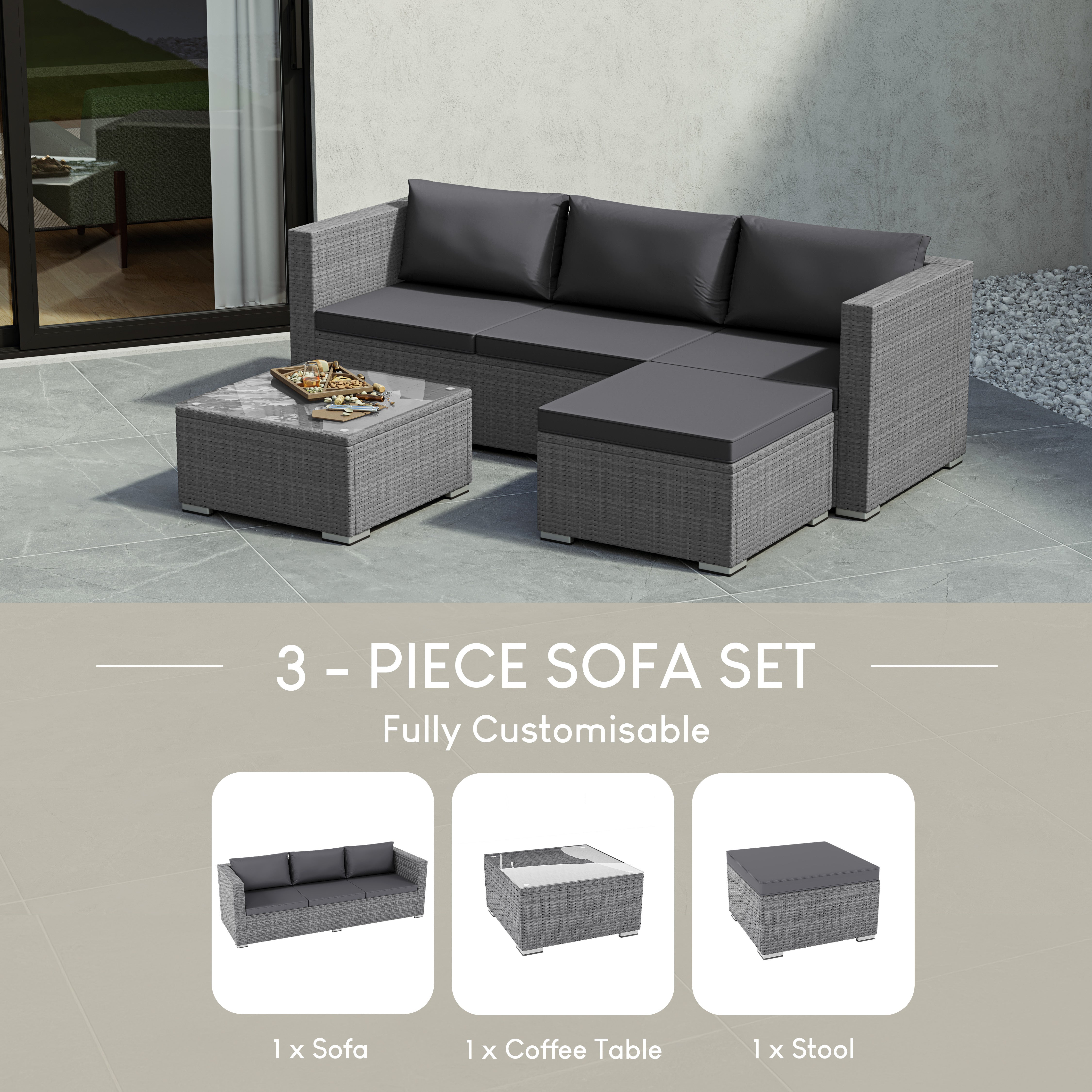 Versatile in layout, the modular design allows you to adapt the arrangement to suit your space. Whether you have a compact balcony or a larger garden patio, this set fits seamlessly into any outdoor setting.