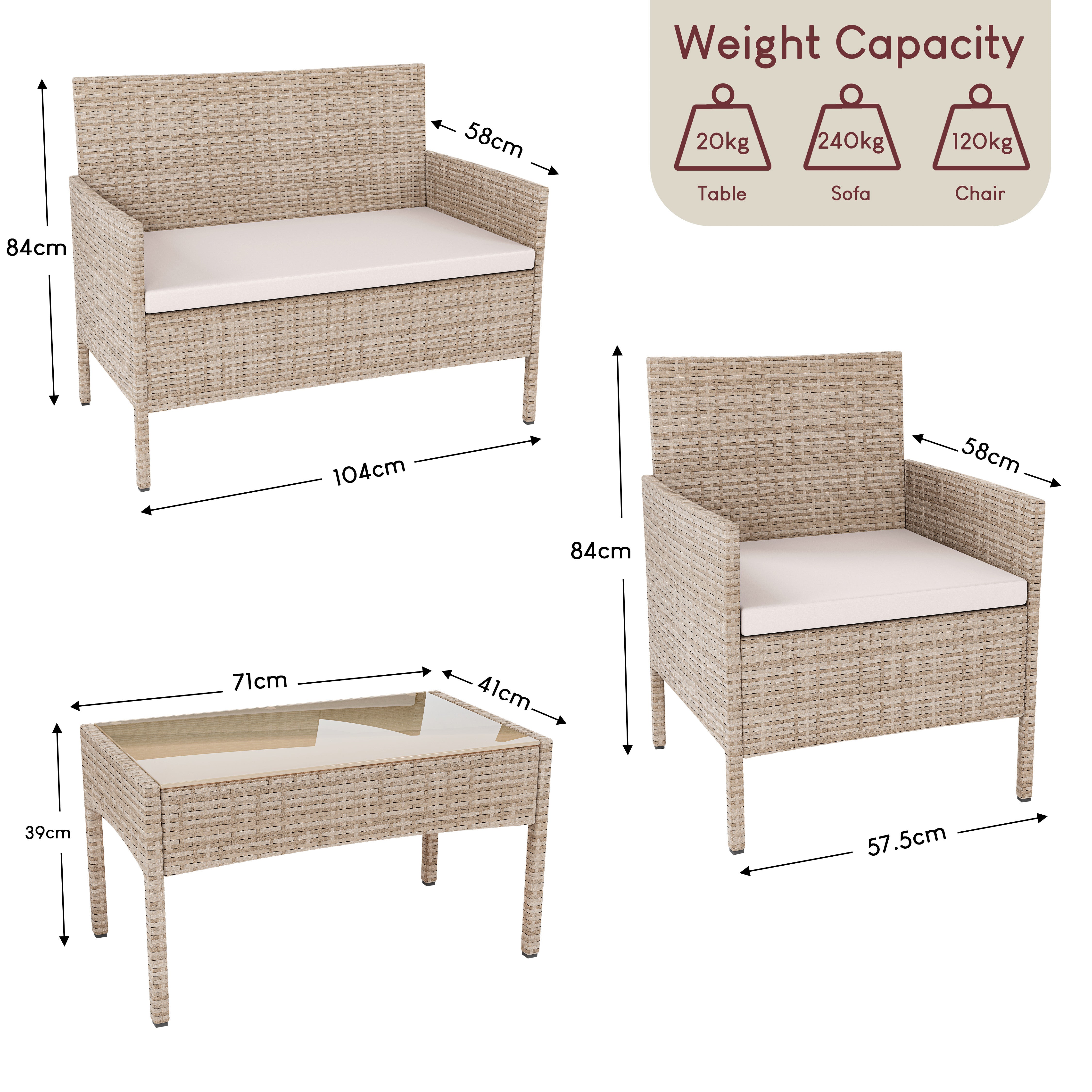 Therefore, we ensure that our rattan is fire-retardant and as the rattan material is UV-resistant it ensures complete safety from the weather. All seat cushions are also washable meaning any mucky shoe stains or clumsy spills no longer need to ruin your day.