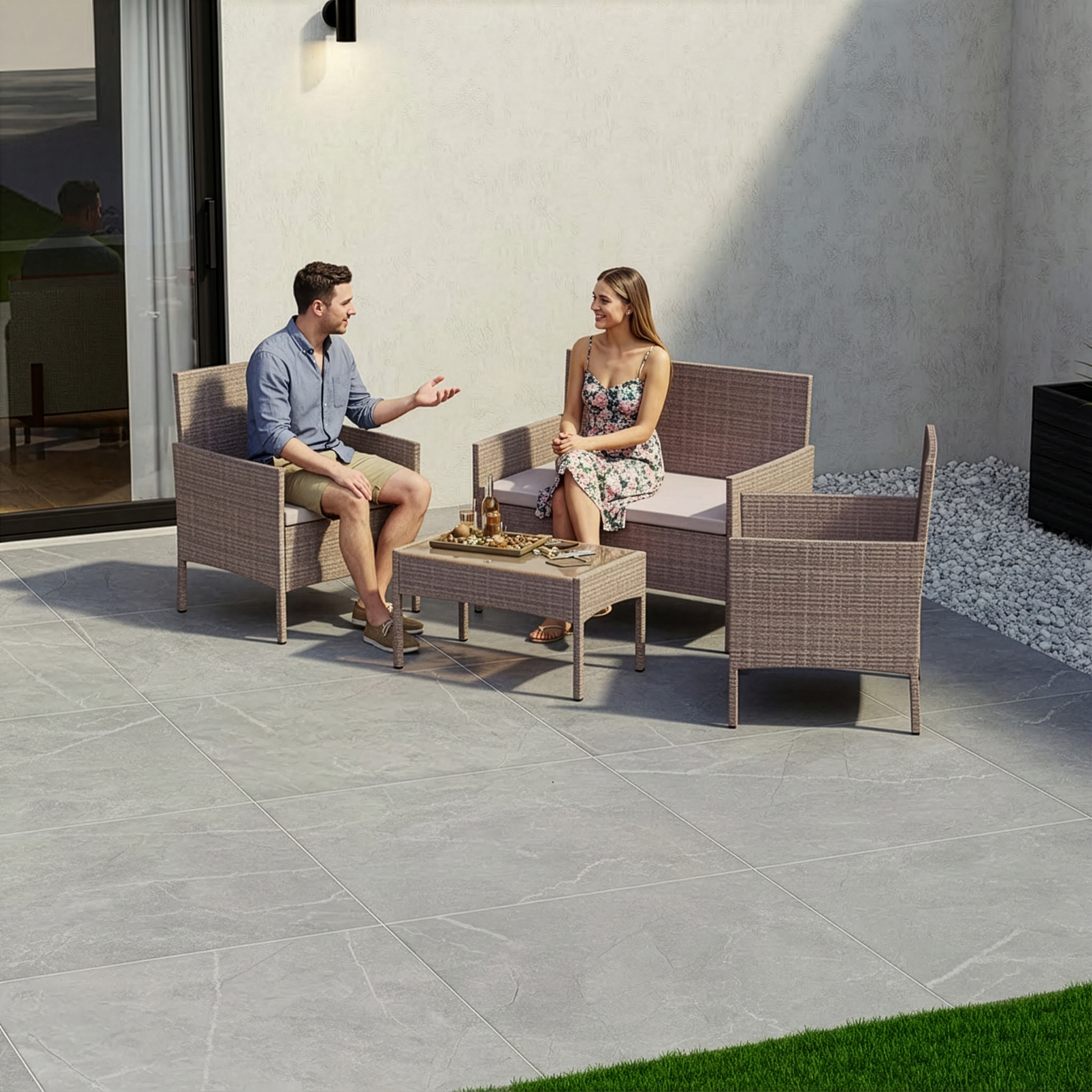 This Kendal 4-Piece Rattan Set is the perfect garden set for adding a touch of contemporary style to your garden whilst maintaining a homely ambience, introducing the ‘Kendal 4-Piece Rattan Set - Grey’.