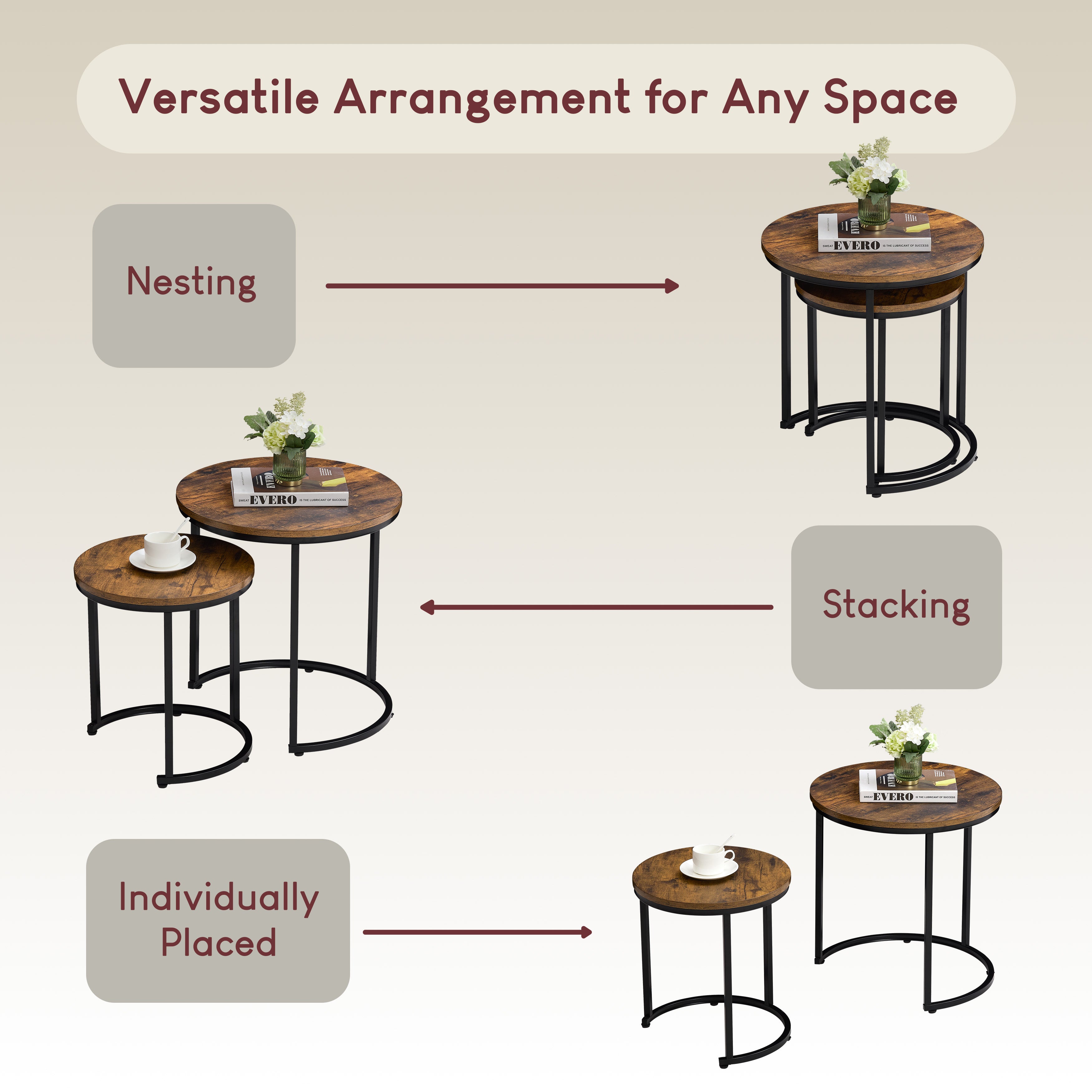 - Space-Saving Nesting: Ideal for optimizing space, this nesting arrangement allows the tables to neatly stack within each other when not in use, providing practicality without compromising on style.