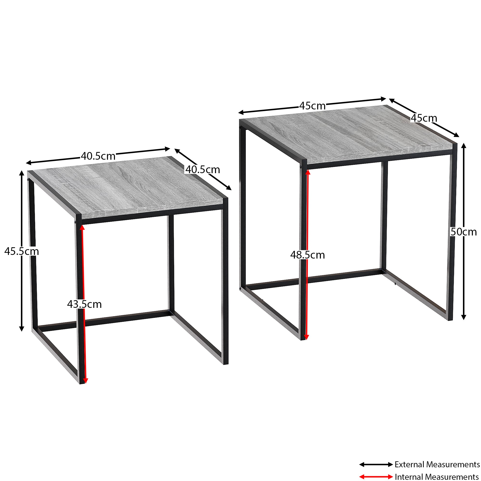 This 2-piece set includes two equally sized tables that can be used together for a cohesive look or separately to maximise their functionality. The spacious table tops provide ample surface area for drinks, snacks, books, or decorative items, making them ideal for various uses around your home.