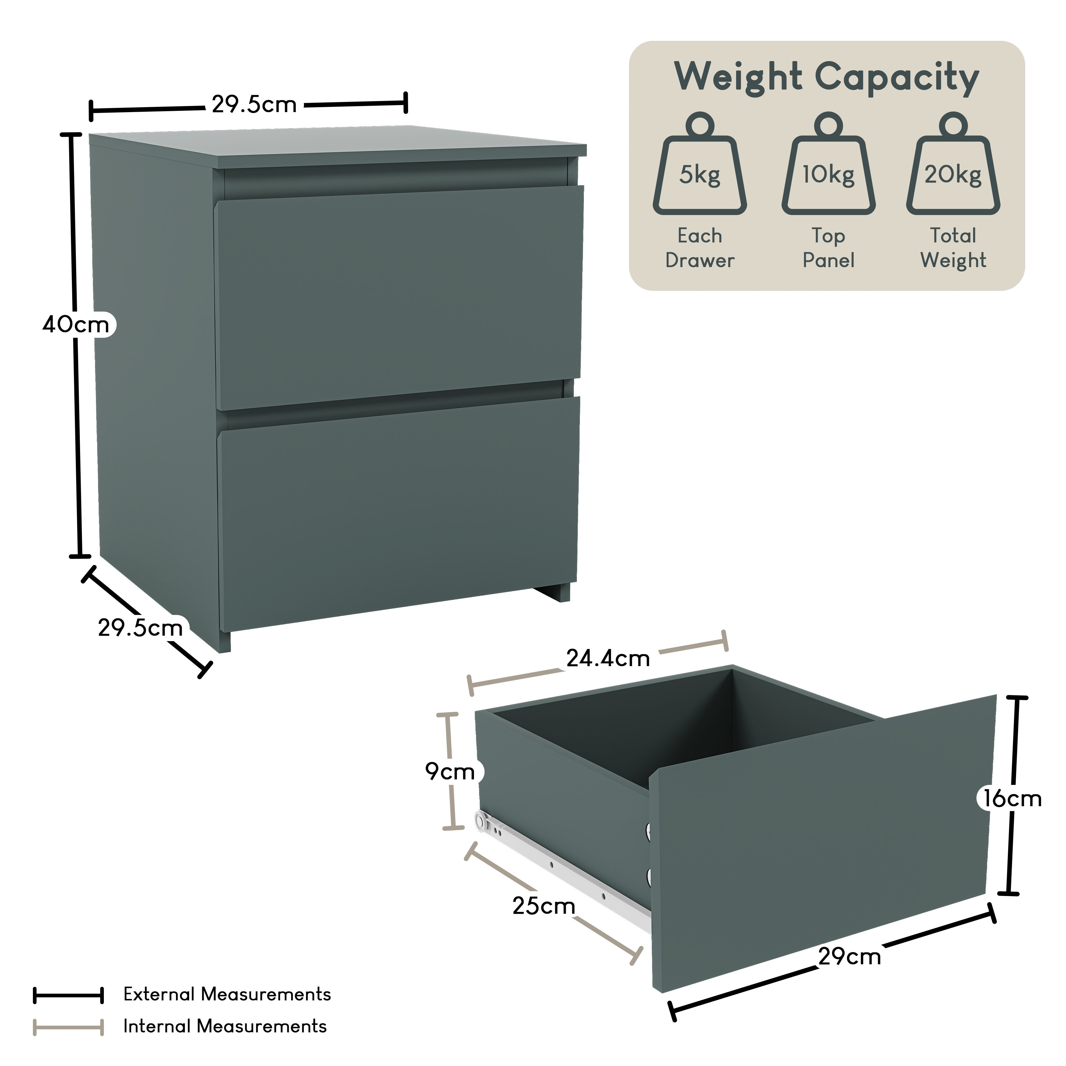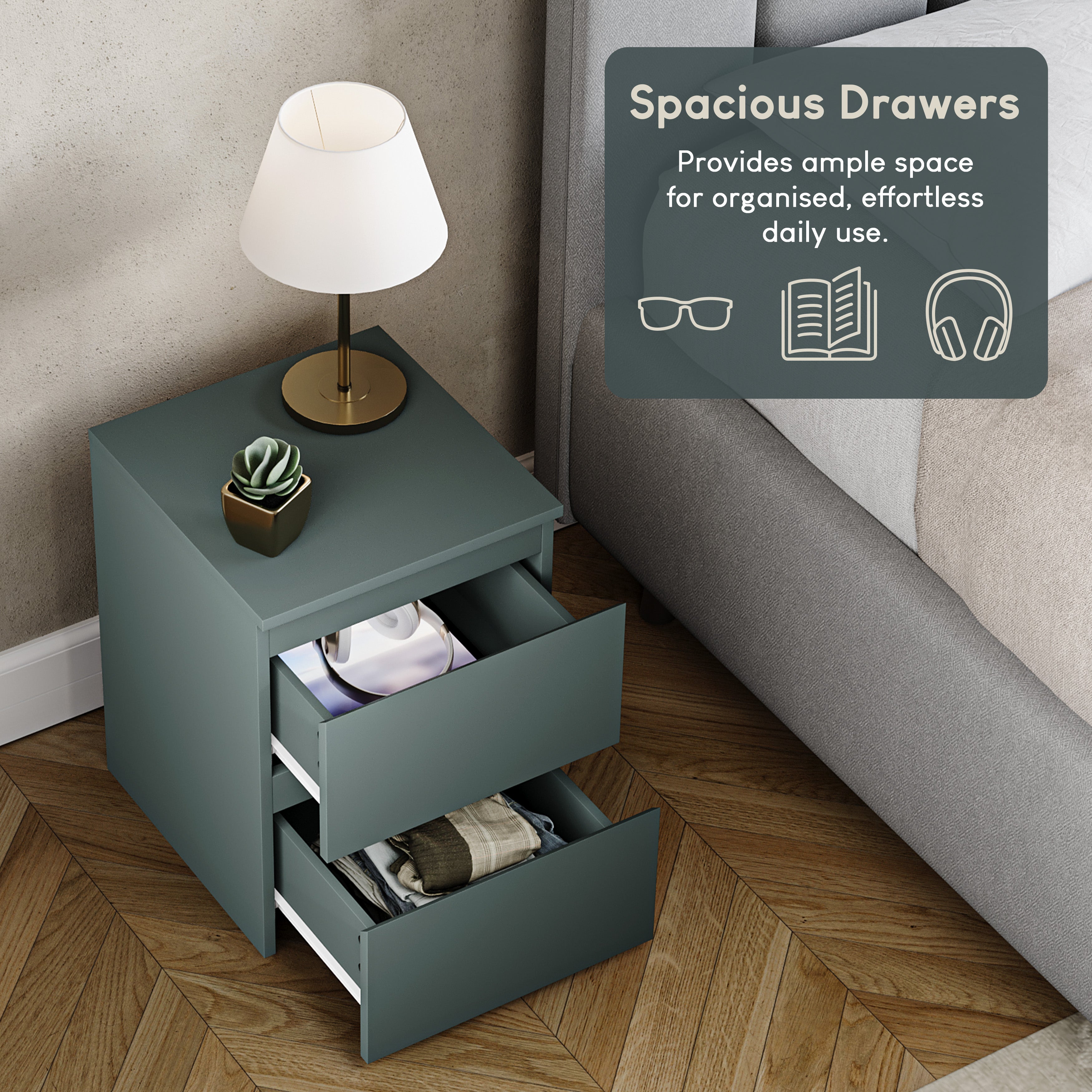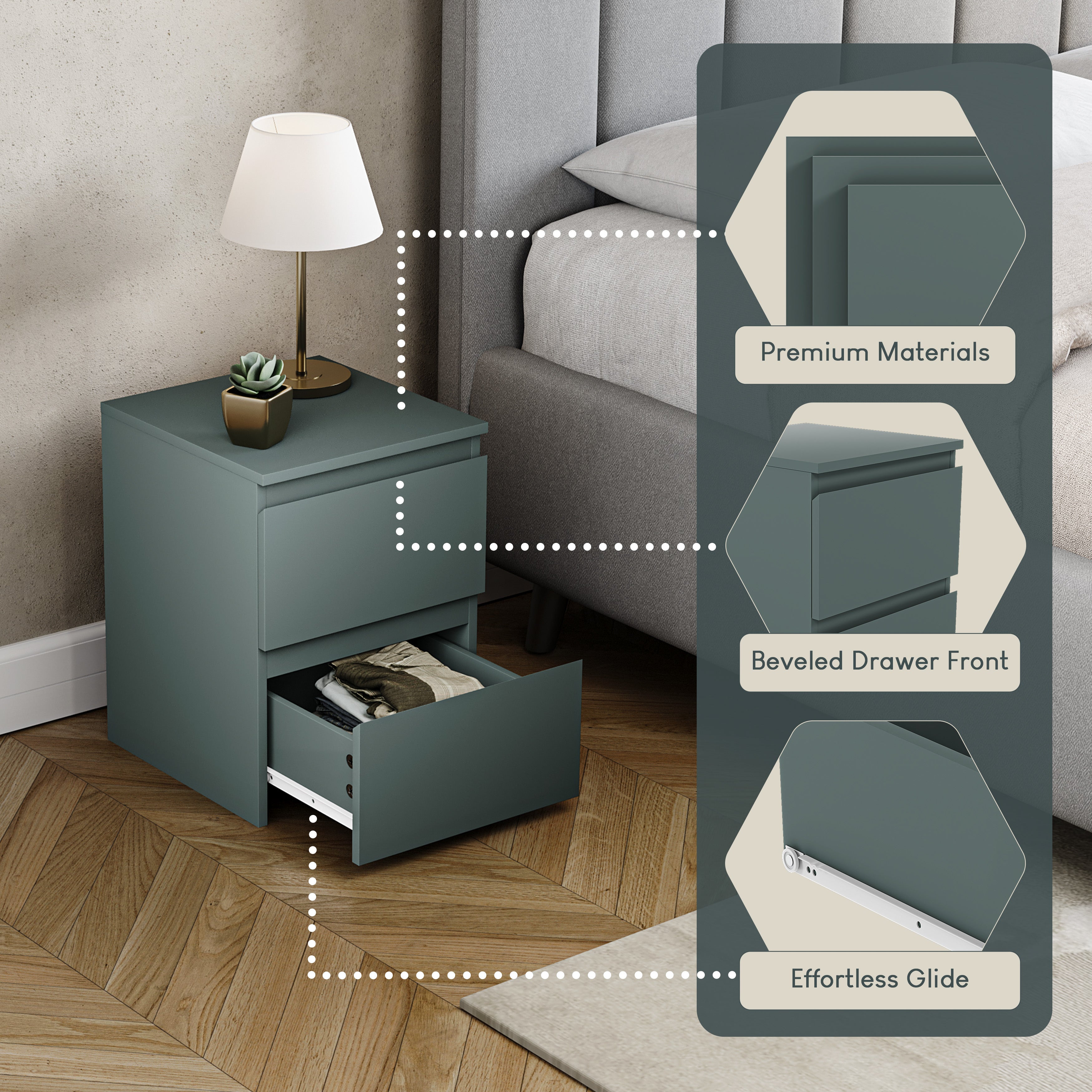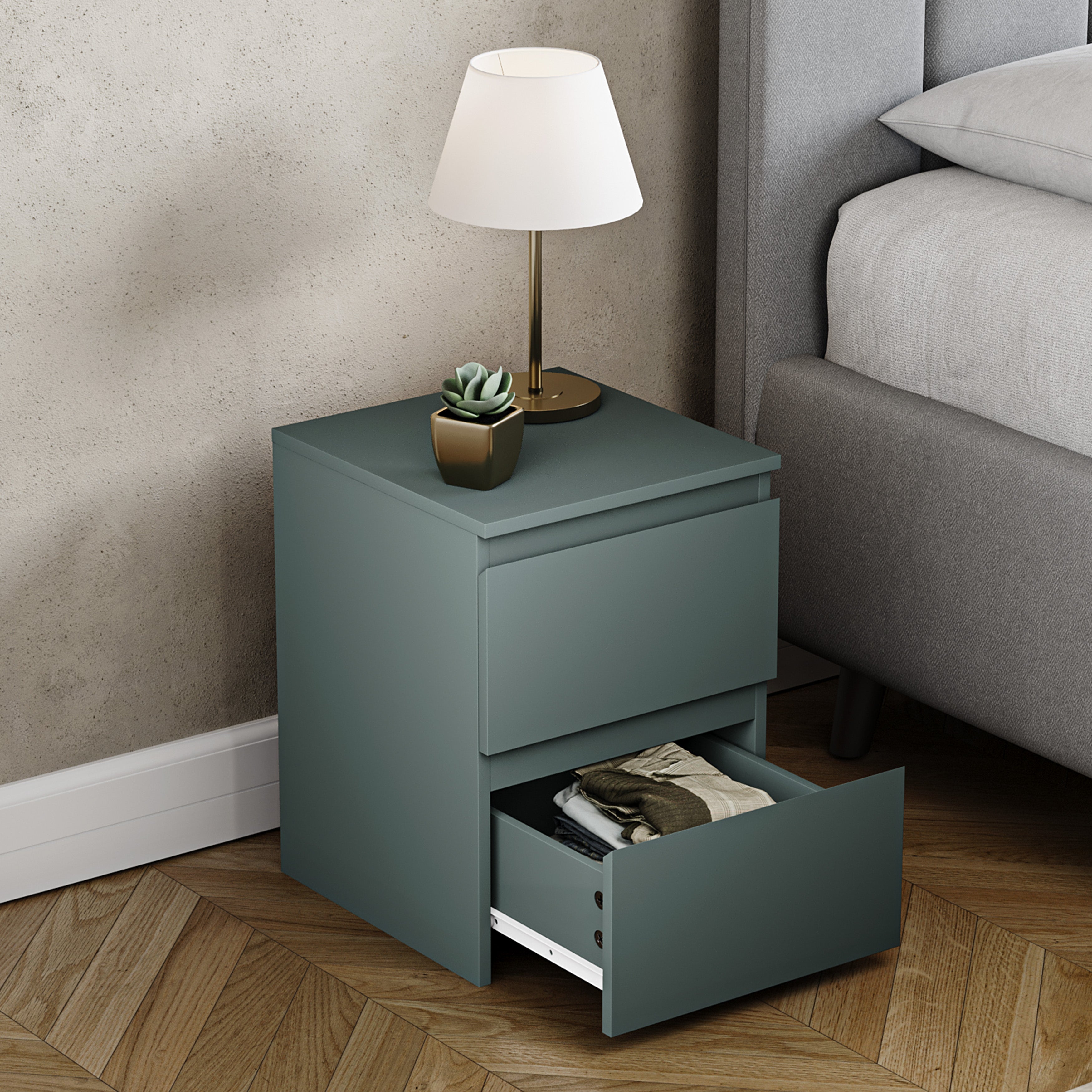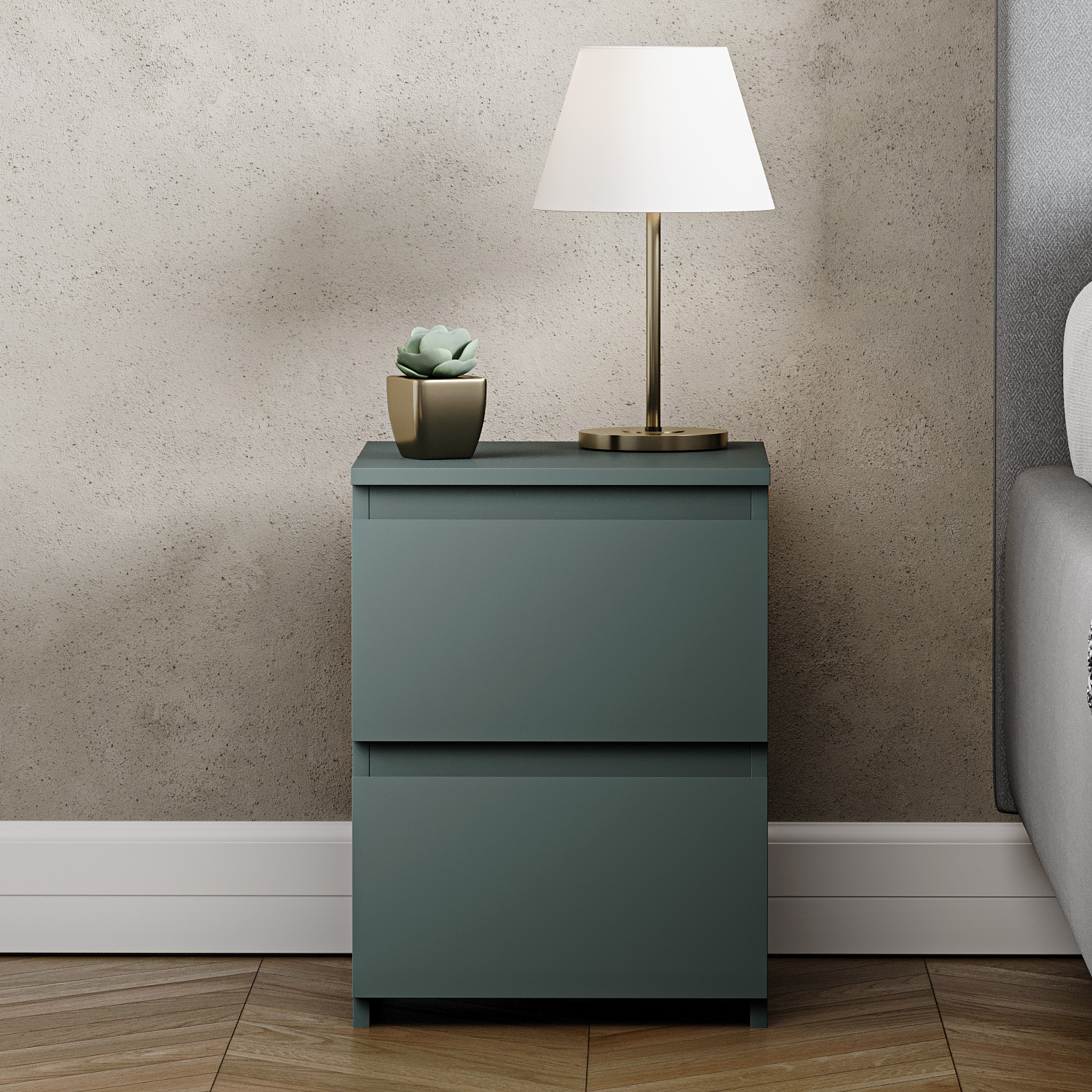 Denver 2 Drawer Bedside Chest, Jasper Green