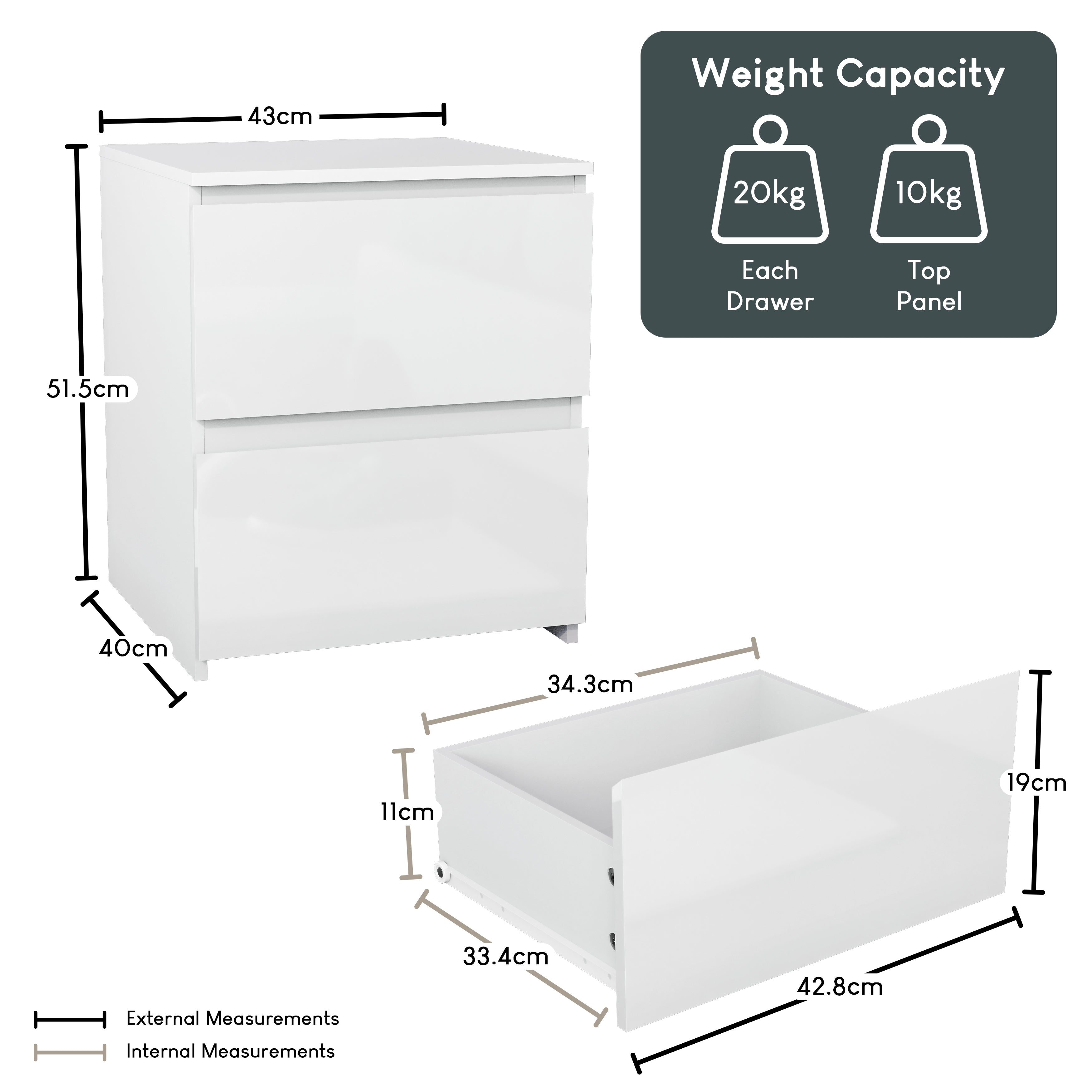 Introducing our Glinton 2-drawer Bedside Cabinet, the perfect storage solution for any modern and minimalist bedroom decor! Made from high-quality materials with a sleek finish, this bedside cabinet features high gloss drawers and a matte carcass for a unique and contemporary look.