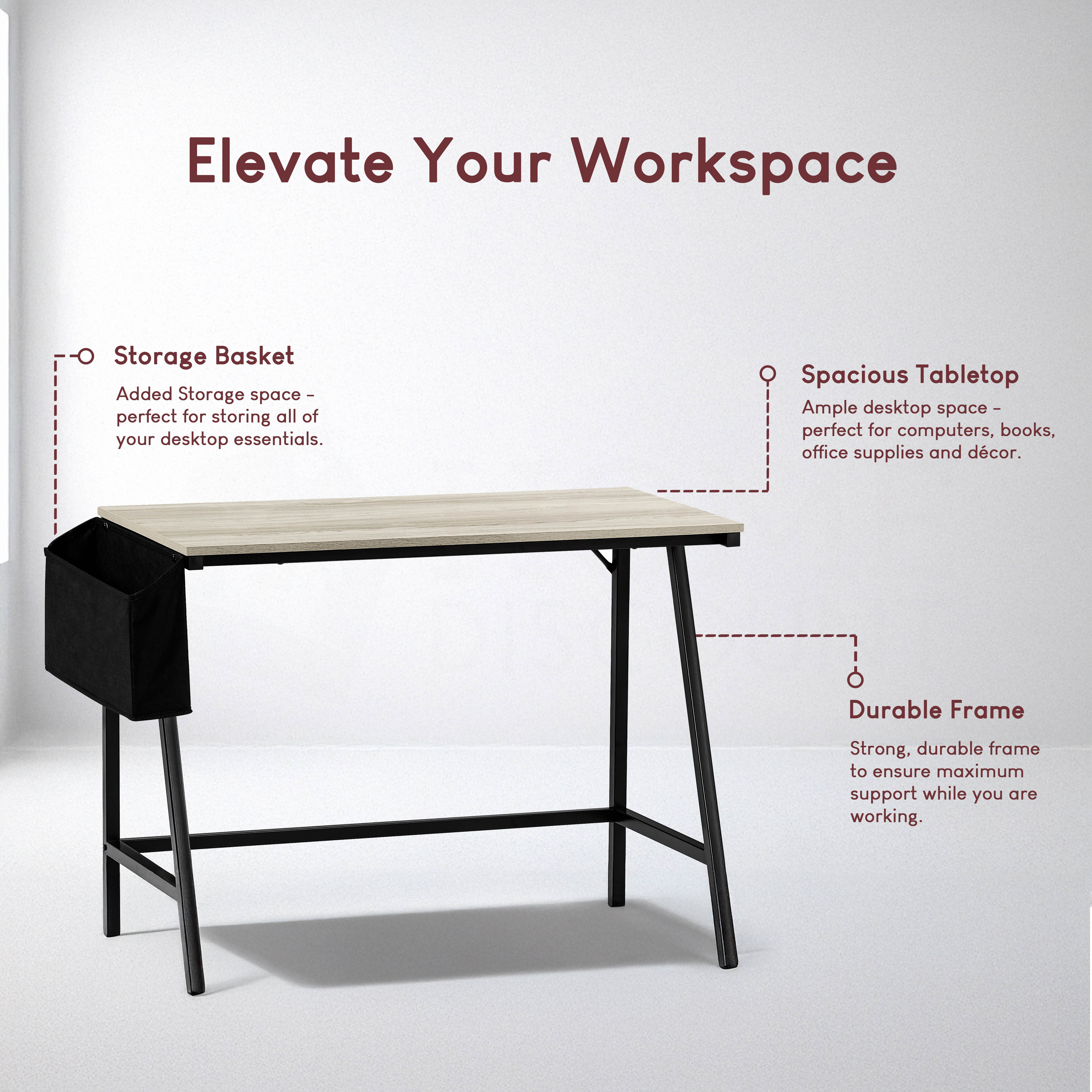 Perfect for both home and office use, the Brooklyn Computer Desk adapts to your needs. Its standout feature is the versatile hanging storage basket, which you can place on either the left or right side of the desk, allowing for a personalized, clutter-free workspace.