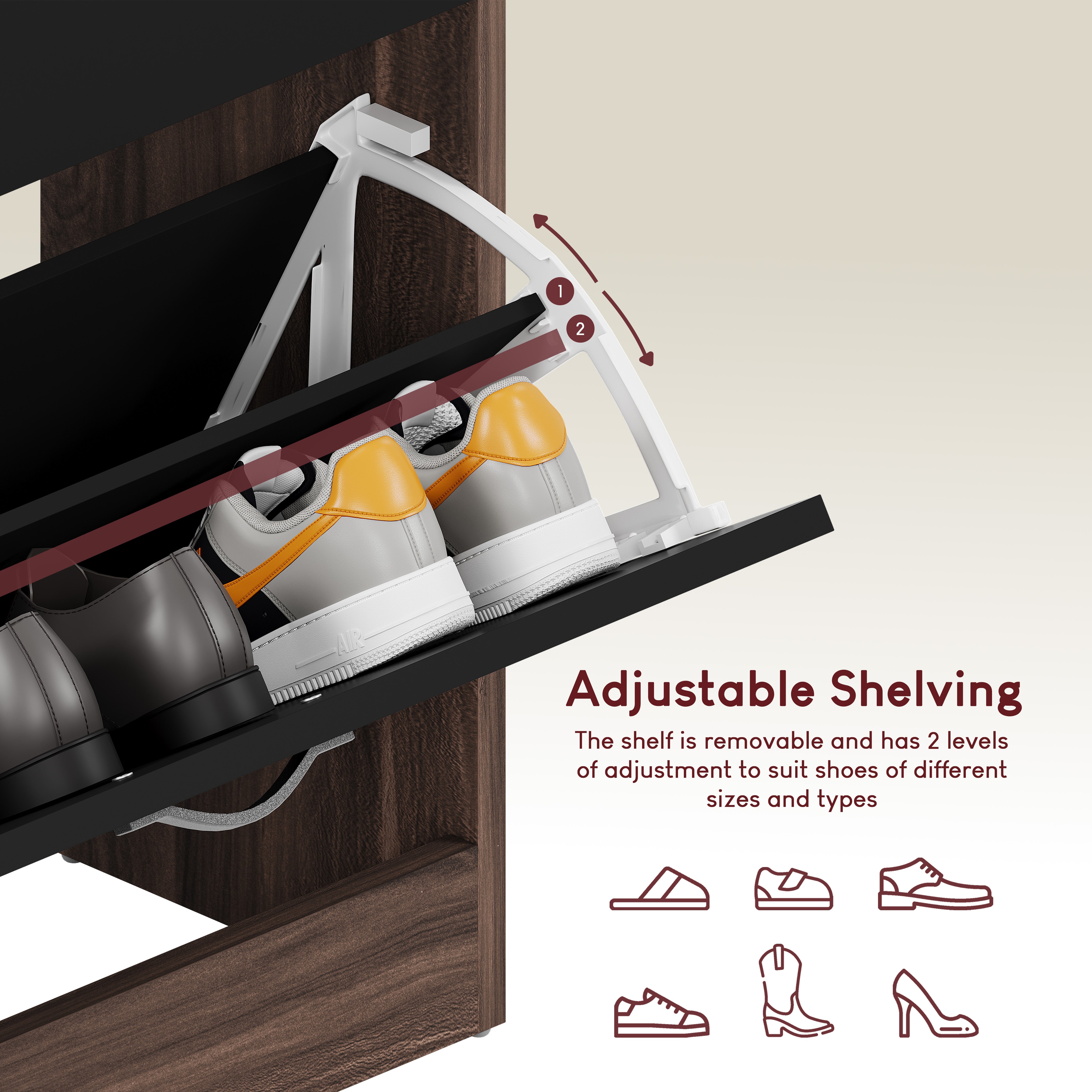 - Stylish Design: The modern and sleek design of this shoe cabinet will add a touch of sophistication to any room, while also saving space