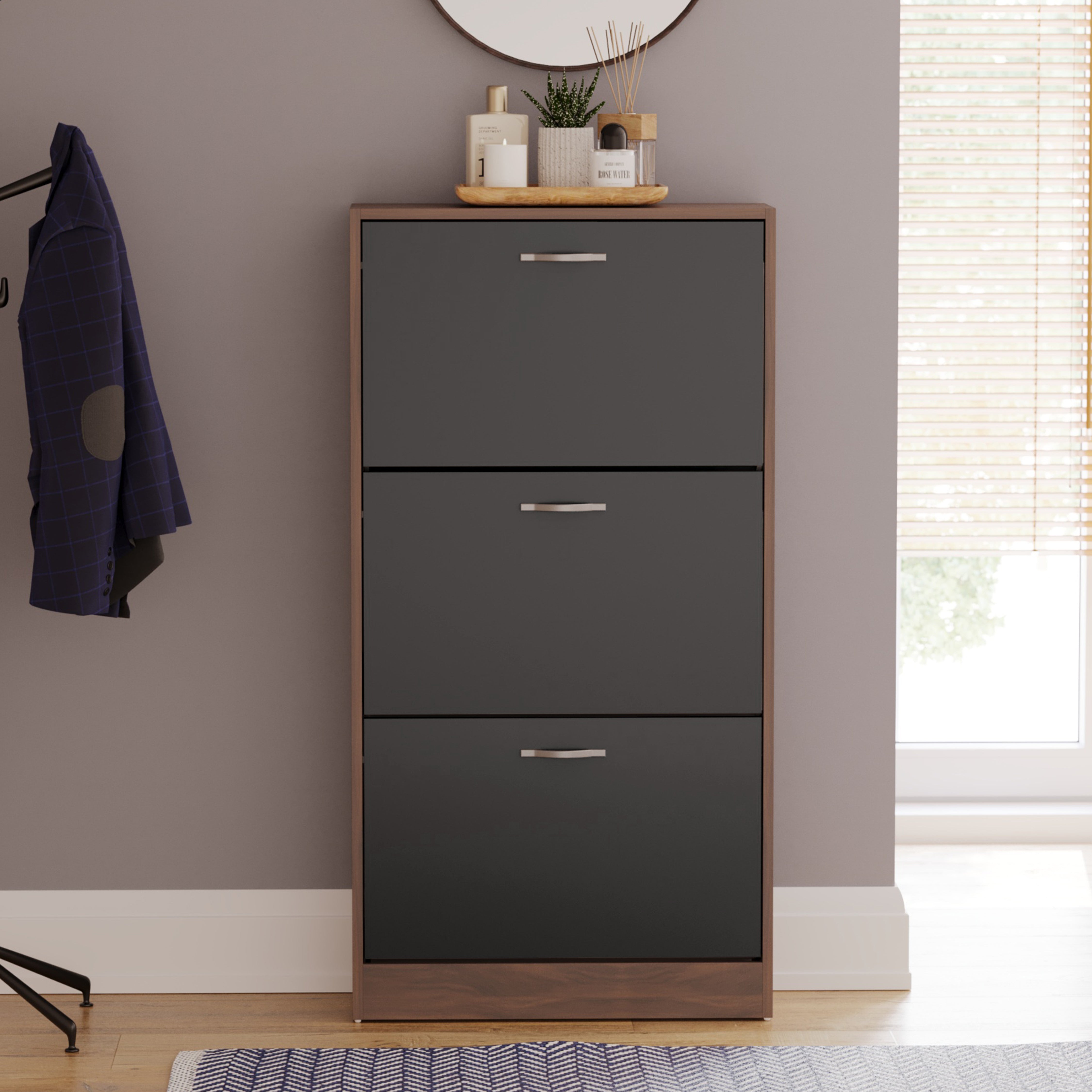 3-Drawer Shoe Cabinet, Walnut & Black