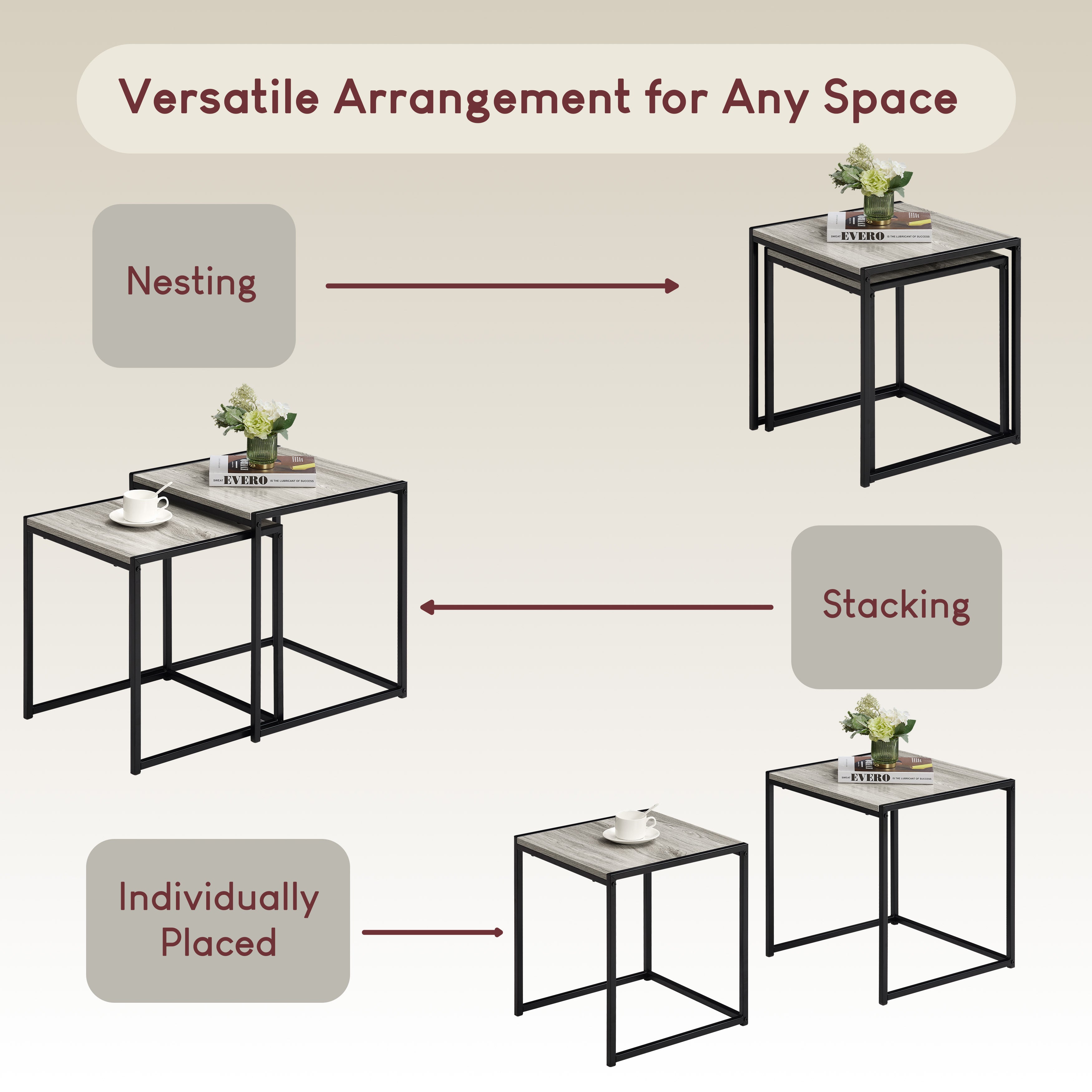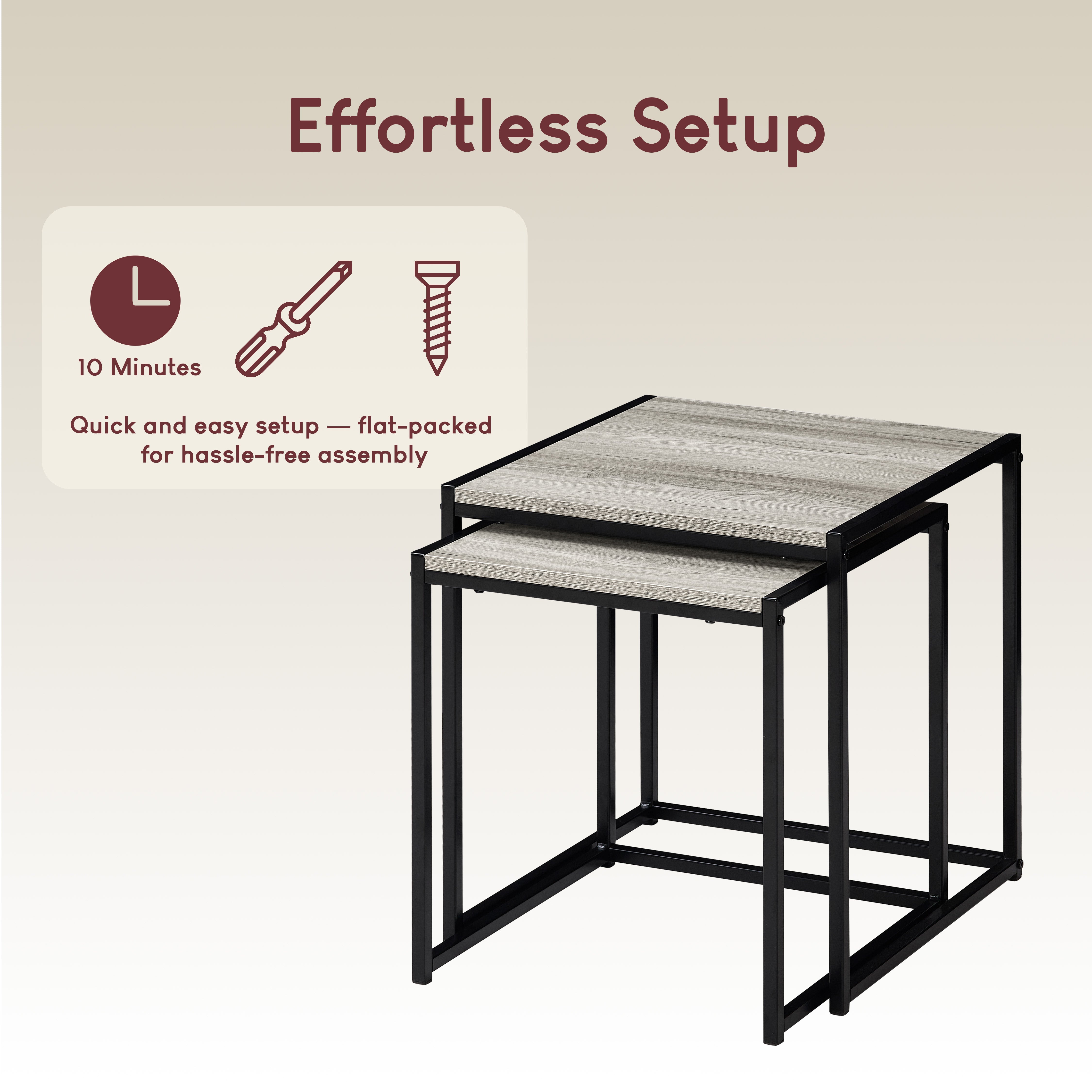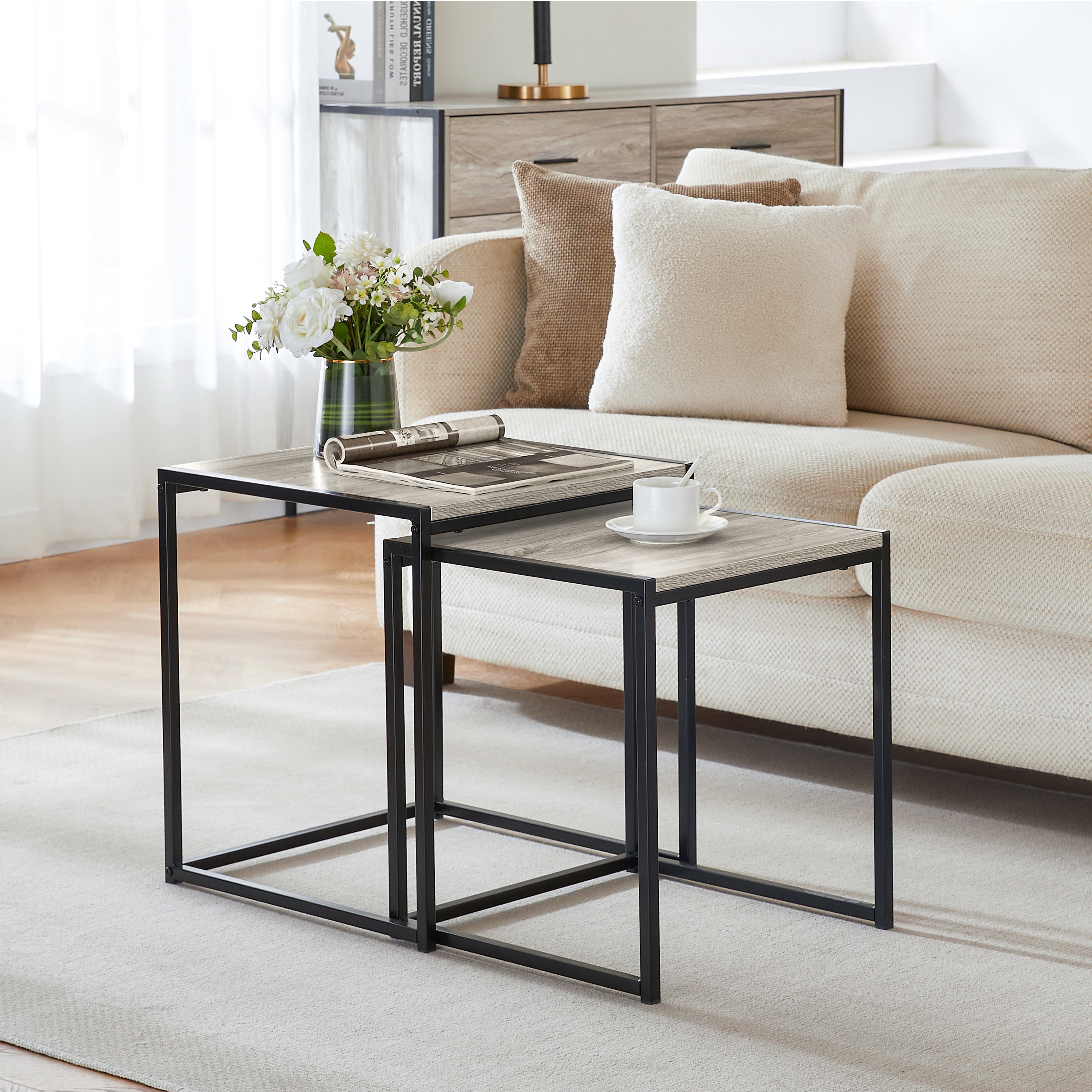 This 2-piece set includes two equally sized tables that can be used together for a cohesive look or separately to maximize their functionality. The spacious table tops provide ample surface area for drinks, snacks, books, or decorative items, making them ideal for various uses around your home.