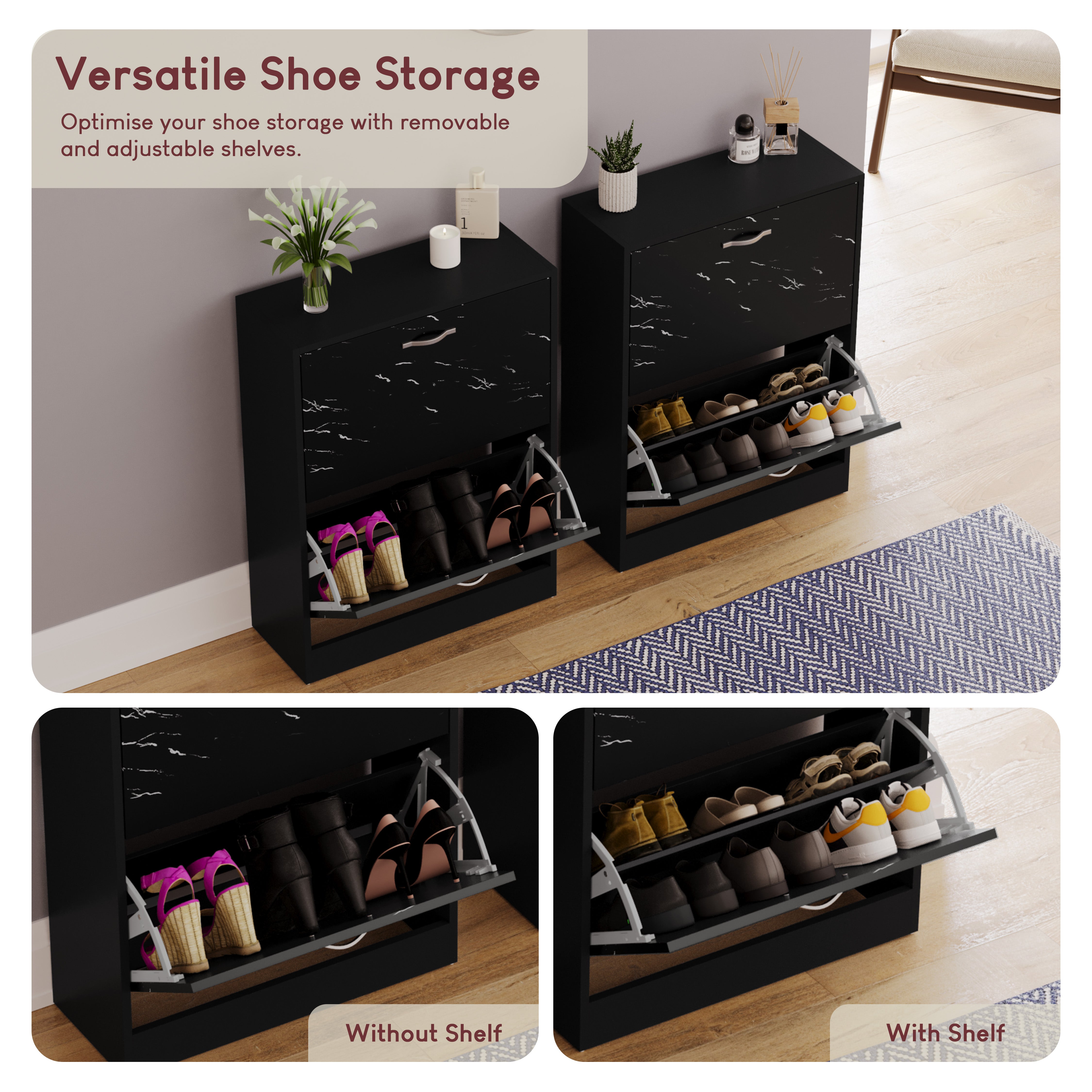 Introducing our sleek and modern 2-Drawer Shoe Cabinet, the perfect solution for stylish and organized shoe storage. Designed with contemporary aesthetics in mind, this cabinet features clean lines and a minimalist design that effortlessly complements any home decor.