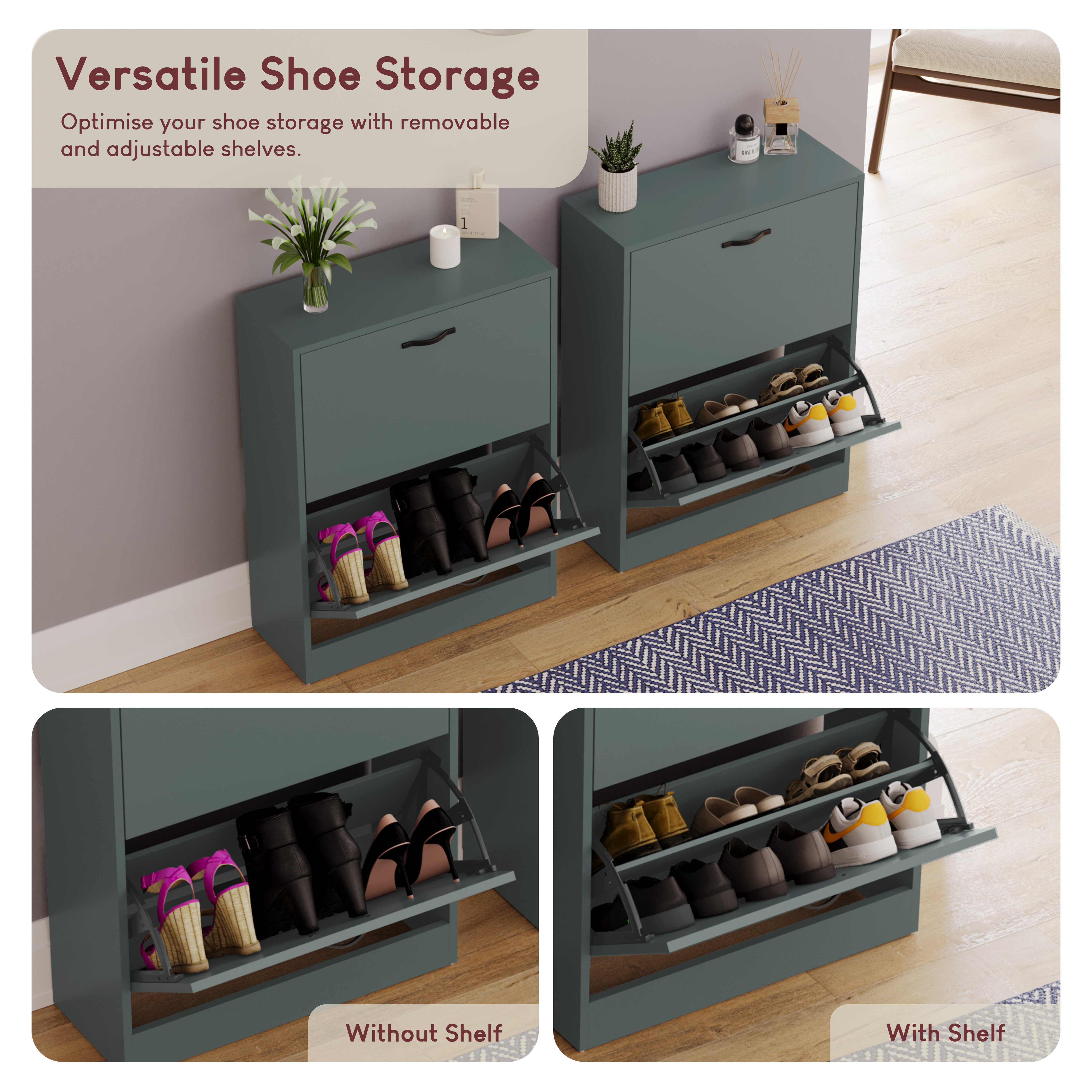 - Spacious Drawers: Each drawer can accommodate up to 3 or 4 pairs of shoes, ensuring your footwear is neatly organized and easily accessible.