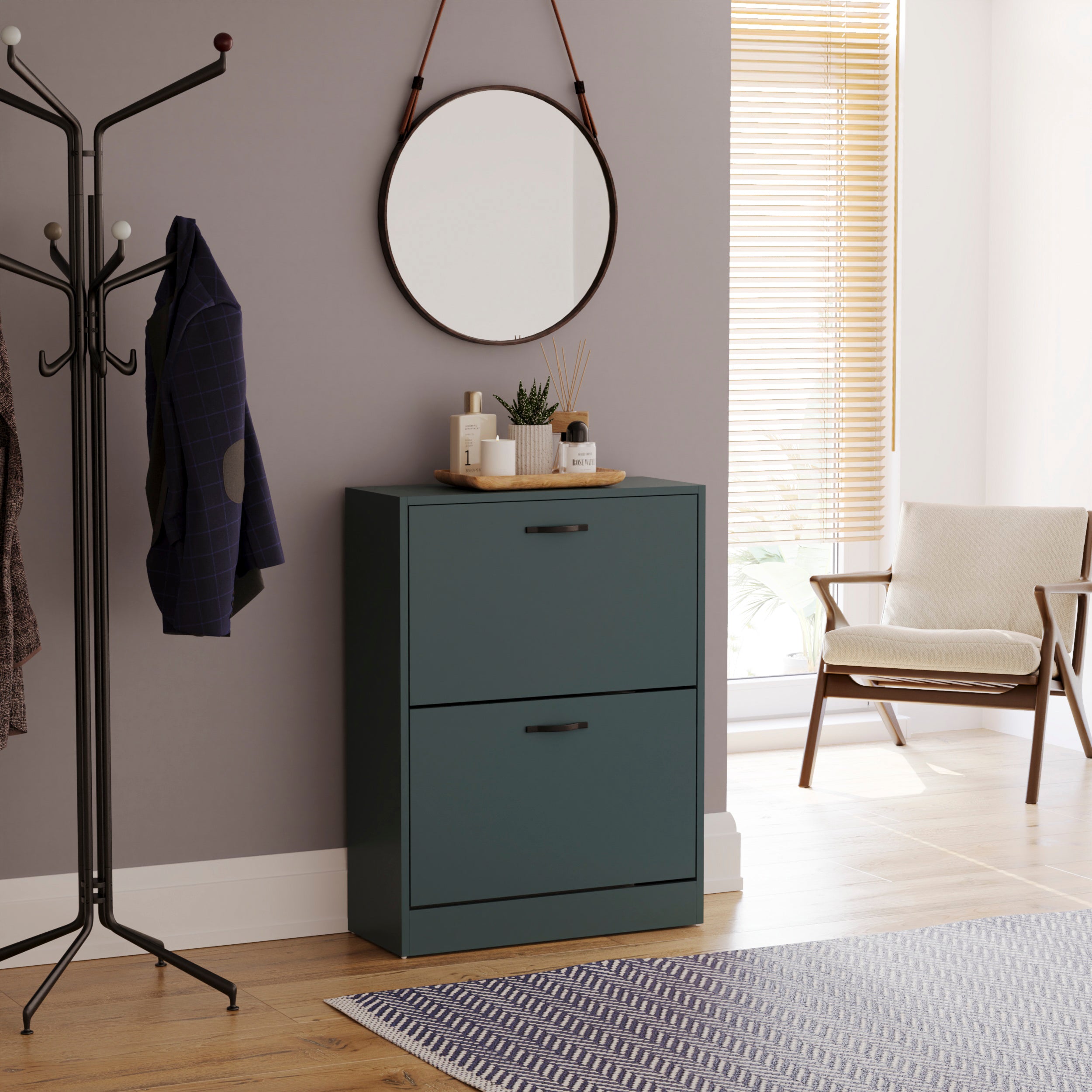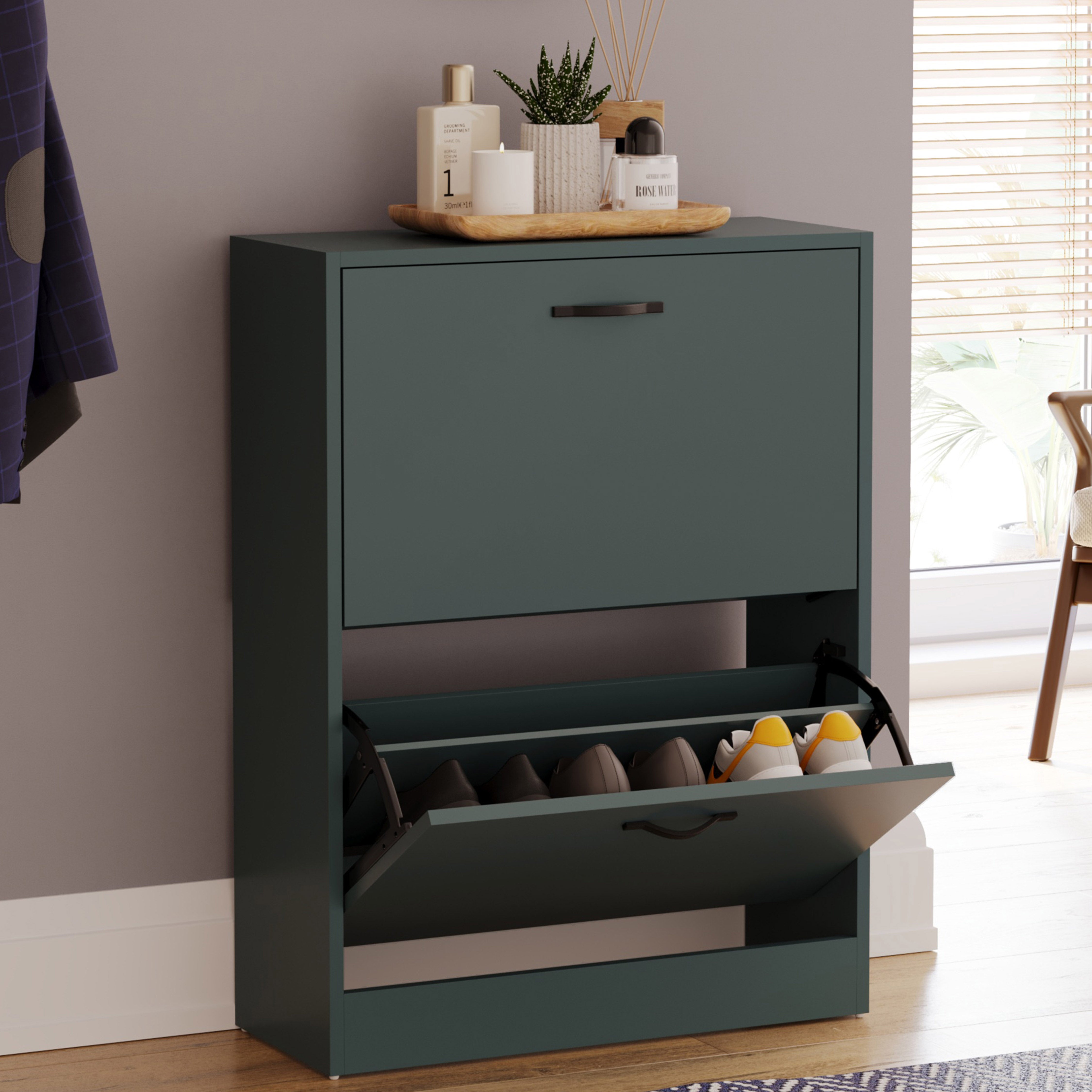 2 Drawer Shoe Cabinet, Jasper Green