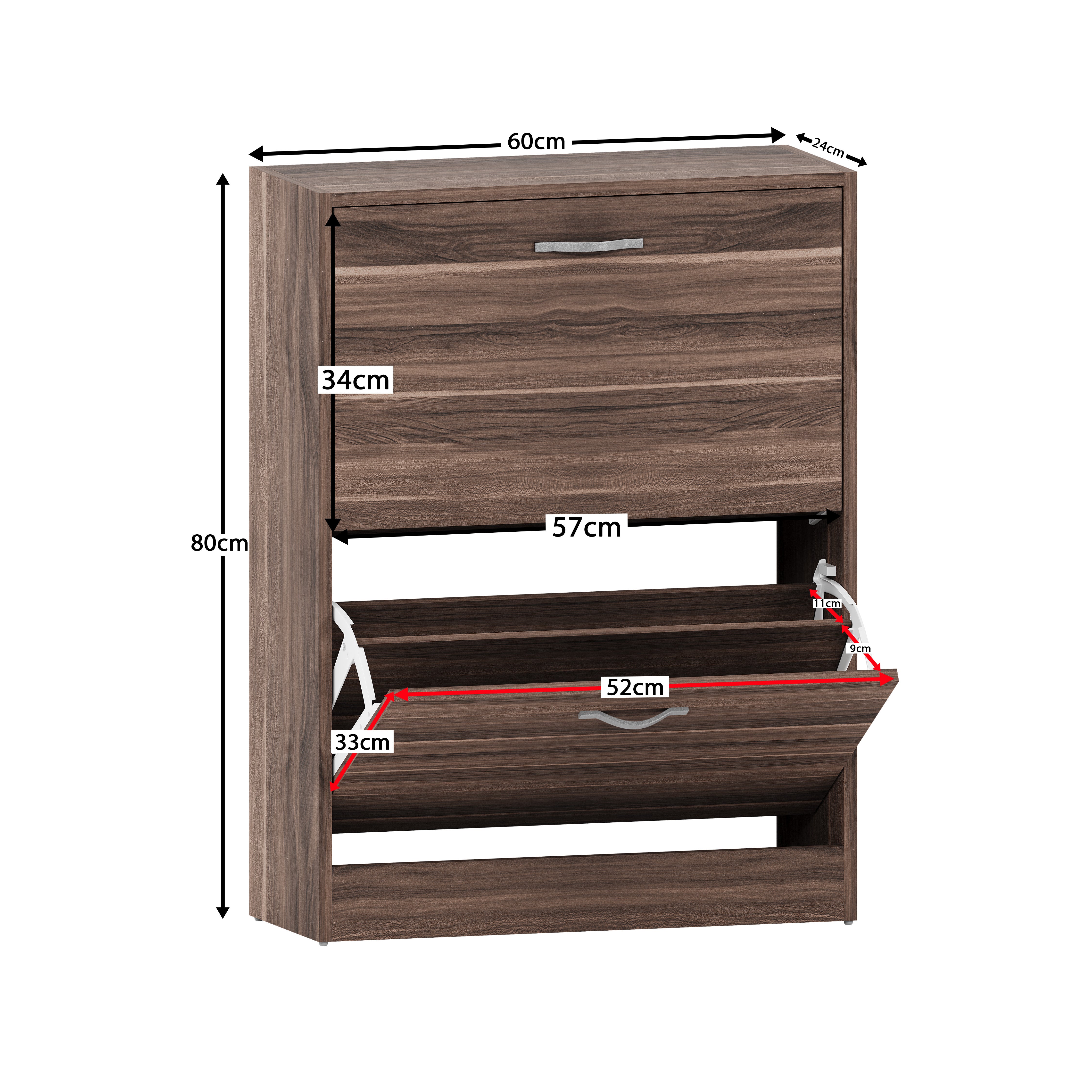 - Efficient Storage: This 2-drawer shoe cabinet can hold up to 3-4 pairs of shoes in each drawer, keeping your collection organized and easily accessible.