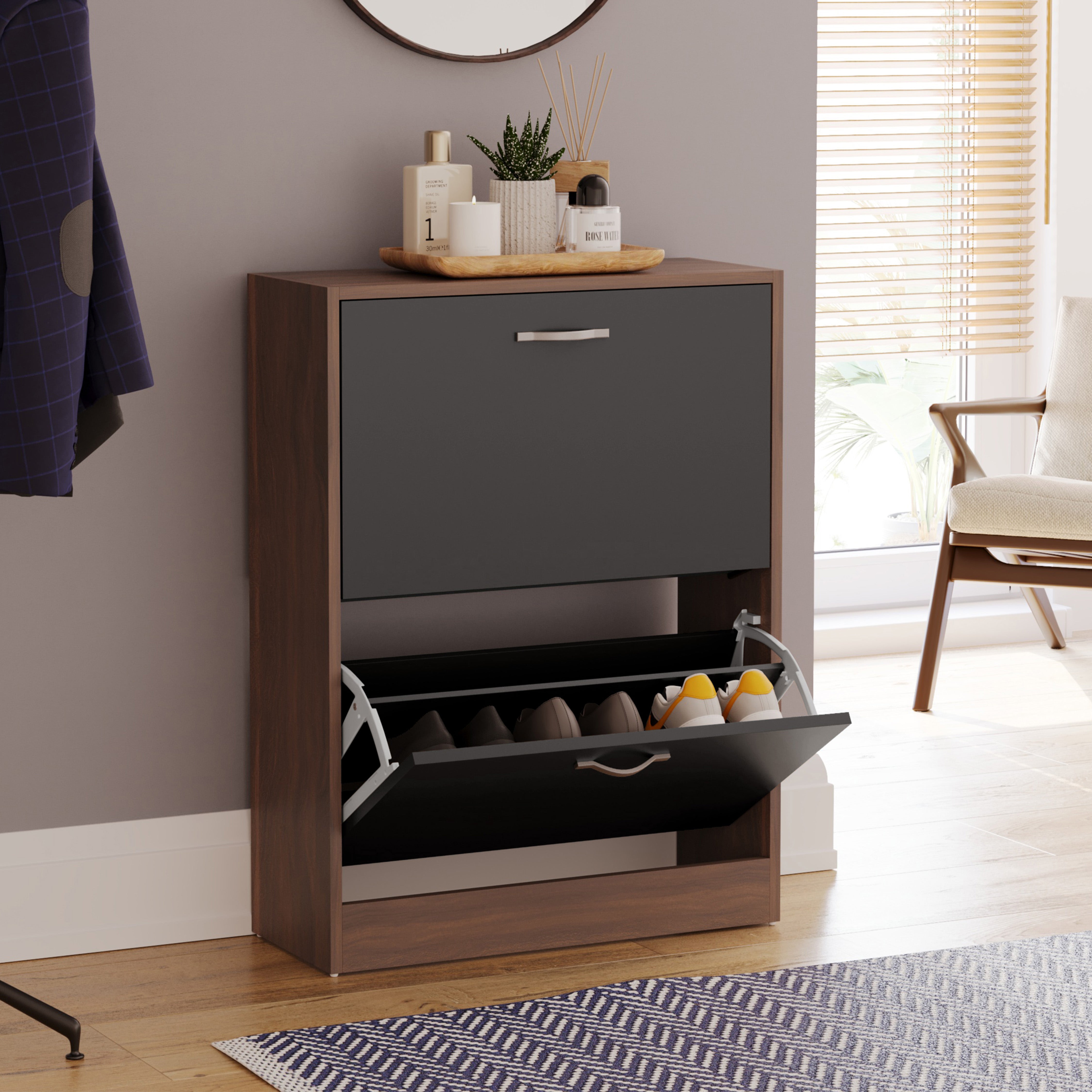 2-Drawer Shoe Cabinet, Walnut & Black