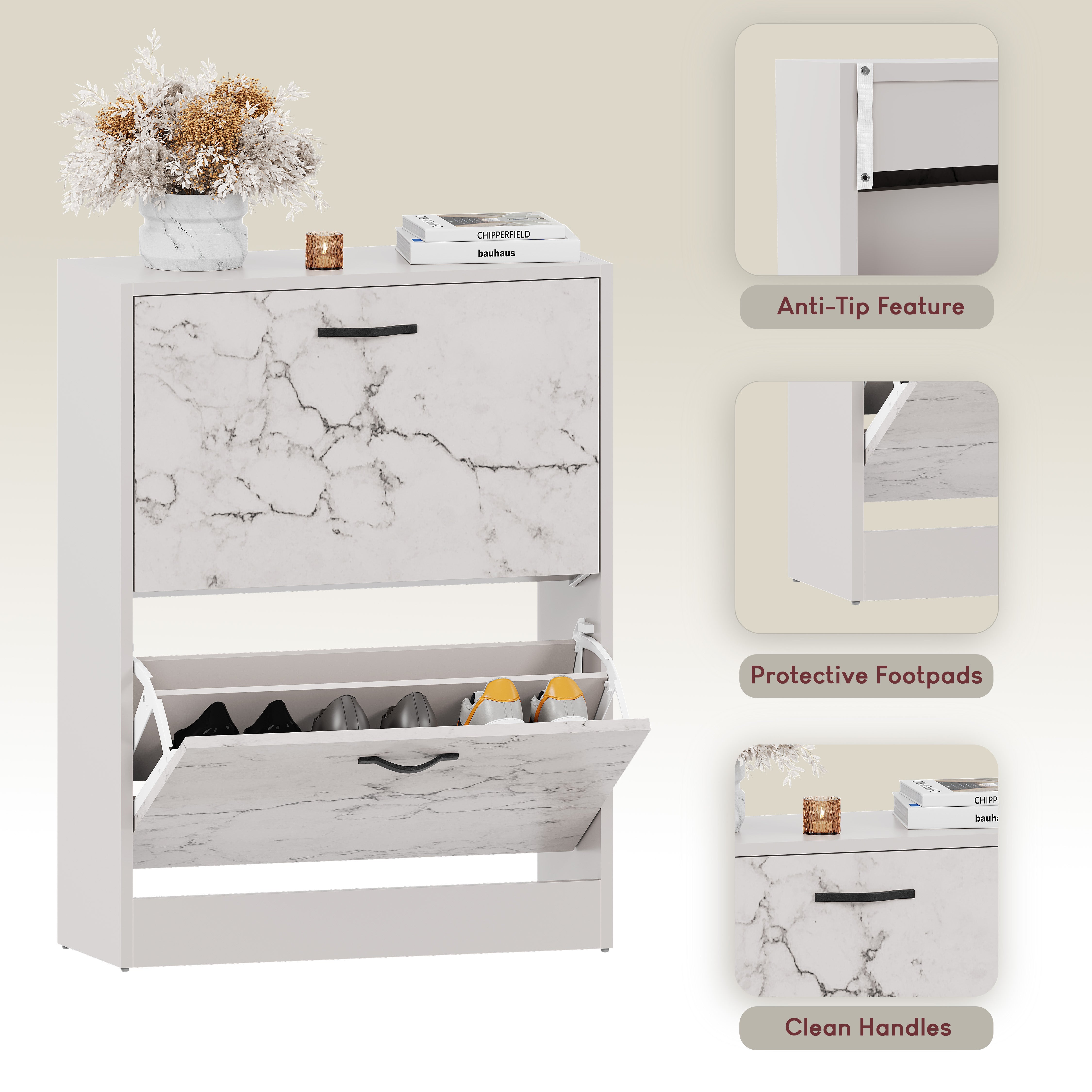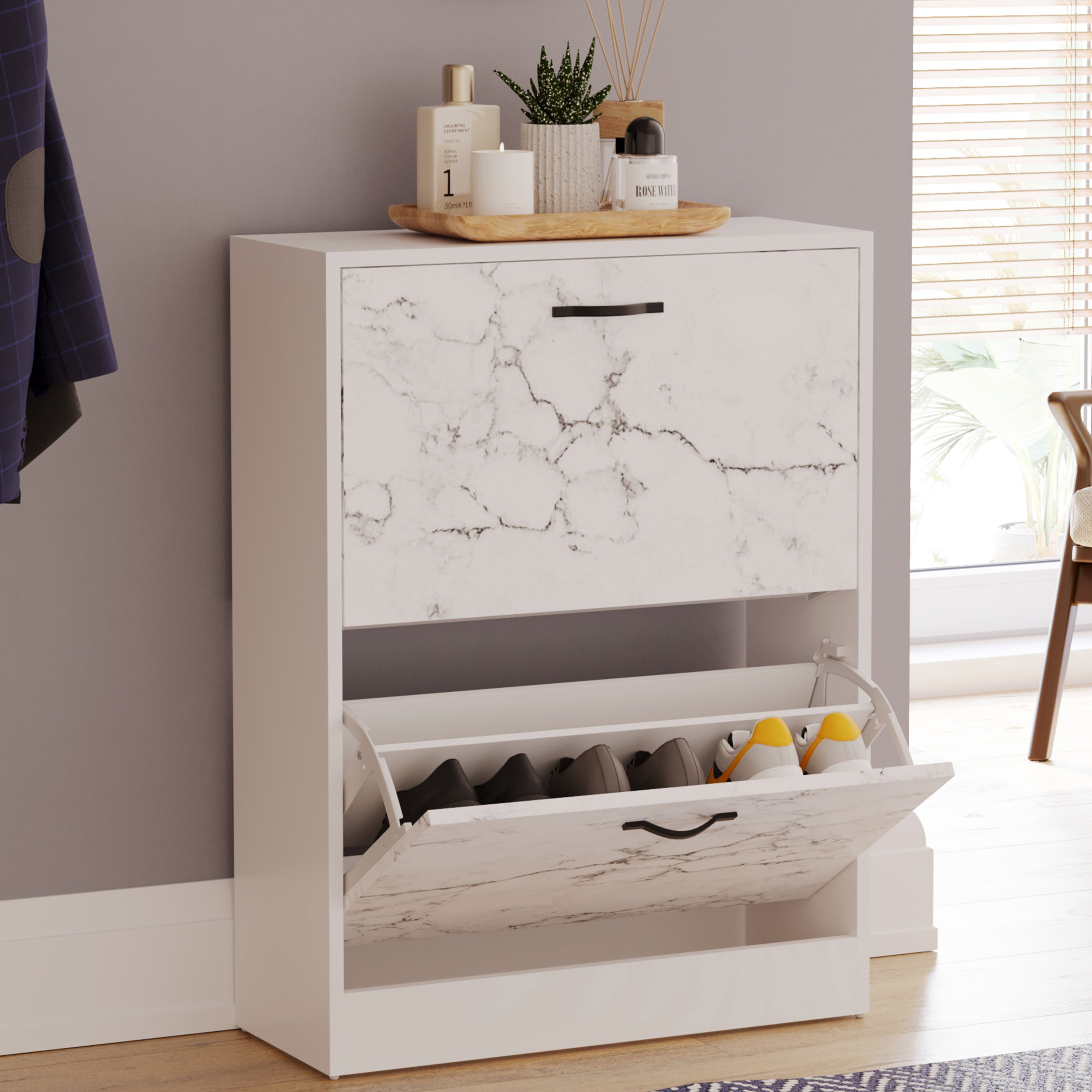 2 Drawer Shoe Cabinet, White Marble