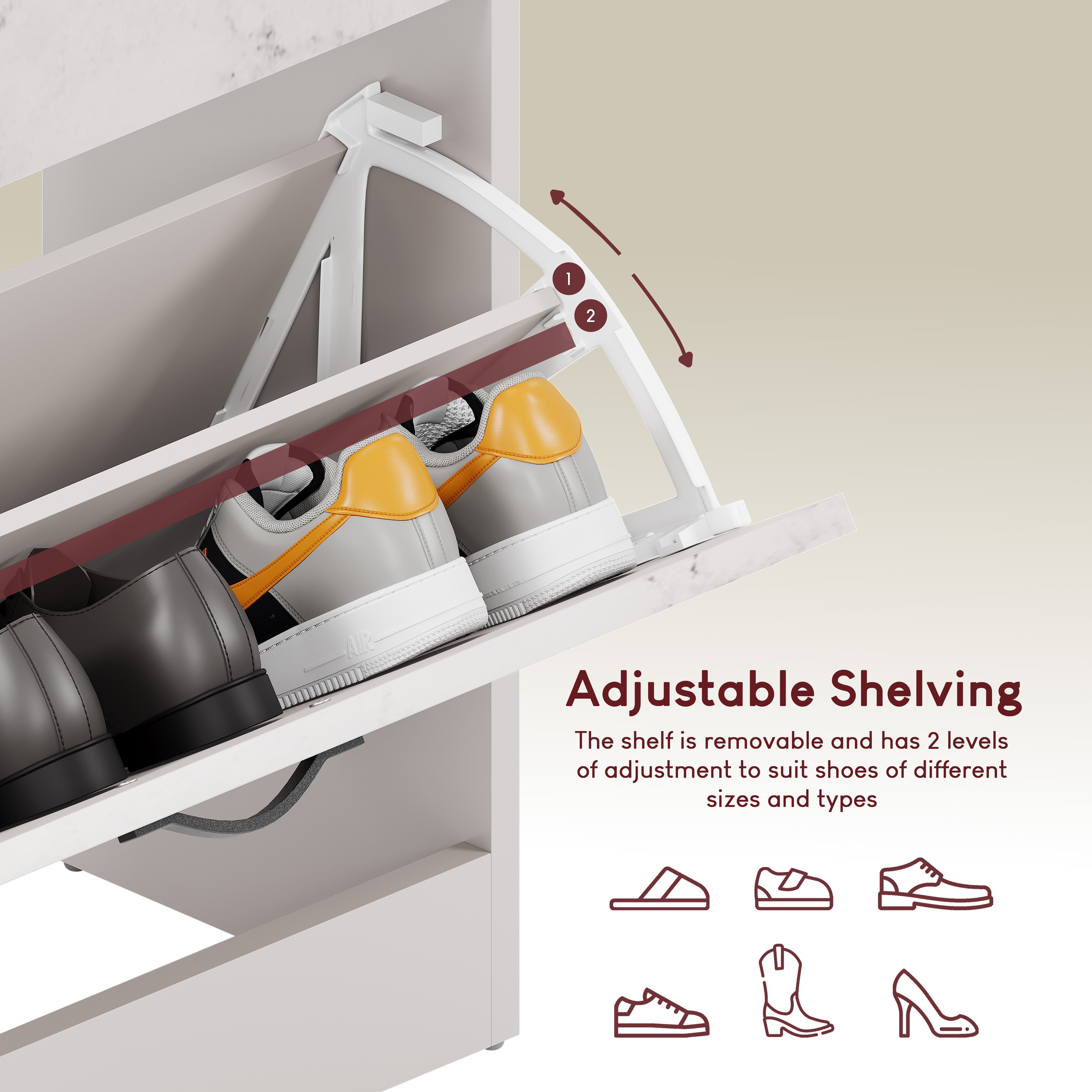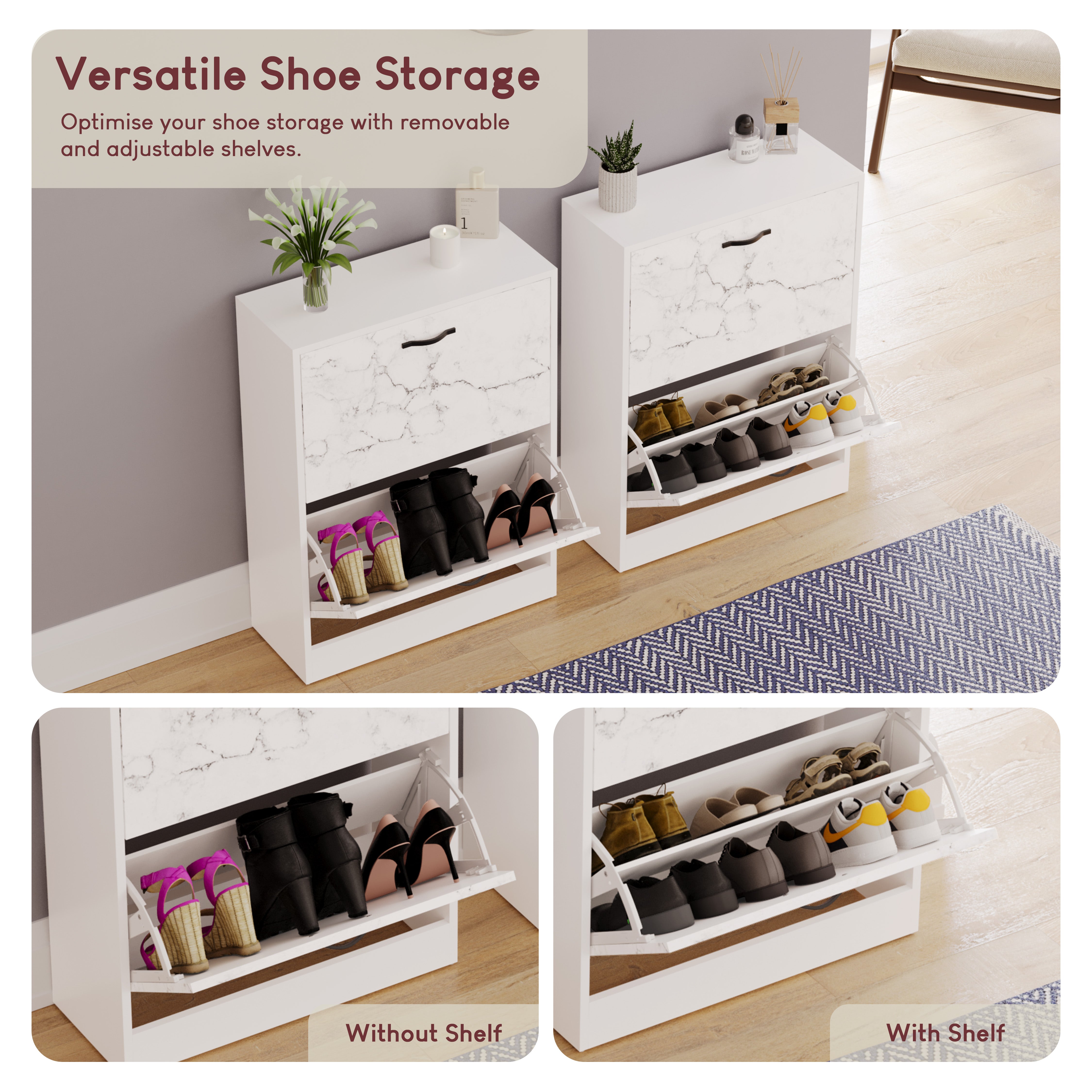 - Spacious Drawers: Each drawer can accommodate up to 3 or 4 pairs of shoes, ensuring your footwear is neatly organized and easily accessible.