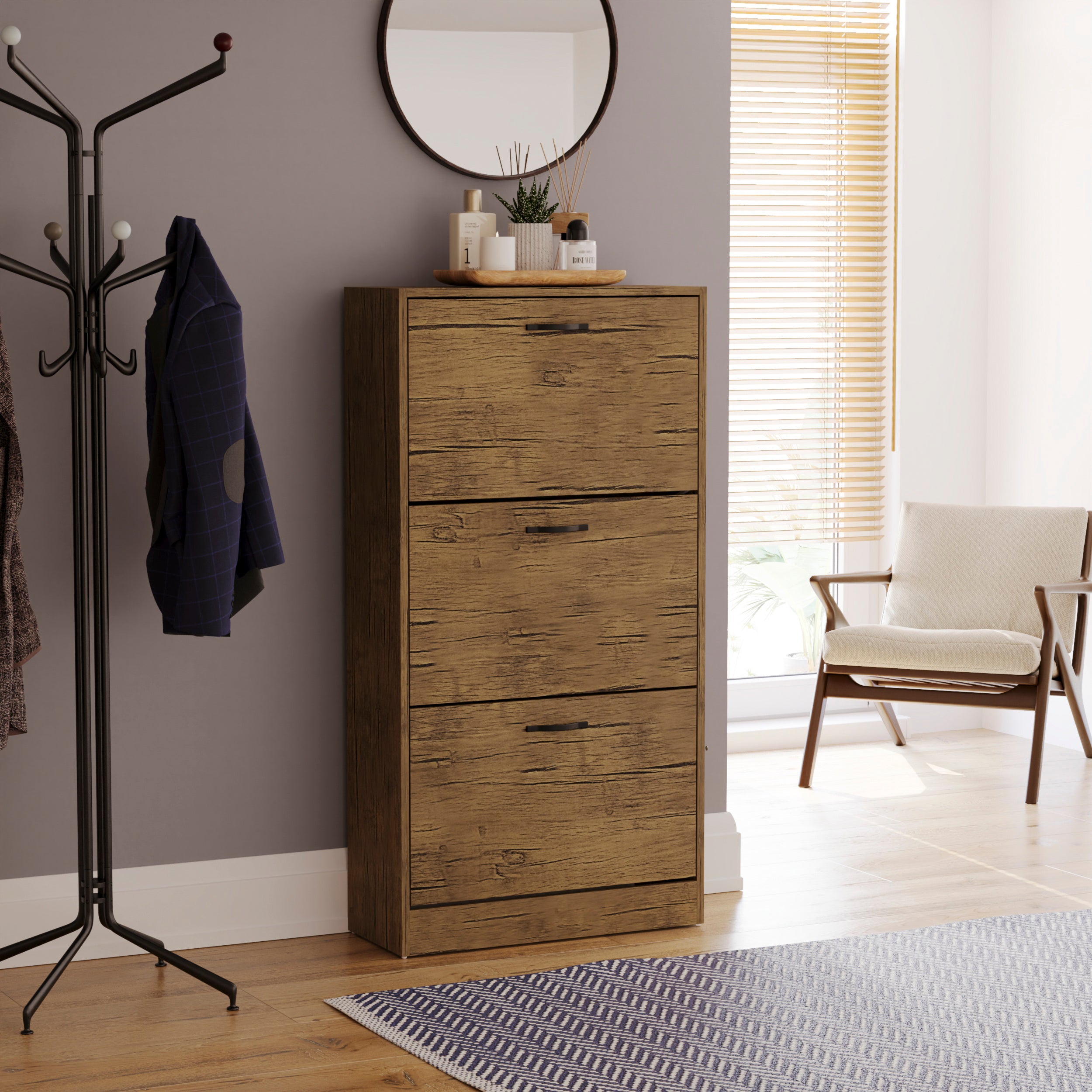 Introducing our sleek and modern 3-Drawer Shoe Cabinet, the perfect solution for stylish and organized shoe storage. Designed with contemporary aesthetics in mind, this cabinet features clean lines and a minimalist design that effortlessly complements any home decor.