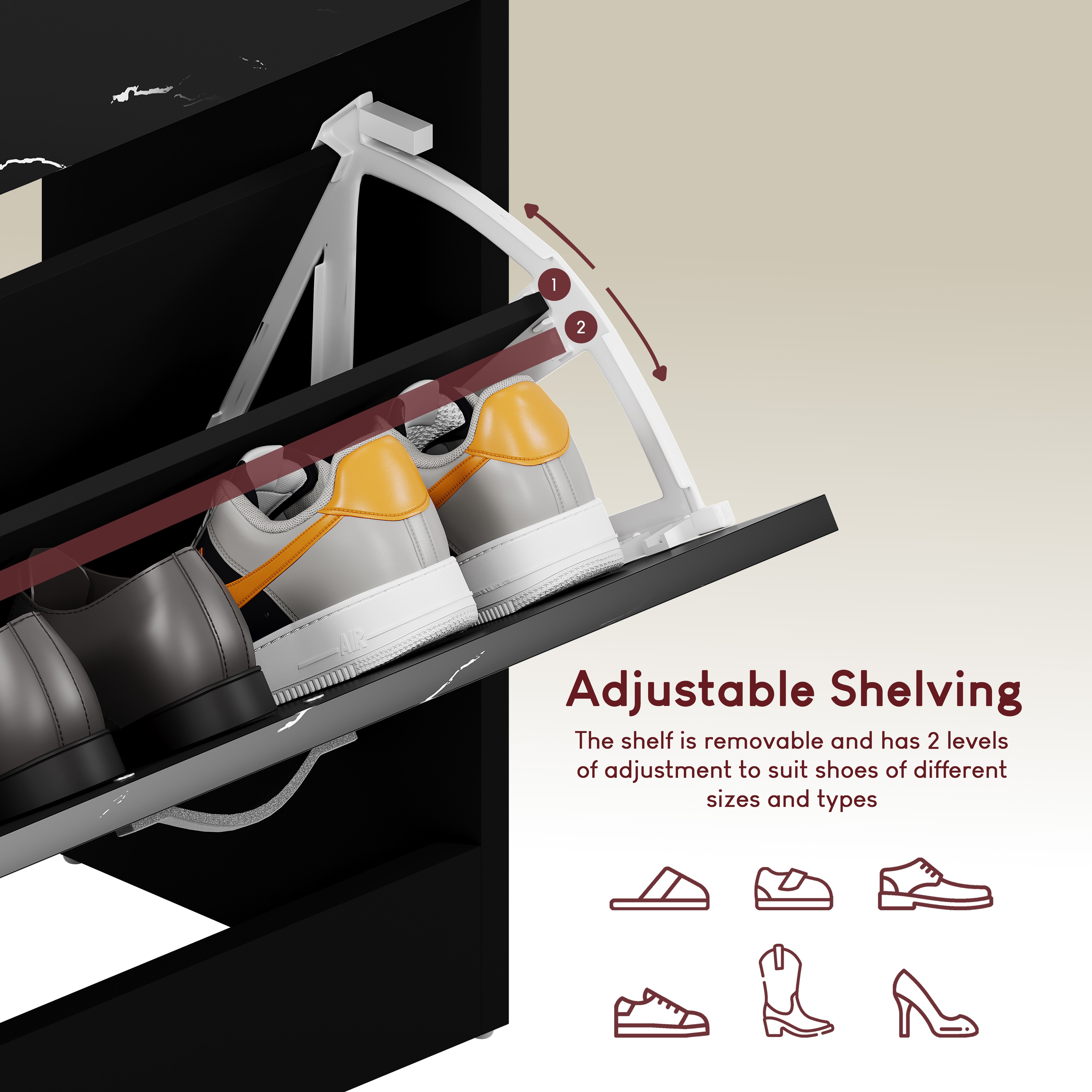 - Spacious Drawers: Each drawer can accommodate up to 3 or 4 pairs of shoes, ensuring your footwear is neatly organized and easily accessible.