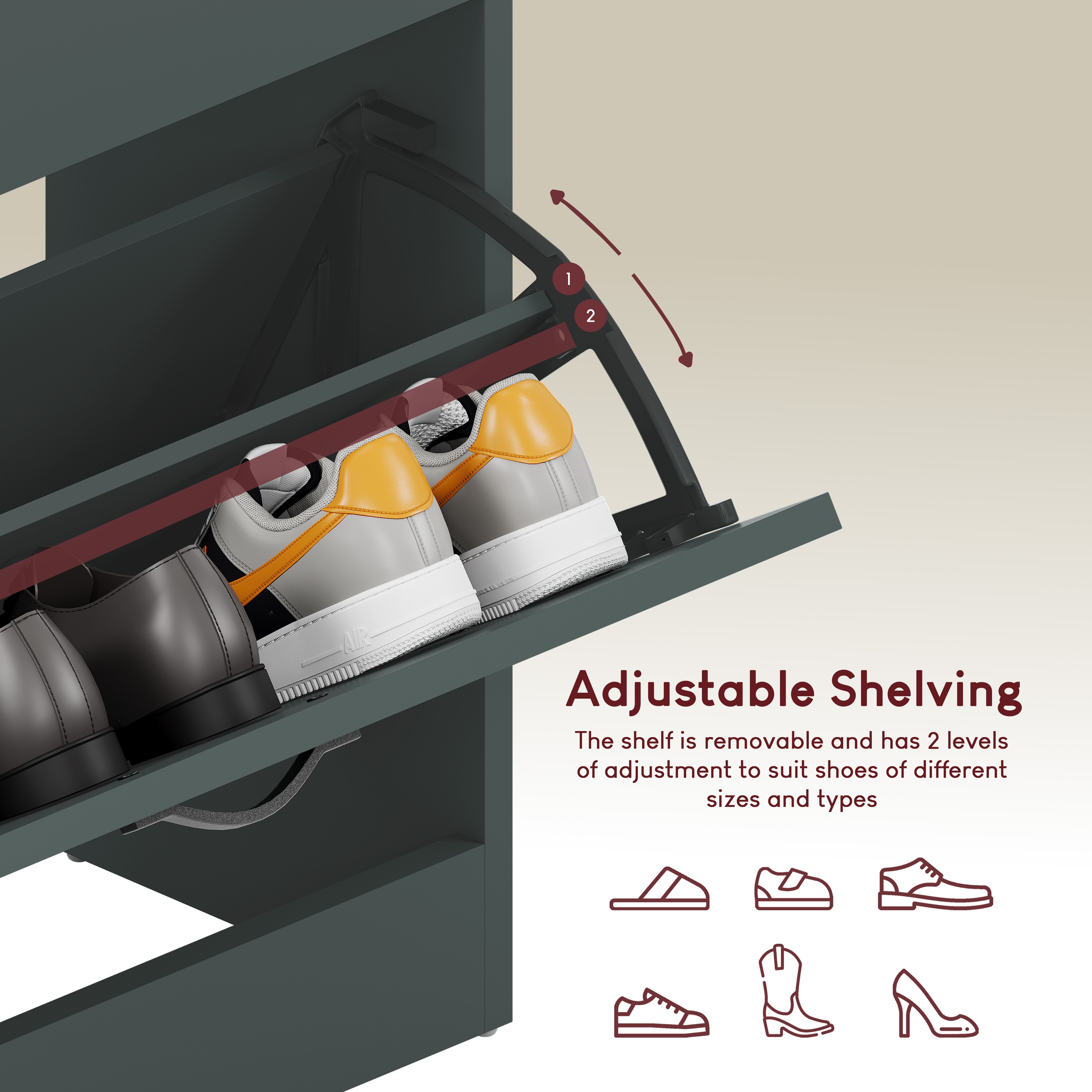 - Spacious Drawers: Each drawer can accommodate up to 3 or 4 pairs of shoes, ensuring your footwear is neatly organized and easily accessible.