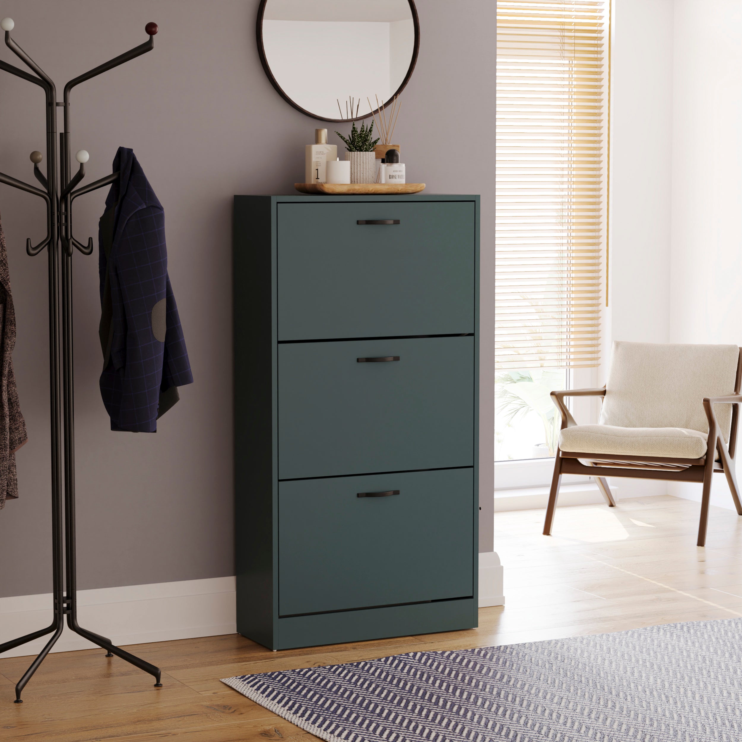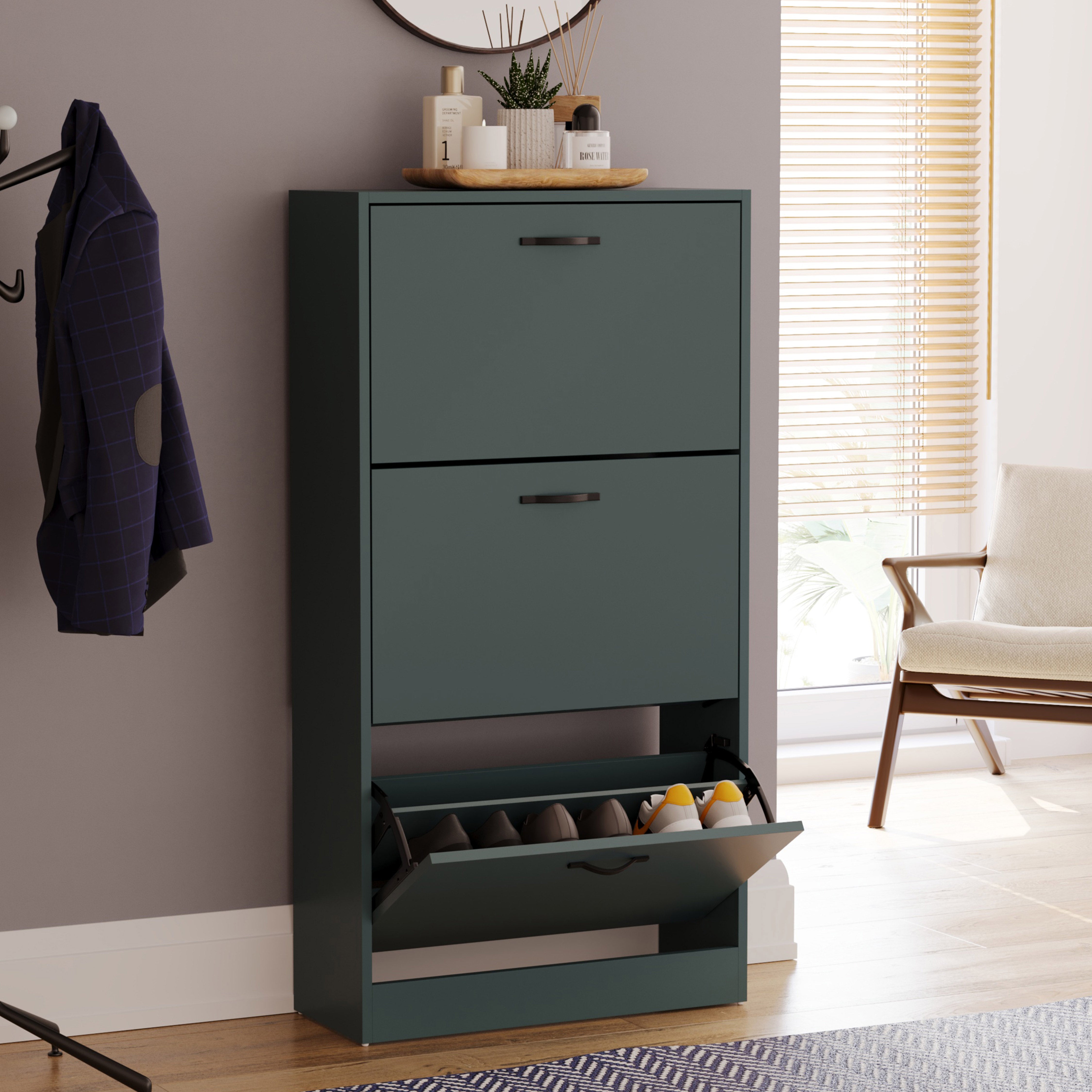 3 Drawer Shoe Cabinet, Jasper Green