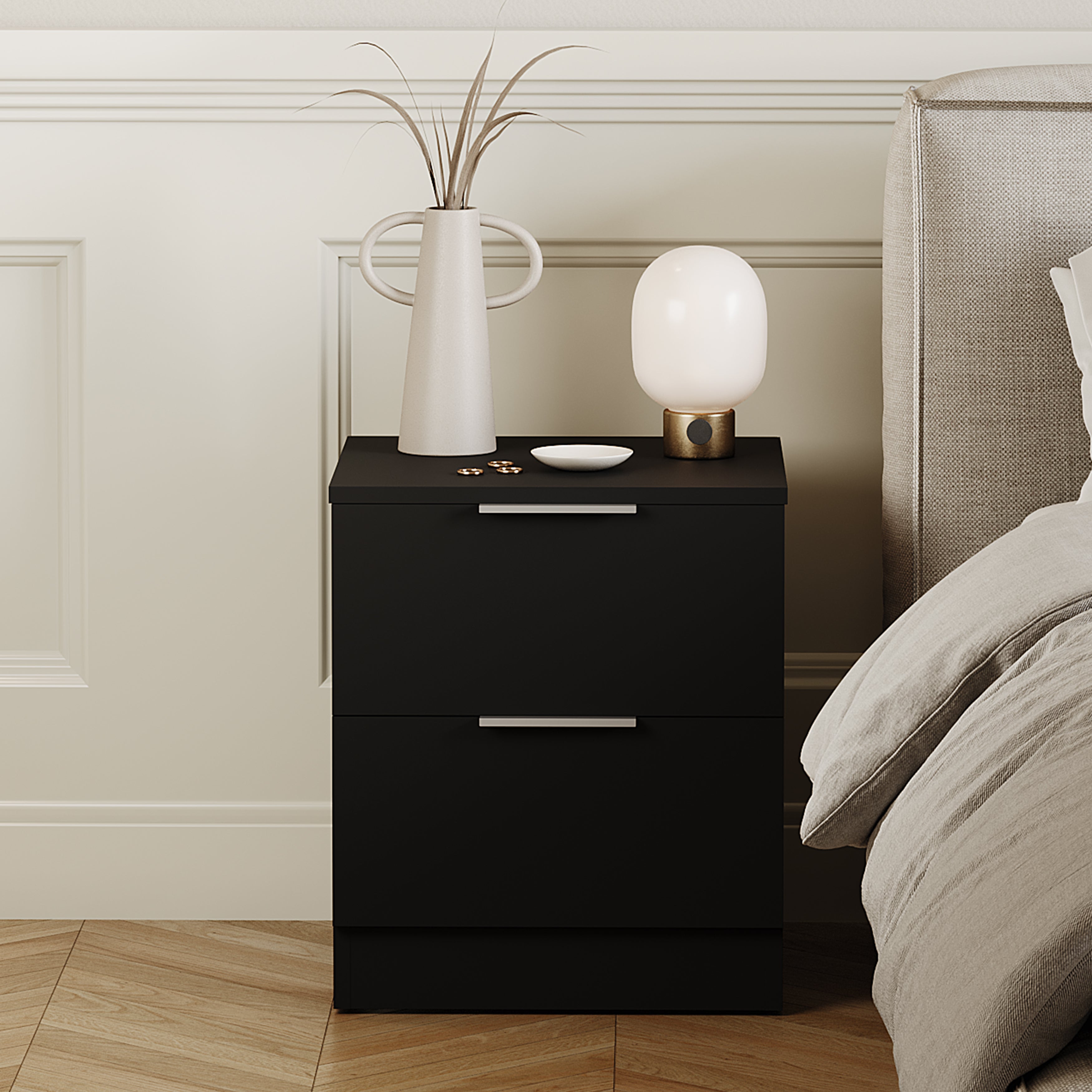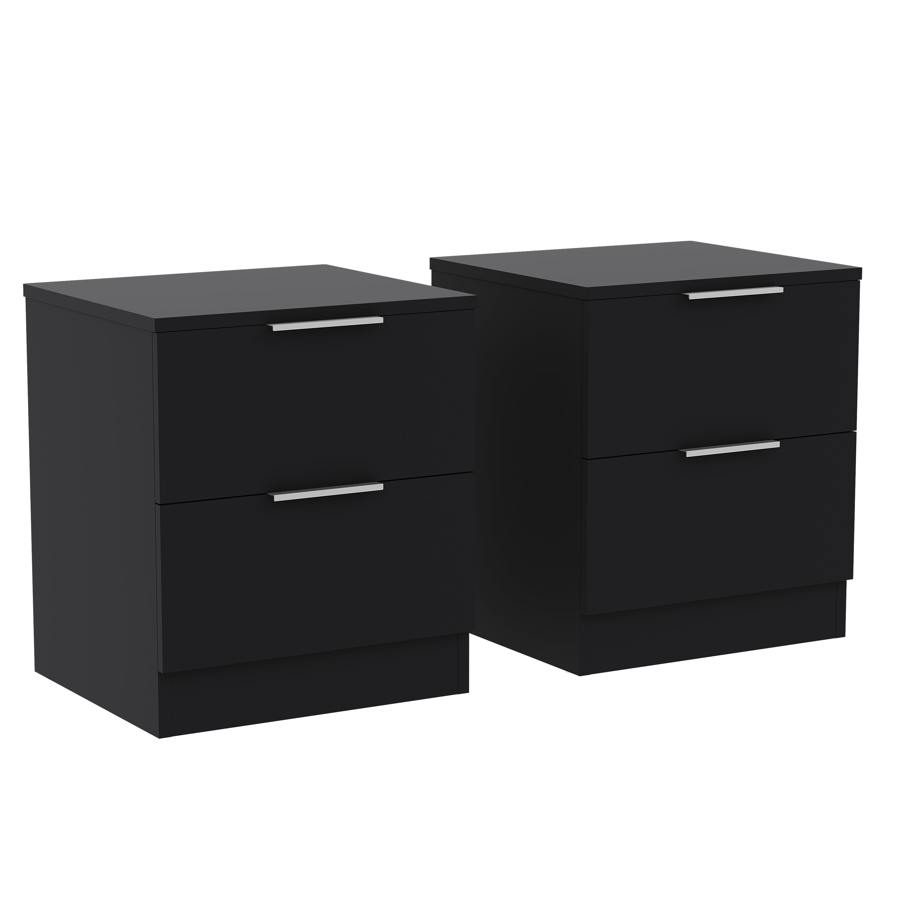 Trega 2 Drawer Bedside Chest, Black - Set of 2