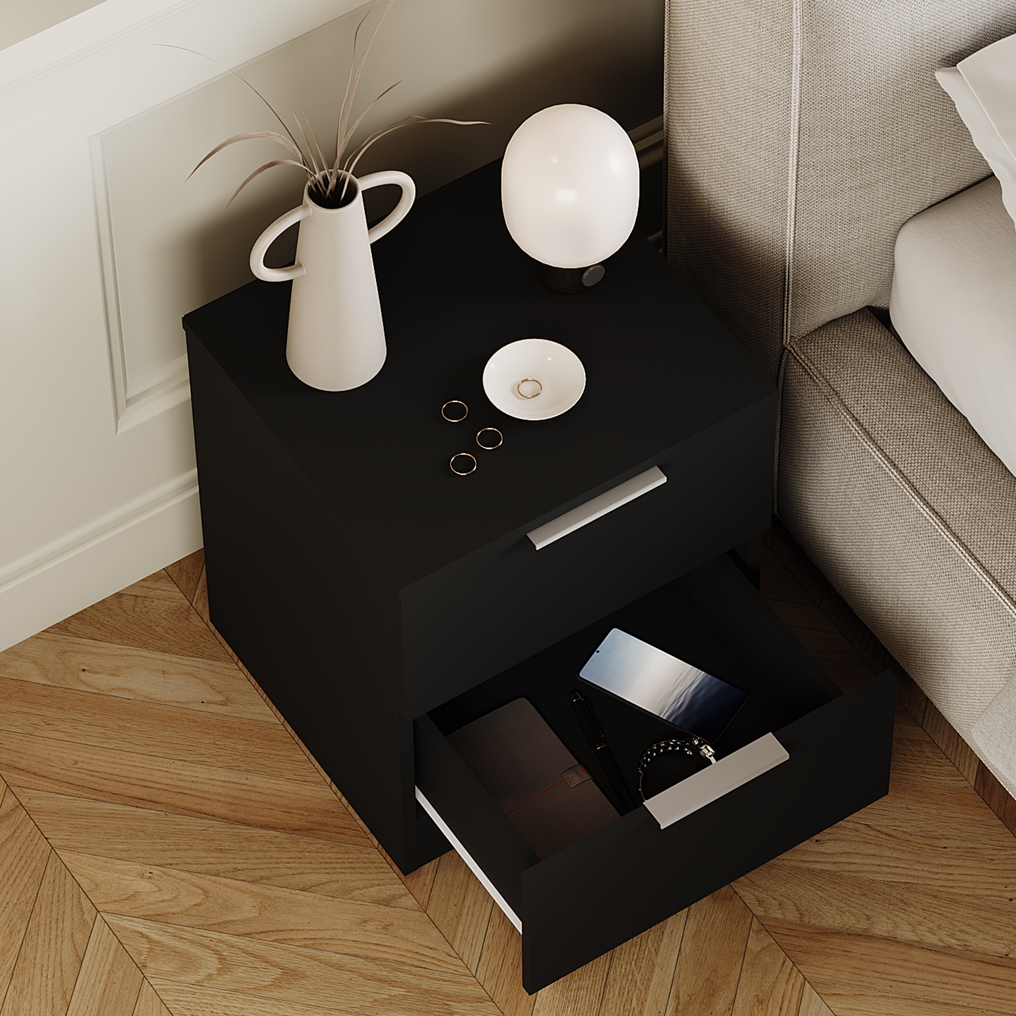 - Smooth-Glide Drawer – Single drawer with metal runners for easy access to bedside essentials.