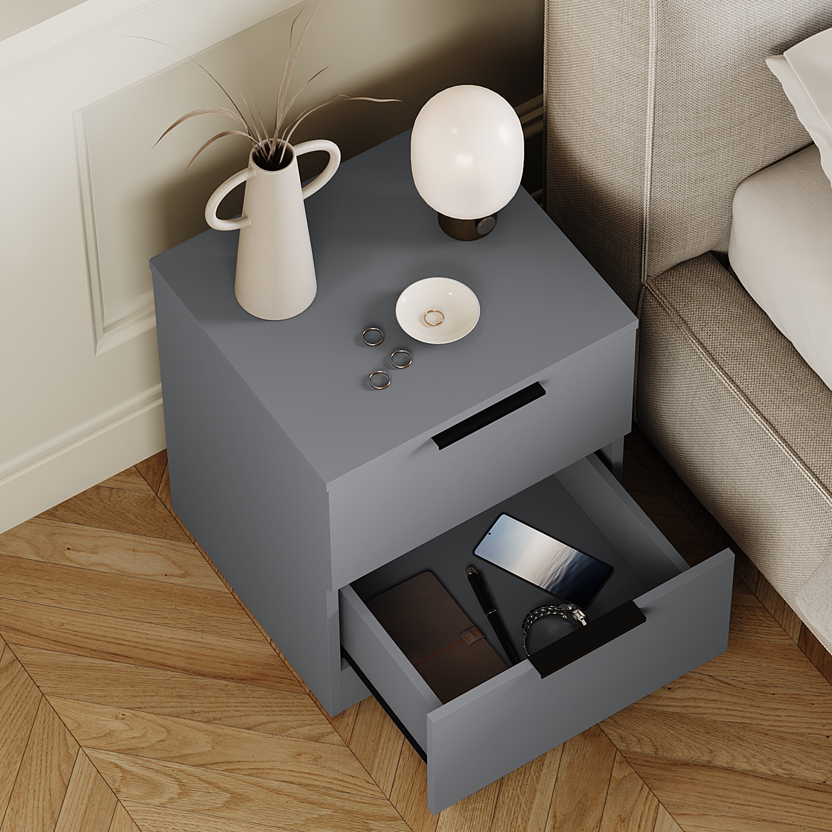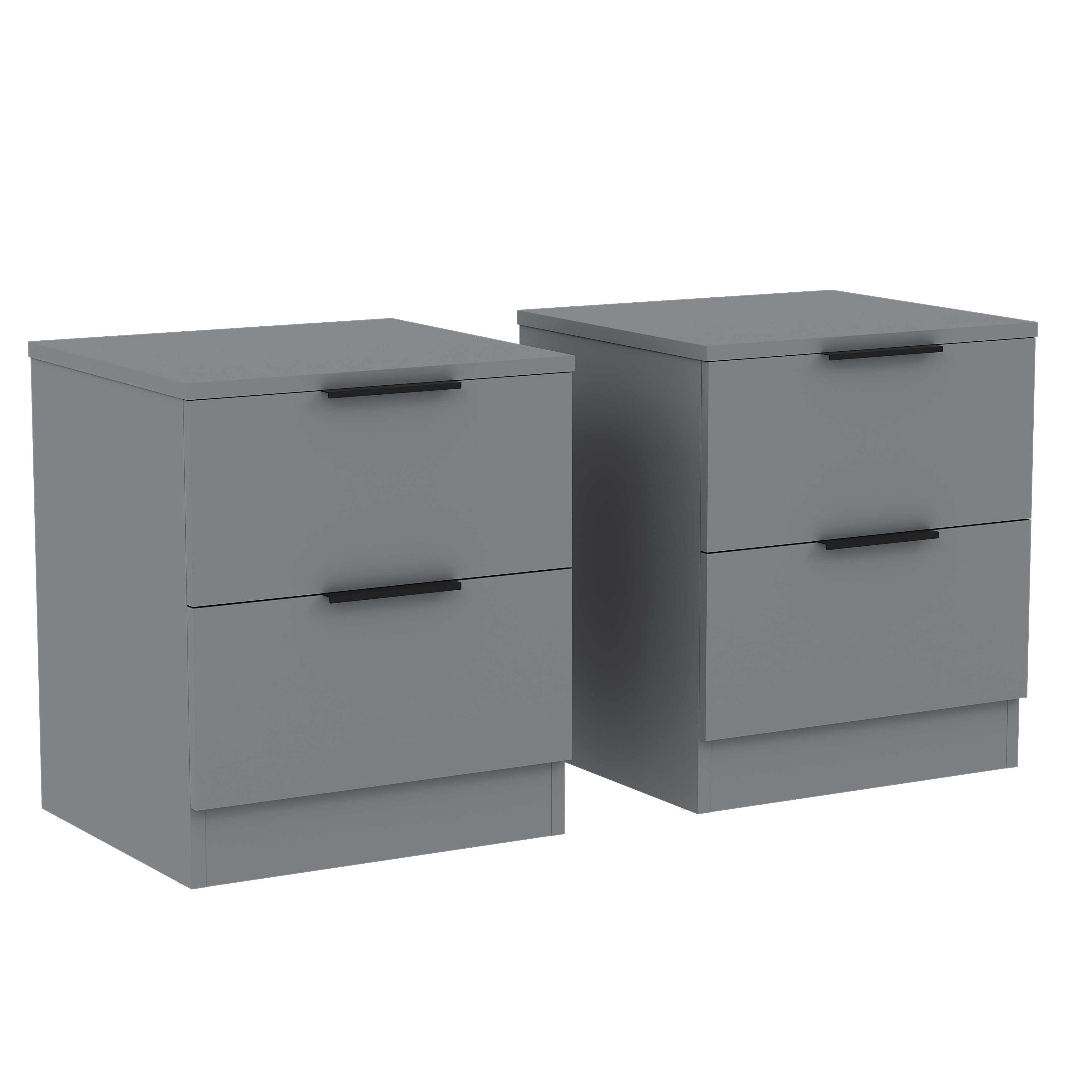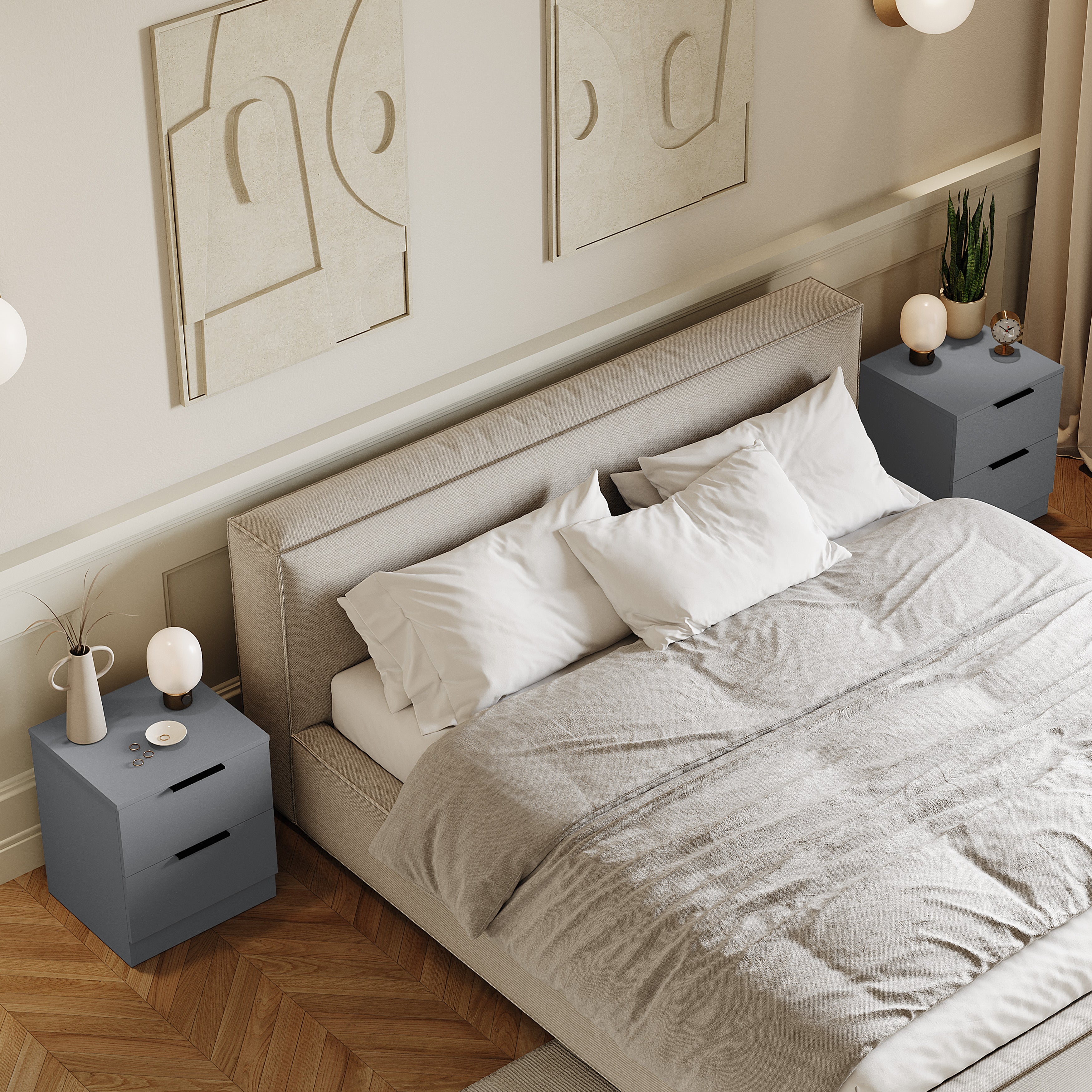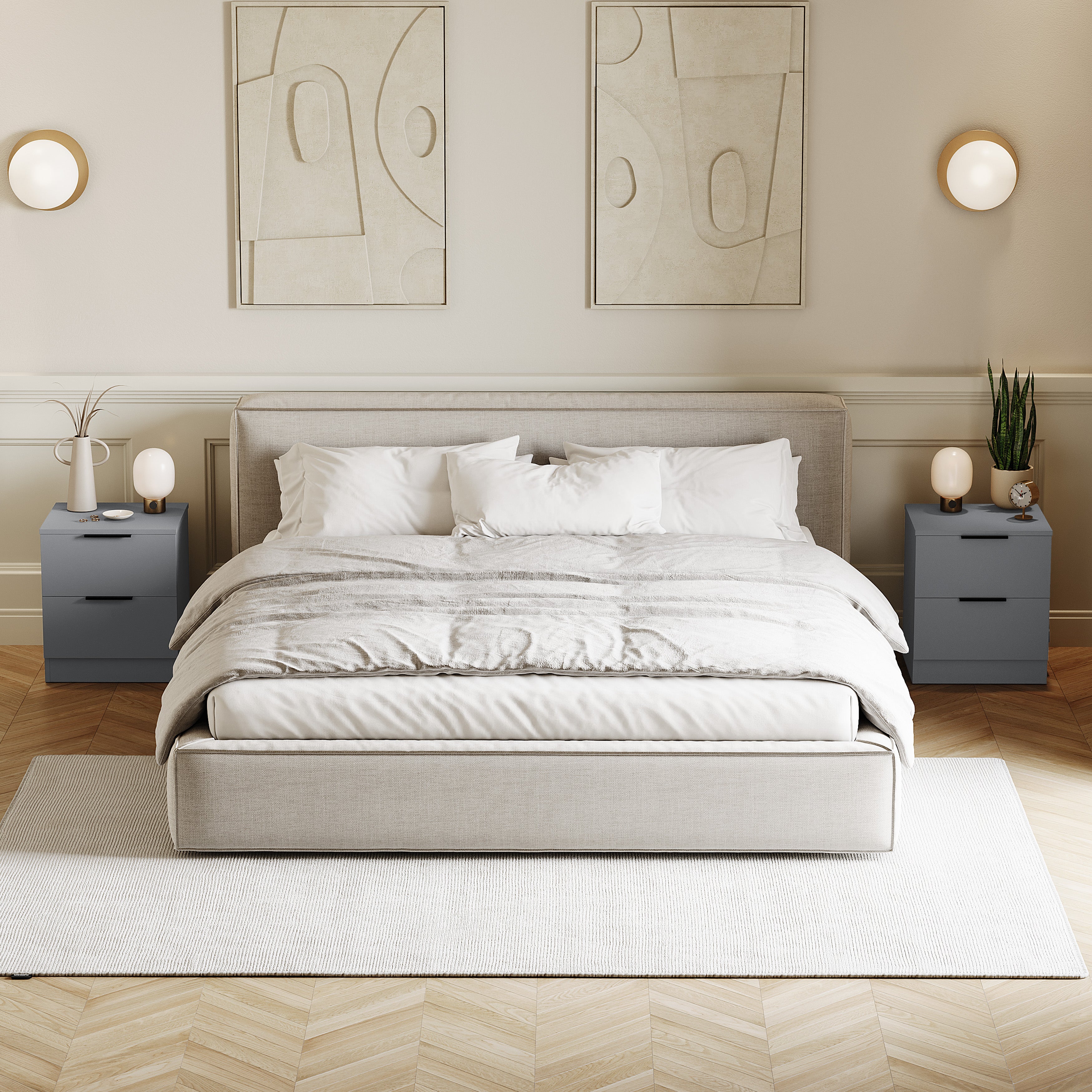 Each bedside cabinet features two smooth-glide drawers fitted with metal runners, offering easy access to essentials such as books, electronics, or personal items. Sleek handle detailing enhances the modern design, while the flat tops provide convenient space for lamps, alarm clocks, or nighttime accessories.