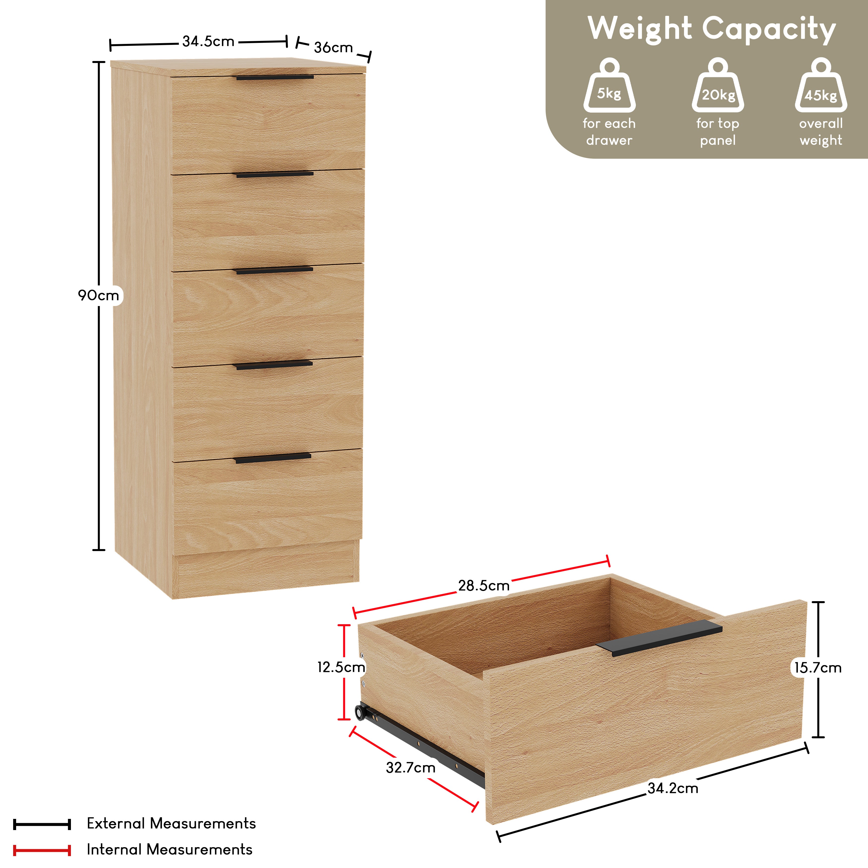 - Space-Saving Storage – Five deep drawers provide practical storage while maintaining a compact footprint.