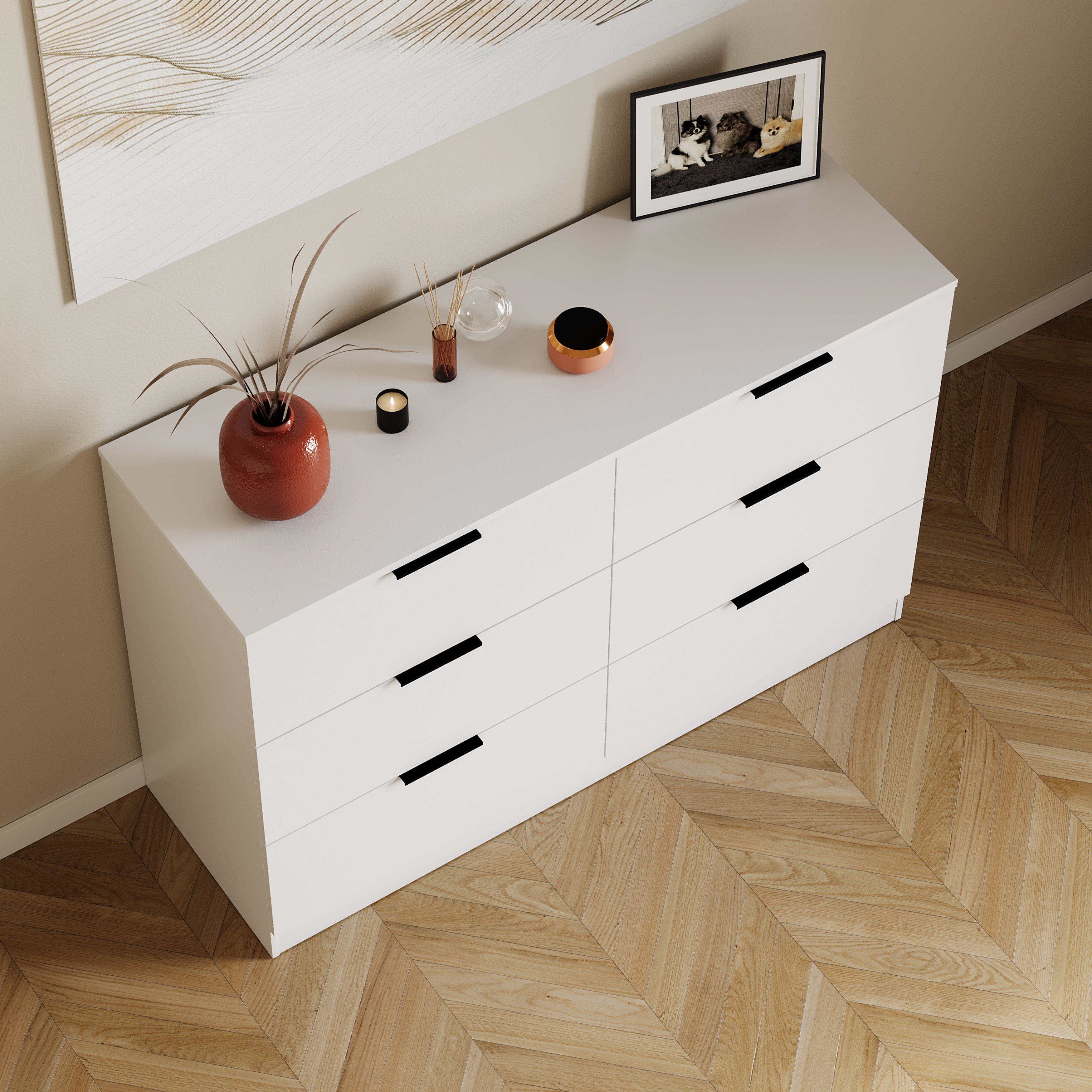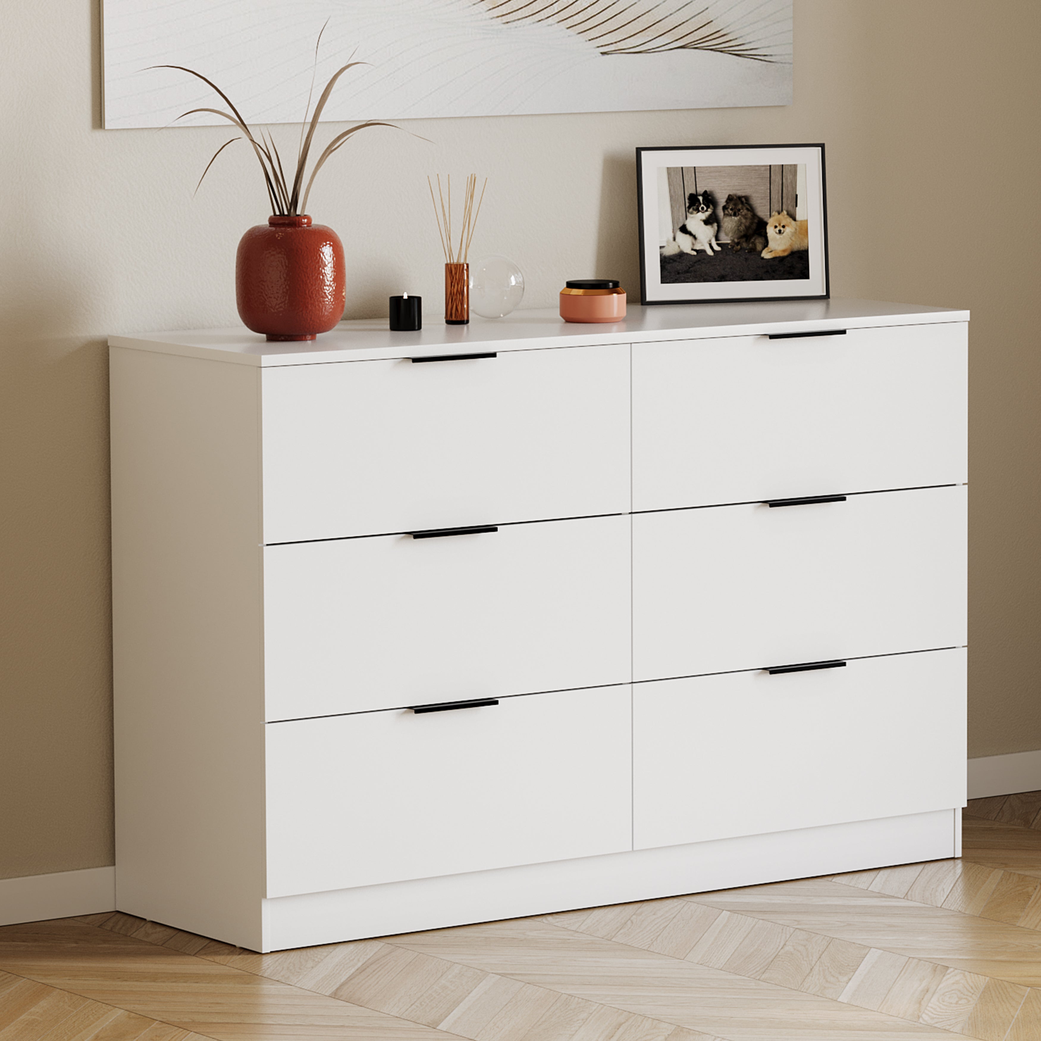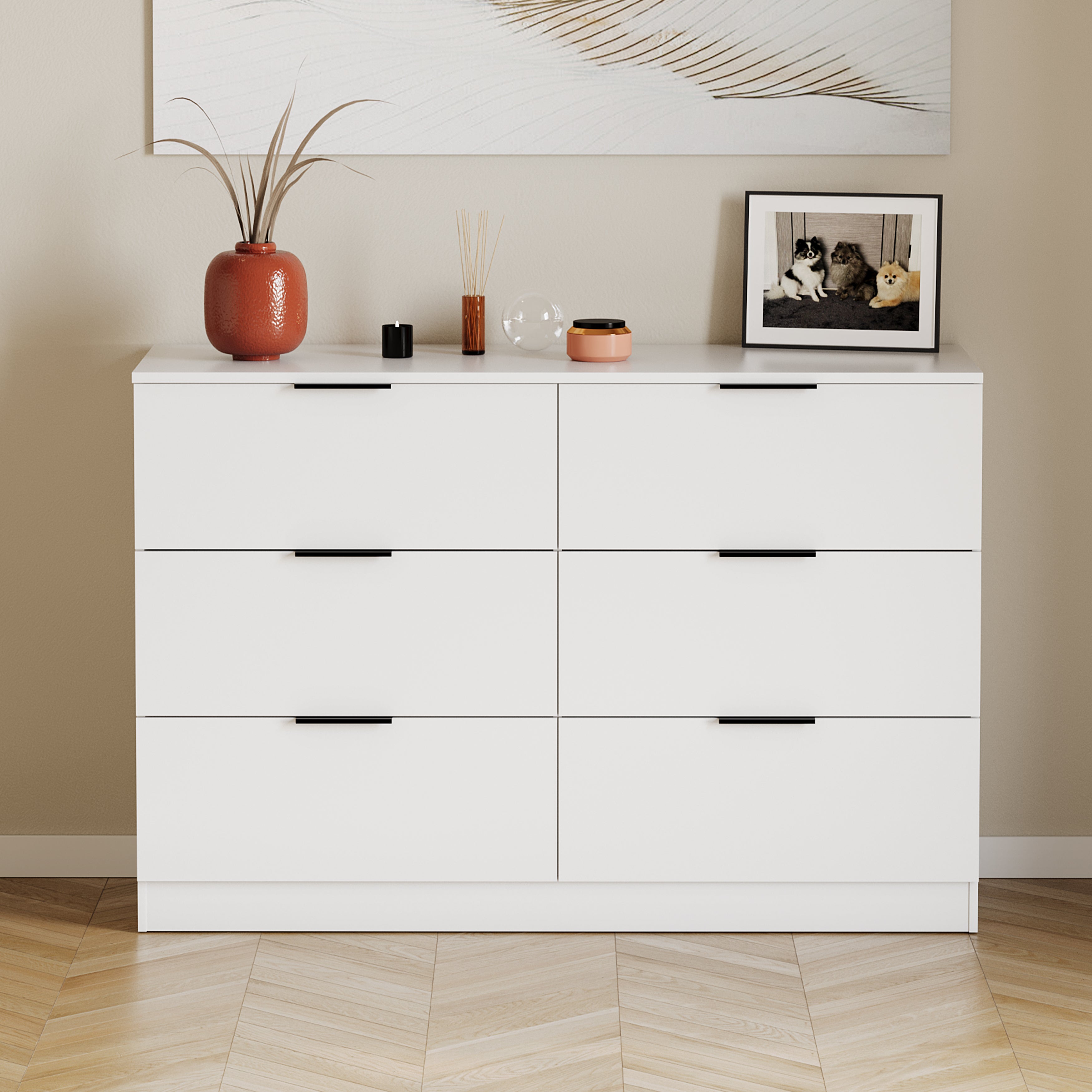 Trega 6 Drawer Chest, White